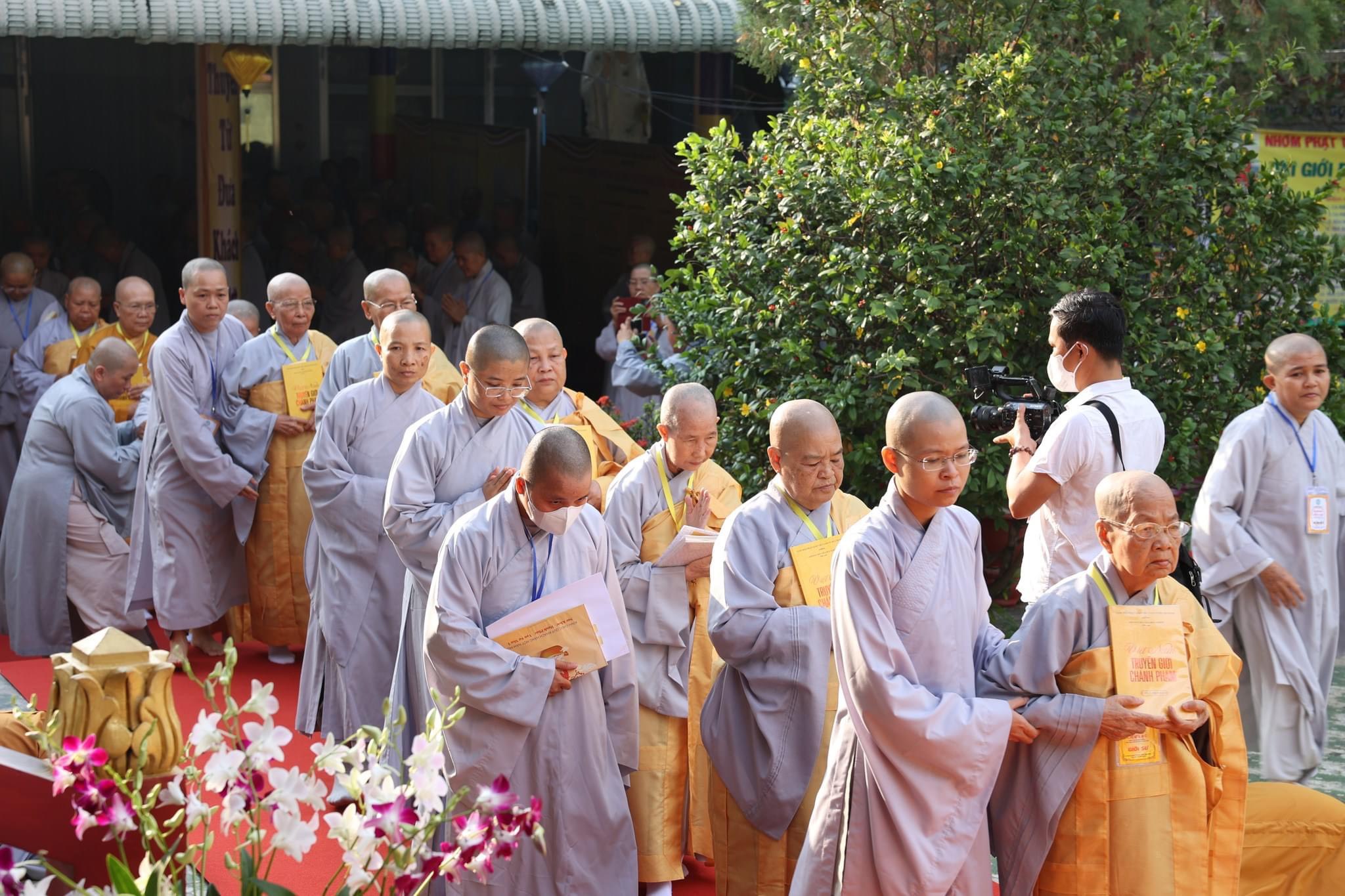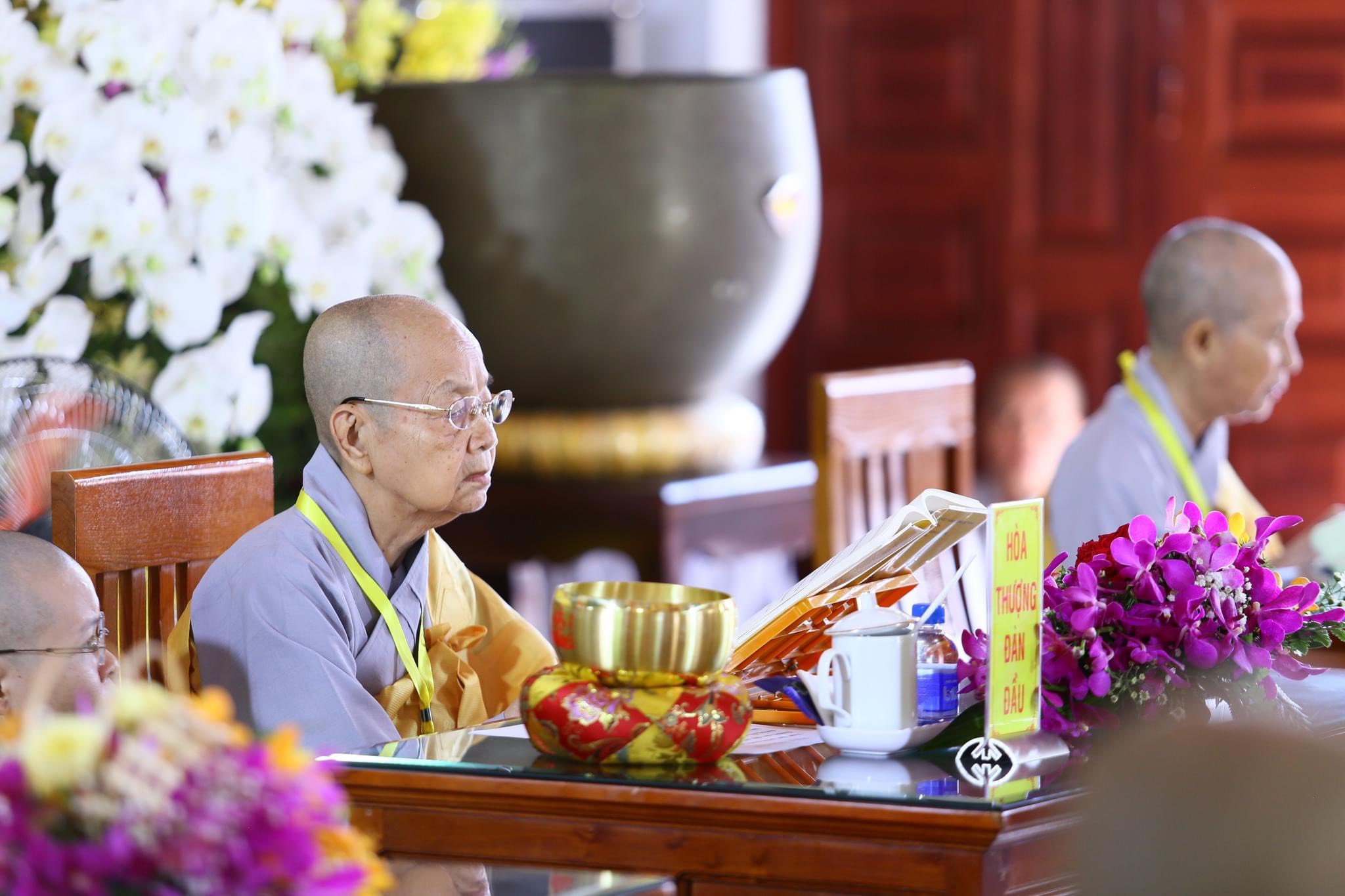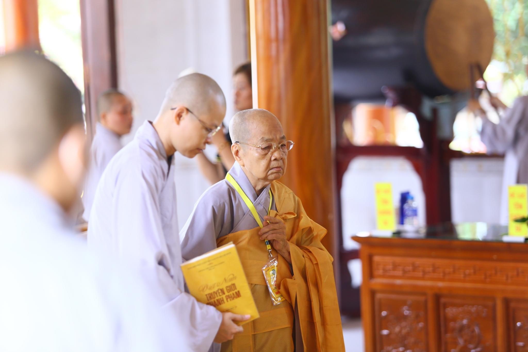 Ni trưởng Thích nữ Từ Nhẫn (Chùa Phước Viên, Tp.HCM) đương vi Hòa thượng đàn đầu.
