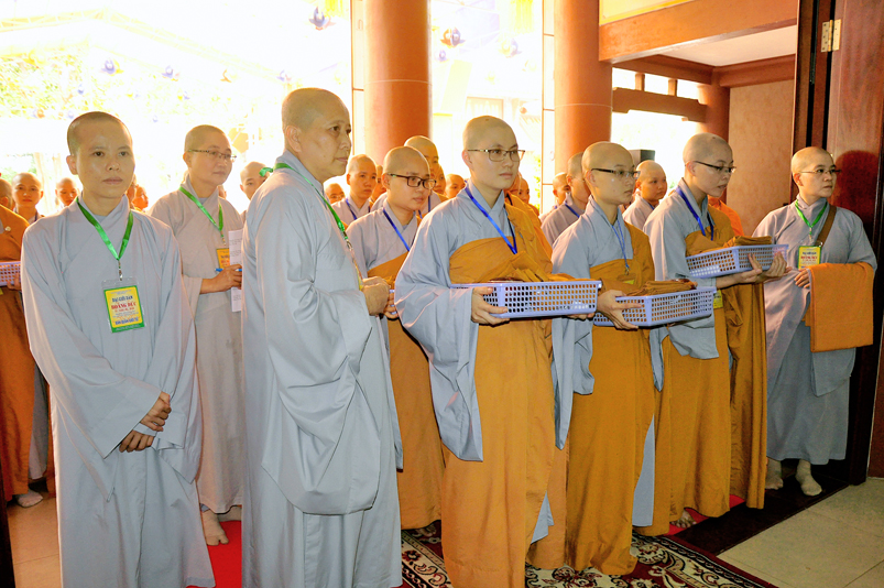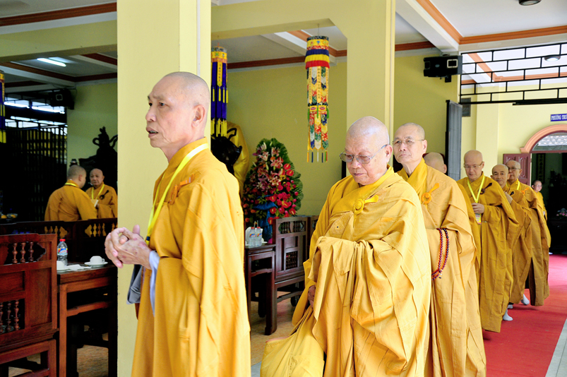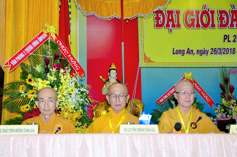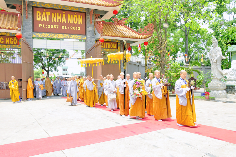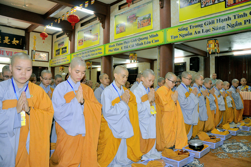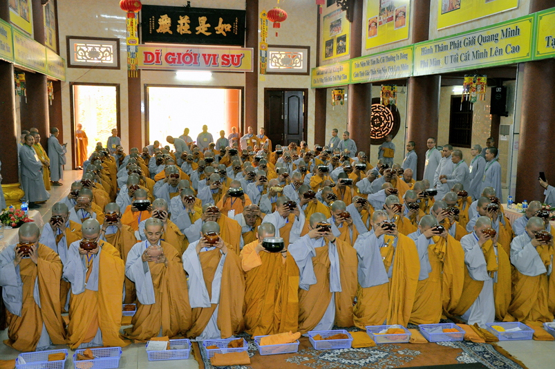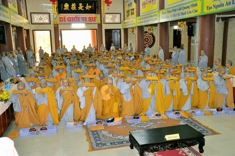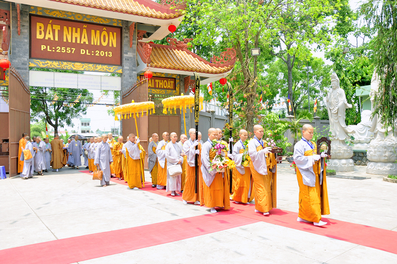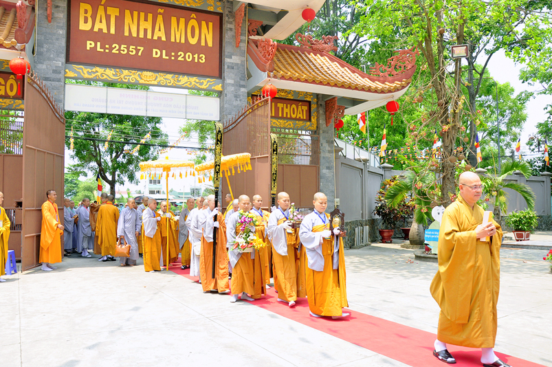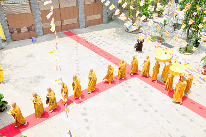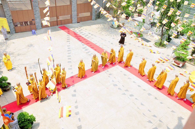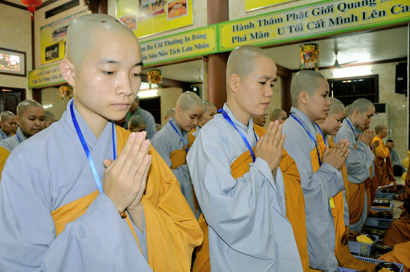 Sau lời tác bạch xin được vào giới trường Tăng của Ni trưởng Thích nữ Tuệ Đăng, Đại đức Lệ Ngôn – Trưởng ban Hoằng pháp BTS GHPGVN tỉnh Long An và ban dẫn thỉnh hướng dẫn chư Ni vào đảnh lễ Tam bảo, bái Đại Tăng cầu thỉnh trao truyền Chánh pháp, Giới luật cho giới tử Ni theo nghi thức Luật tạng chế định.