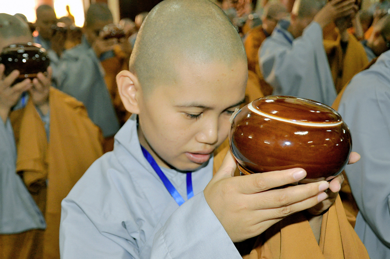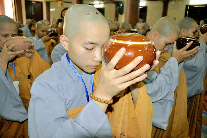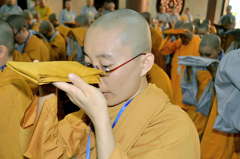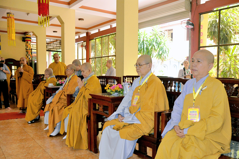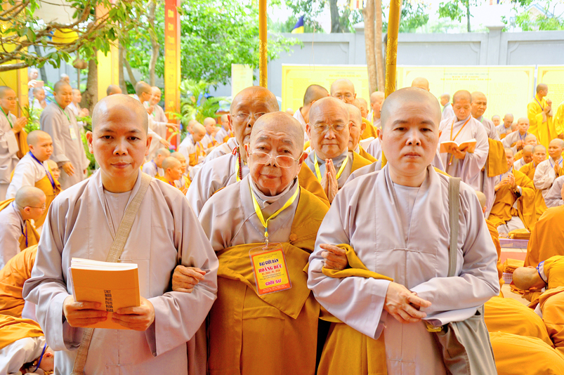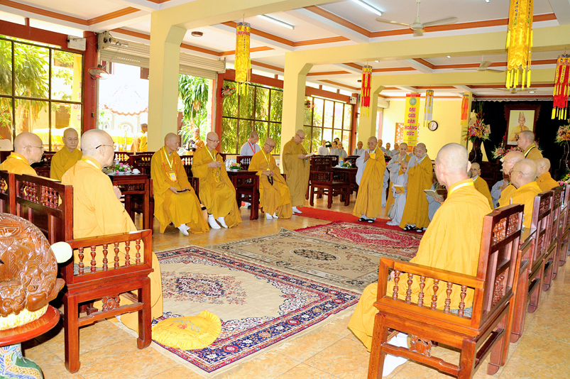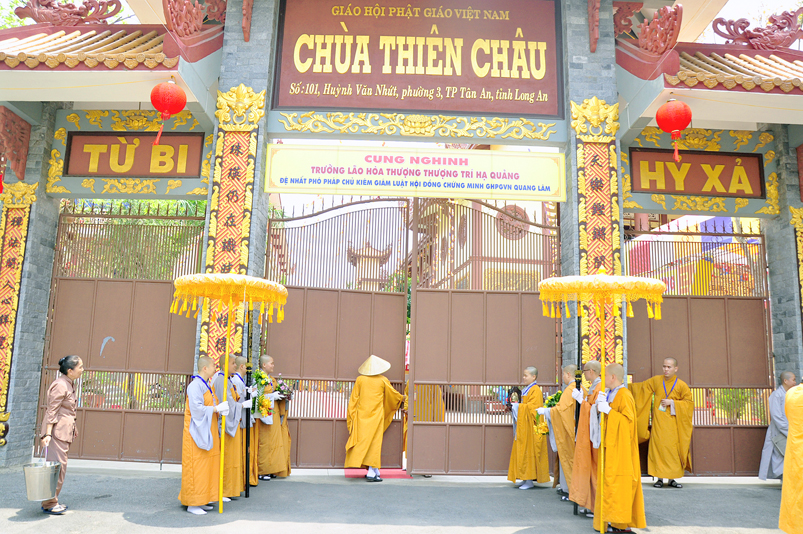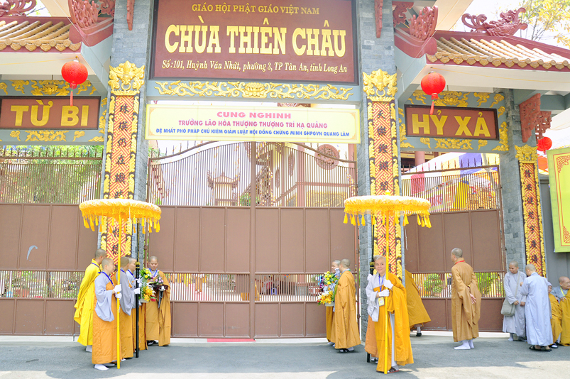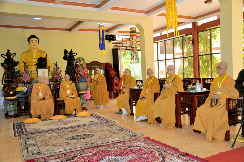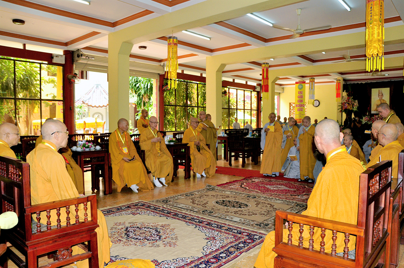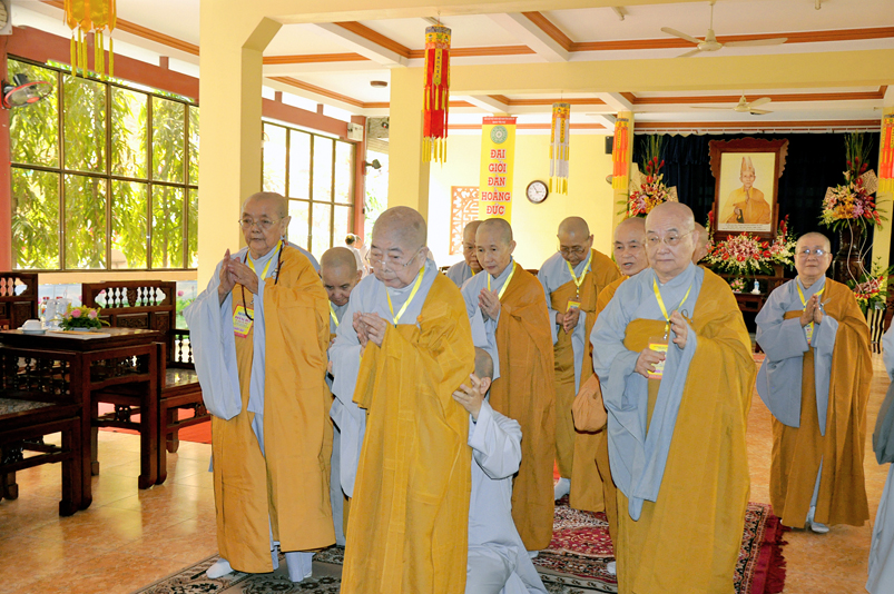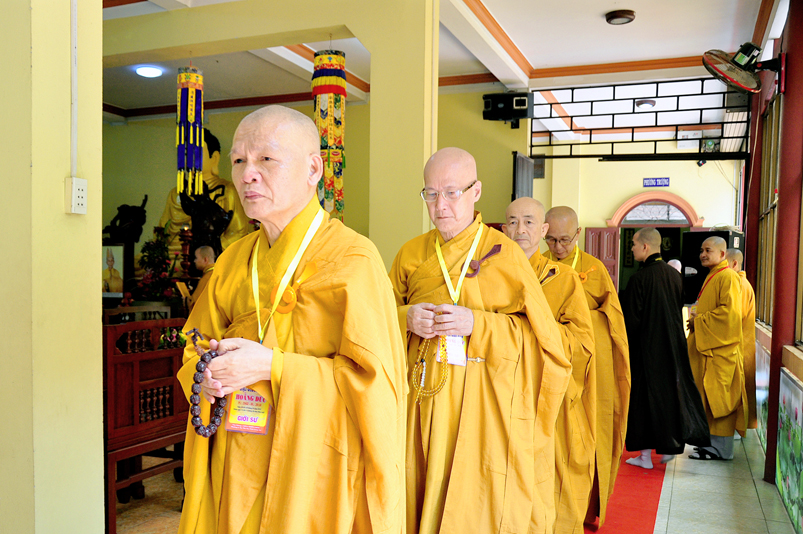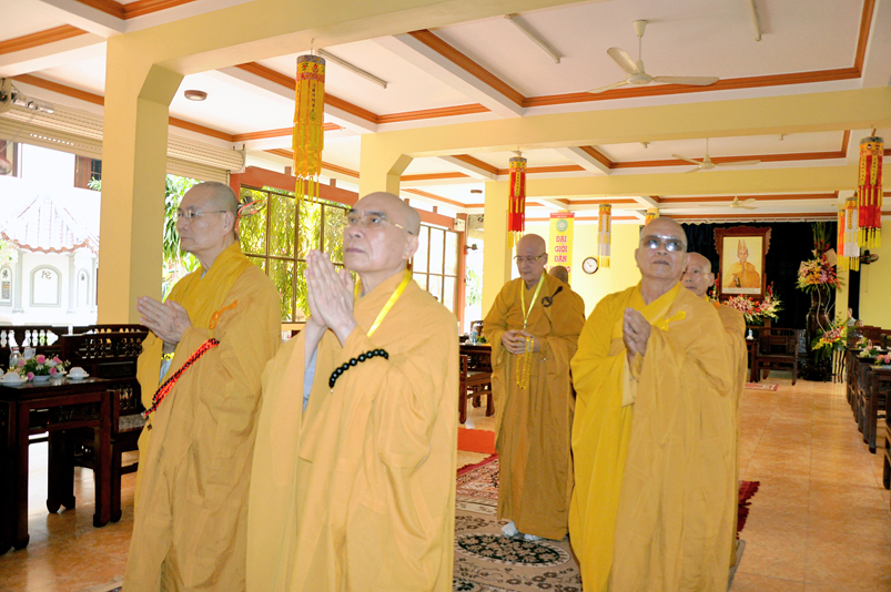 Sau lời tác bạch xin được vào giới trường Tăng của Ni trưởng Thích nữ Tuệ Đăng, Đại đức Lệ Ngôn – Trưởng ban Hoằng pháp BTS GHPGVN tỉnh Long An và ban dẫn thỉnh hướng dẫn chư Ni vào đảnh lễ Tam bảo, bái Đại Tăng cầu thỉnh trao truyền Chánh pháp, Giới luật cho giới tử Ni theo nghi thức Luật tạng chế định.