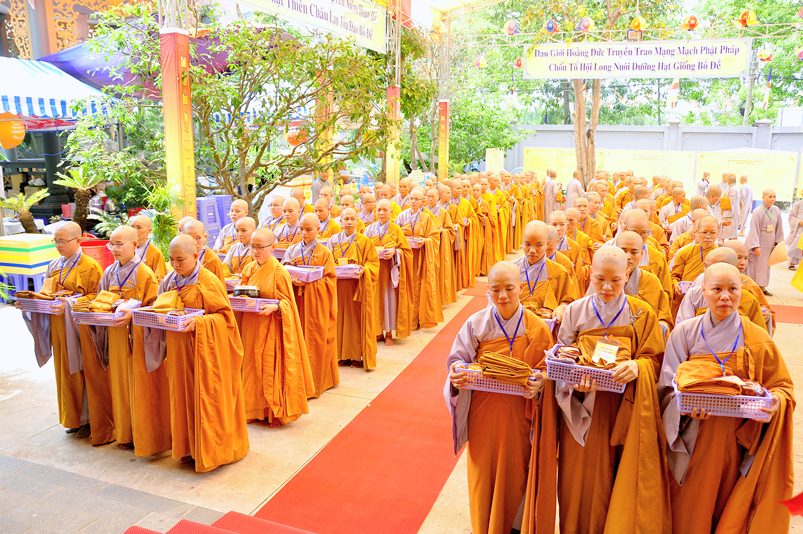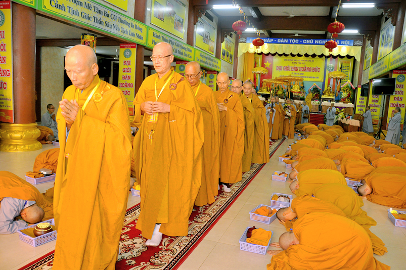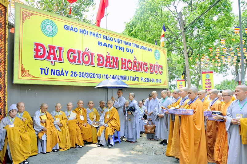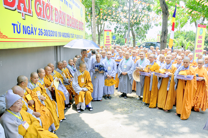 Theo chương trình Đại Giới Đàn Hoằng Đức 12g00 ngày 29/03/2018, Thập sư Ni và 135 giới tử Ni từ tịnh xứ Giới trường Ni ( chùa Thiên Phước, trường Trung cấp Phật học Long An) đến tịnh xứ Giới trường Tăng cầu pháp thọ giới.