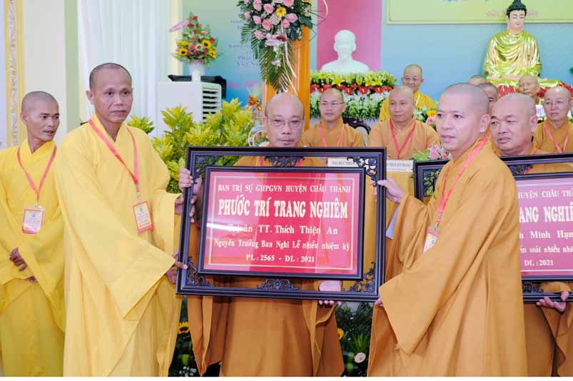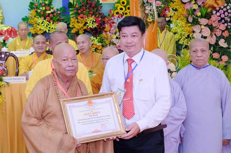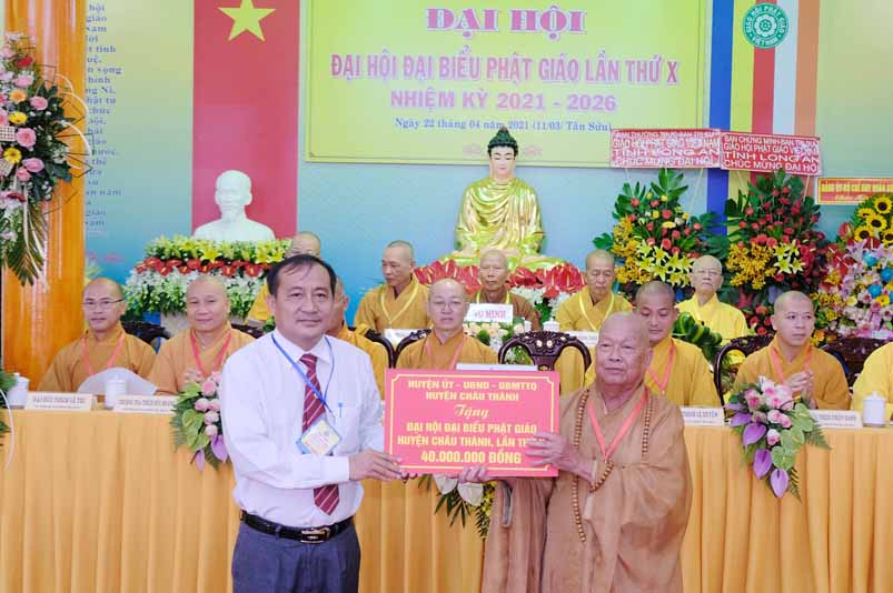 Thay mặt HĐND, UBND, UBMTTQ Việt nam huyện Châu thành xin biểu dương và trân trong ghi nhận những đóng góp quý báu của Chư tôn đức Phật tử trong thời gian qua.