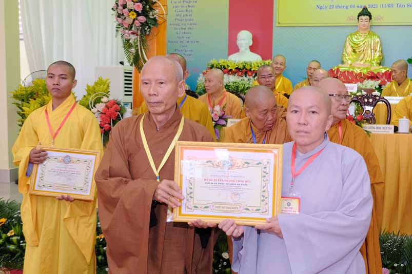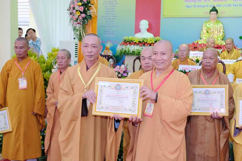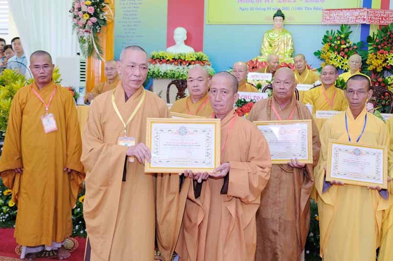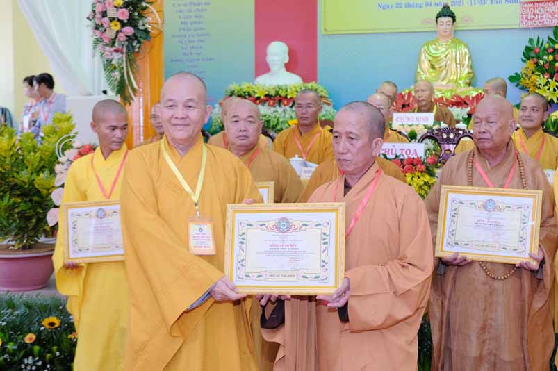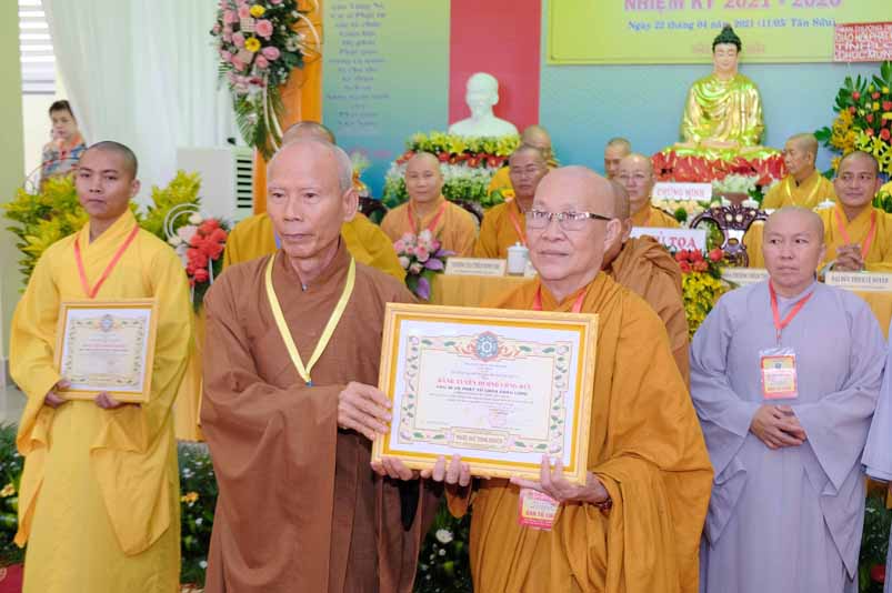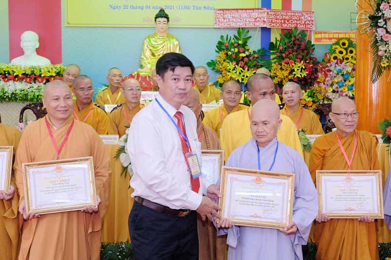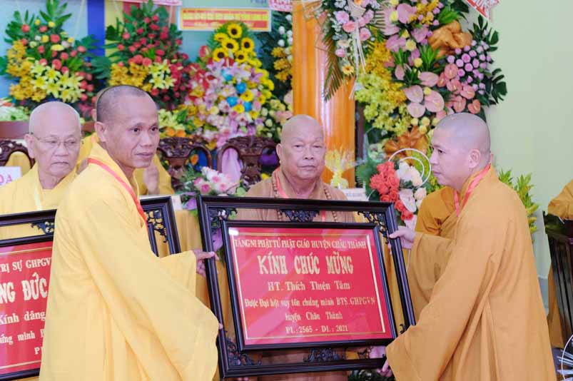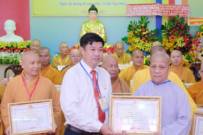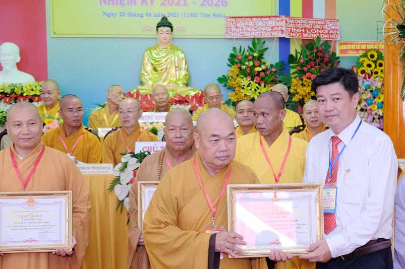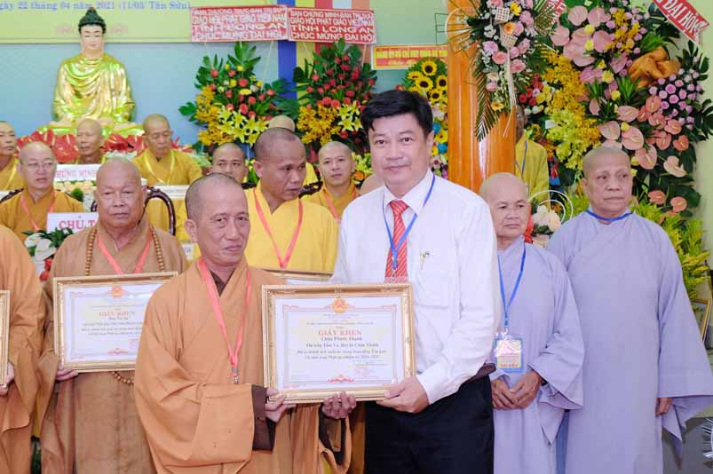 Dịp này, Thường trực BTS Phật giáo tỉnh và UBND tỉnh Long An đã trao tặng bằng tuyên dương công đức bằng khen cho tập thể, cá nhân hoàn thành xuất sắc nhiệm vụ công tác Phật sự trong nhiệm kỳ 2016 – 2021, để khích lệ đến chư Tăng Ni. Đồng thời, Ủy ban Nhân dân huyện Châu Thành cũng trao tặng bằng khen cho tập thể, BTS. GHPGVN liên huyện Bến Lức, nhiều cá nhân có thành tích tiêu biểu trong việc hướng dẫn tín đồ sống “Tốt đời, đẹp đạo”, những đóng góp tích cực, hoạt động Phật sự xuất sắc trong nhiệm kỳ cũ, góp sức vào sự nghiệp đại đoàn kết toàn dân tộc.
