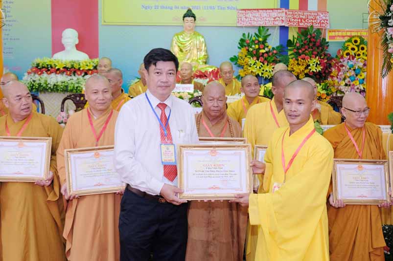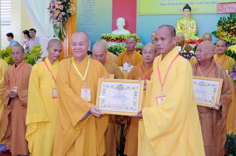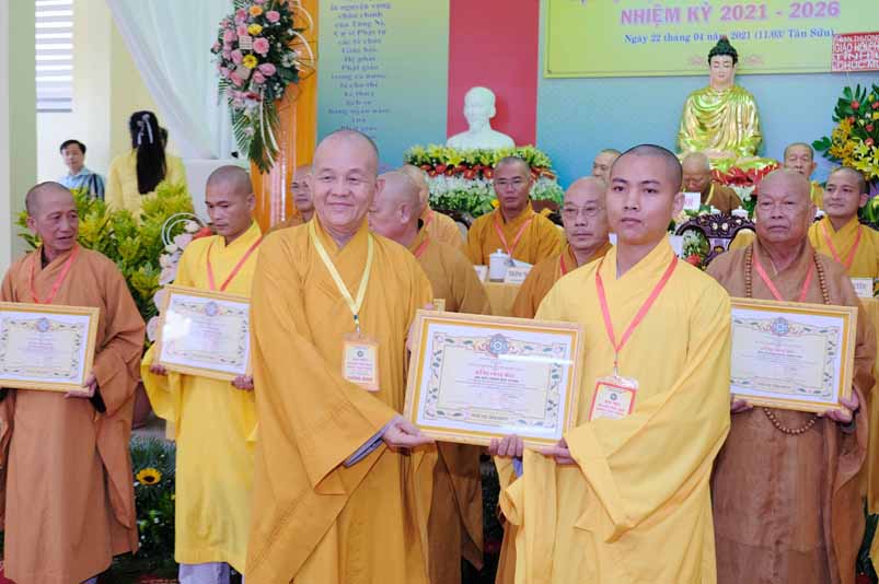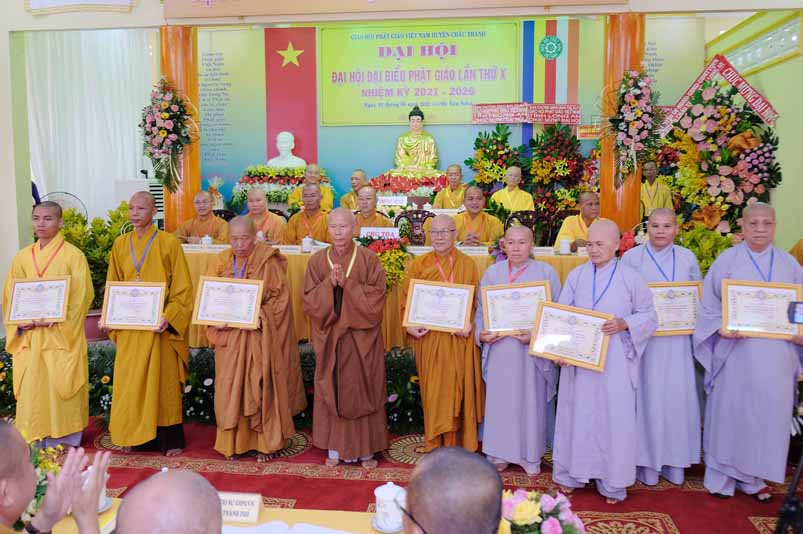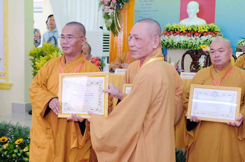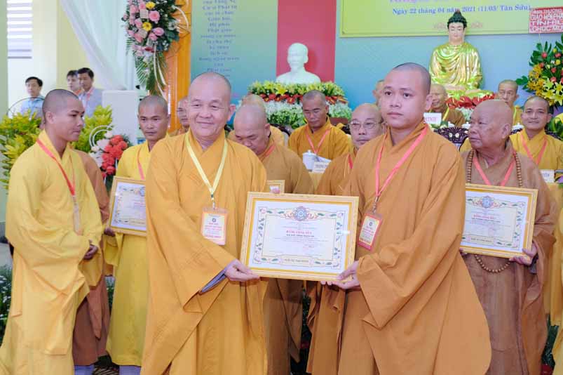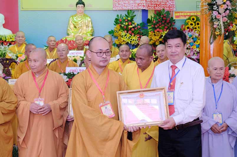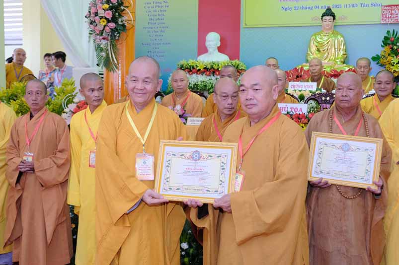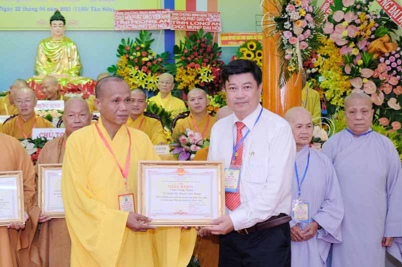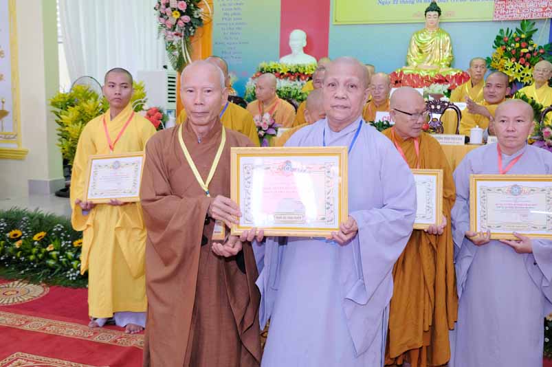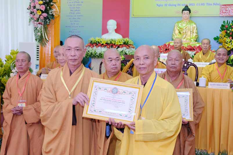 Dịp này, Thường trực BTS Phật giáo tỉnh và UBND tỉnh Long An đã trao tặng bằng tuyên dương công đức bằng khen cho tập thể, cá nhân hoàn thành xuất sắc nhiệm vụ công tác Phật sự trong nhiệm kỳ 2016 – 2021, để khích lệ đến chư Tăng Ni. Đồng thời, Ủy ban Nhân dân huyện Châu Thành cũng trao tặng bằng khen cho tập thể, BTS. GHPGVN liên huyện Bến Lức, nhiều cá nhân có thành tích tiêu biểu trong việc hướng dẫn tín đồ sống “Tốt đời, đẹp đạo”, những đóng góp tích cực, hoạt động Phật sự xuất sắc trong nhiệm kỳ cũ, góp sức vào sự nghiệp đại đoàn kết toàn dân tộc.
