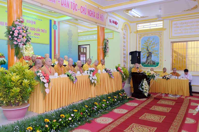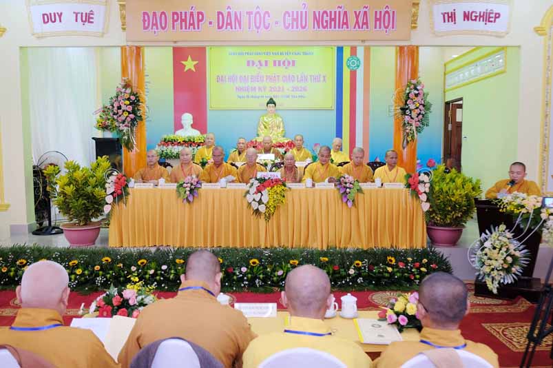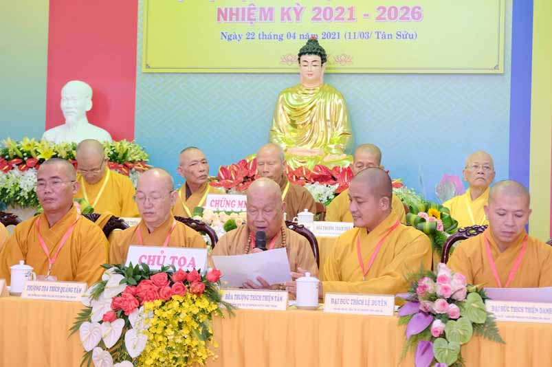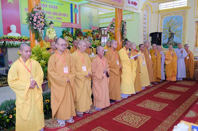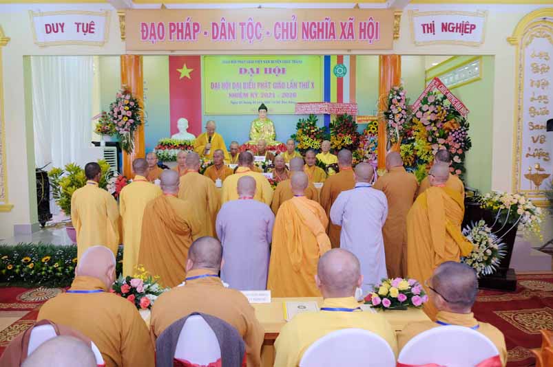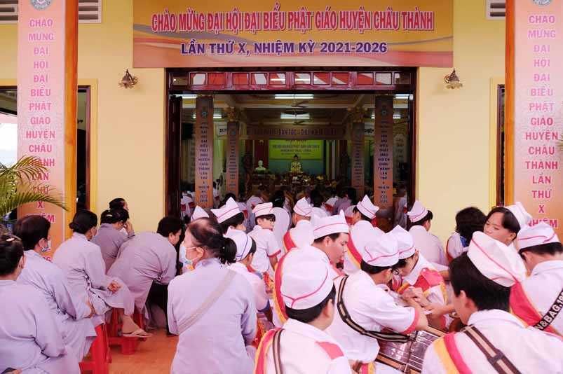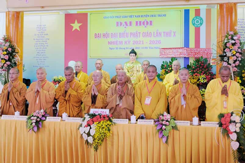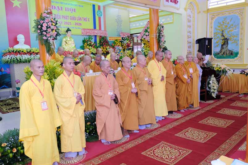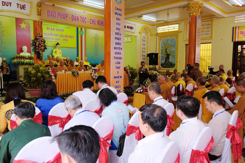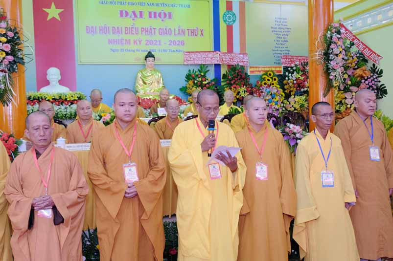 Trong không khí trang nghiêm thanh tịnh, dưới sự chứng minh gia hộ của Tam Bảo, sự hiện diện đầy niềm hoan hỷ của toàn thể Đại biểu. Thay mặt Ban tổ chức, Hoà thương long trọng tuyên bố khai mạc Đại hội Đại biểu Phật giáo huyện Châu Thành, lần thứ X, nhiệm kỳ 2021 – 2026.