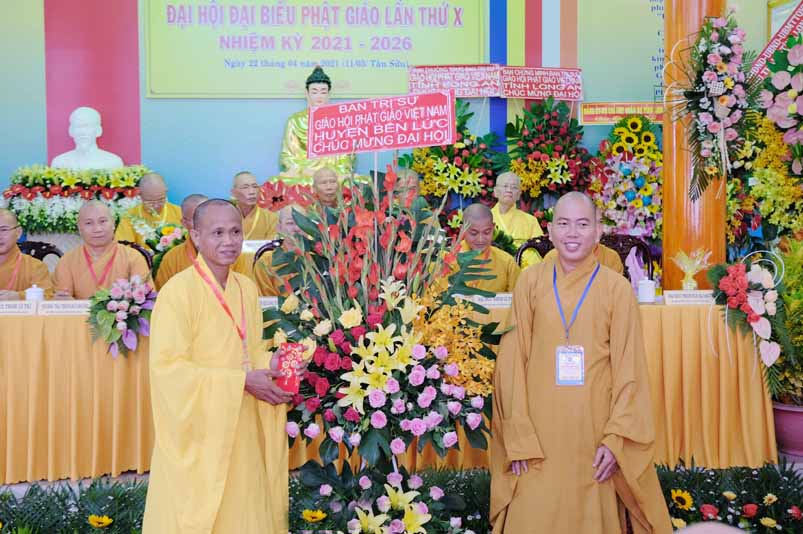 Đại hội hoan hỷ được cung đón nhị vị Hòa thượng Thích Thiện Huệ, Hòa thượng Thích Huệ Hồng – Chứng minh Ban Trị sự GHPGVN tỉnh Long An; Hòa thượng Thích Minh Thiện – Ủy viên Hội đồng Trị sự, Phó Trưởng Ban Hoằng pháp Trung ương GHPGVN, Trưởng Ban Trị sự GHPGVN tỉnh Long An, Trưởng Ban chỉ đạo công tác Đại hội, cùng Chư Tôn đức Thường trực Ban Trị sự GHPGVN tỉnh Long An, Chư Tôn đức Tăng Ni lãnh đạo Ban Trị sự GHPGVN các huyện, thị xã, thành phố trong tỉnh. Đại hội quy tụ đại biểu Tăng Ni, Phật tử tiêu biểu, đại diện cho Tăng Ni và Phật tử trong toàn huyện đồng về tham dự.