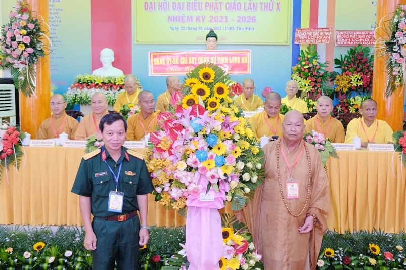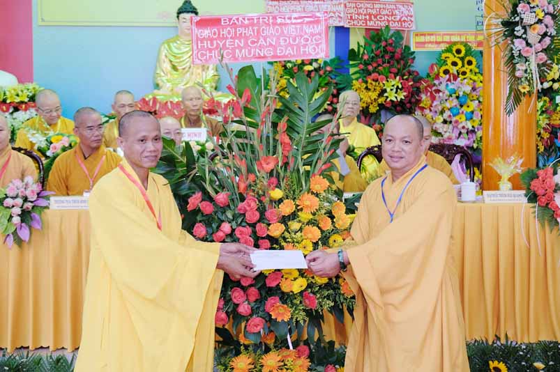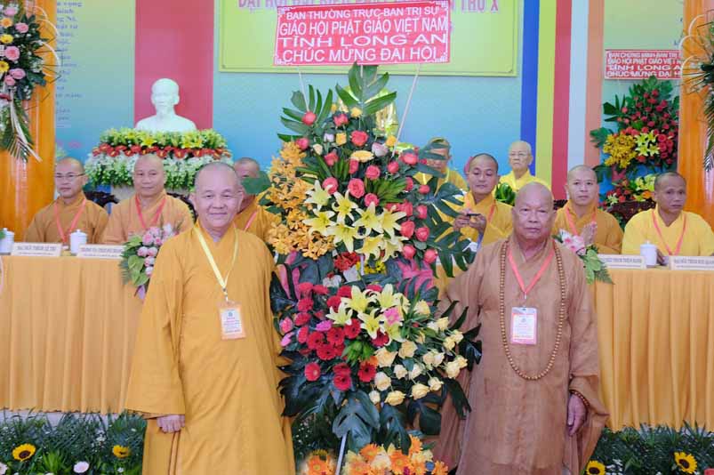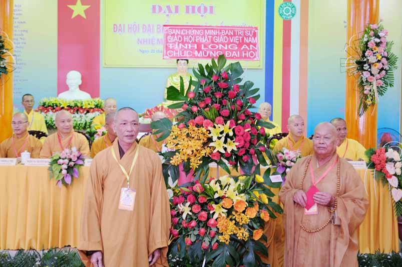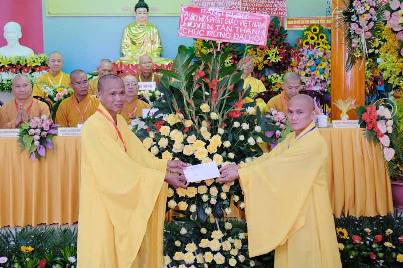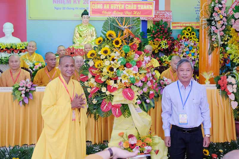 Sau phát biểu khai mạc Đại Hội, Hoà thượng Thích Thiện Tâm đã đón nhận nhiều lẵng hoa chúc mừng từ Chư Tôn đức Ban Chứng minh, Ban Thường trực Ban Trị sự tỉnh, quý lãnh đạo tỉnh Long An, huyện Châu Thành trao tặng.