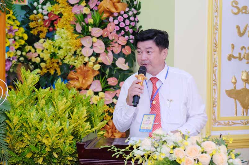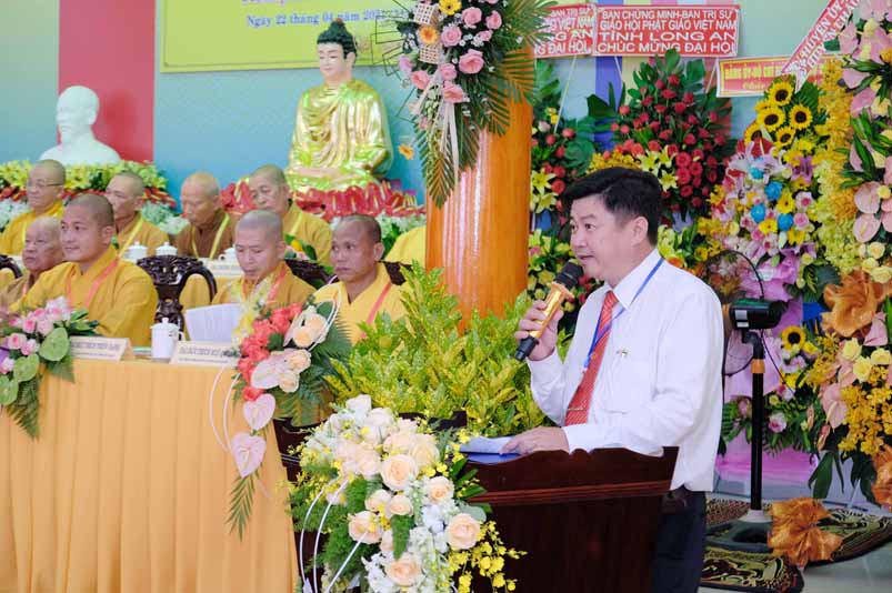 Ông mong muốn với phương châm “tốt đời đẹp đạo” “đạo pháp dân tộc”, “nước vinh đạo sáng” kêu gọi BTS PG huyện Châu thành, trù trì các bổn tự tiếp tục hướng dẫn những người Phật tử luôn phát khởi lòng từ bi, nuôi dưỡng bồ đề tâm, cùng với nhân dân huyện Châu Thành phát huy tinh thần yêu nước, thực hiện tốt phong trào “toàn dân đoàn kết, xây dựng nông thôn mới, đô thị văn minh. Cuối lời thay mặt Huyện Uỷ HĐND, UBND, UBMTTQ VN huyện Châu Thành Ông kính chúc quý đại biểu, quý Chư tôn thiền đức TĂNG ni và Phật tử về dự đại hội được mạnh khỏe, vạn sự như ý cát tường và viên mãn.