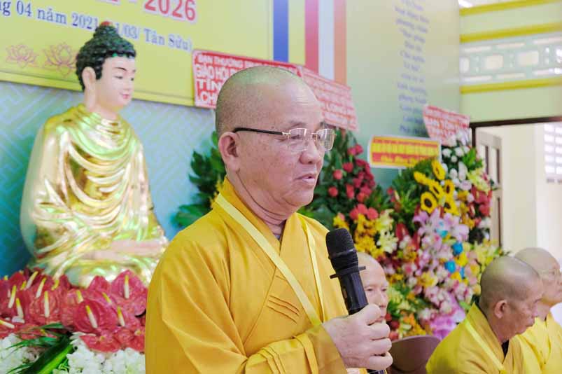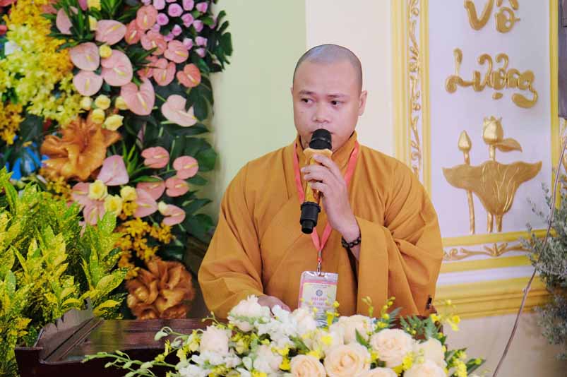 Đại đức Thích Thích Huệ Quang – Tân Trưởng Ban Trị sự Giáo hội Phật giáo huyện Châu Thành nhiệm kỳ (2021-2026) thay mặt Ban Tổ chức phát biểu cảm tạ tri ân đến Chư Tôn đức, quý lãnh đạo Chánh quyền, Đại biểu và bế mạc Đại hội.