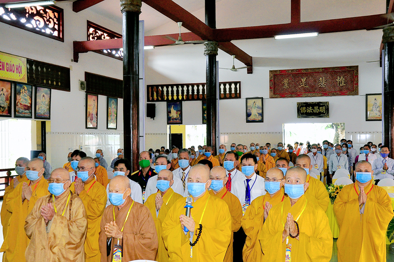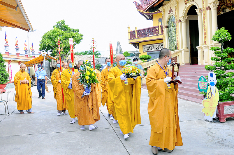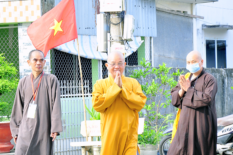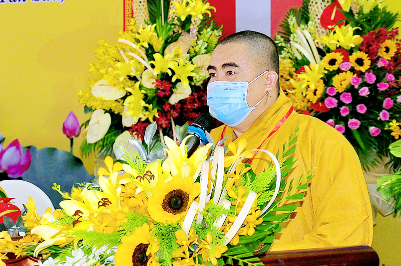 Hoà thượng nhắc lại lời phát biểu của đại diện chính quyền, Ông Lê Hoàng Hùng. Lời phát biểu mang tính kết nối, và nhắc nhở tình hình phòng chống dịch Covid-19 trong hoàn cảnh khó khăn hiện tại.