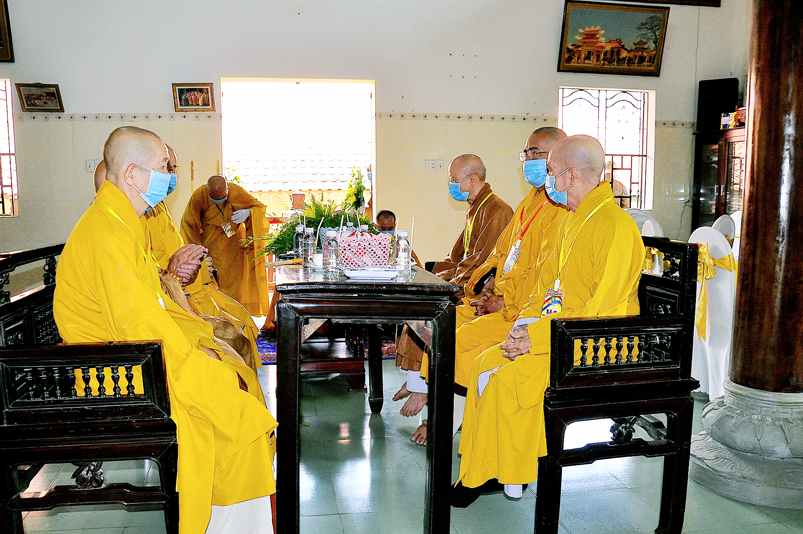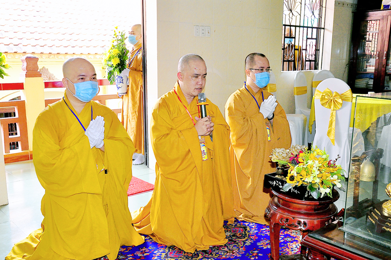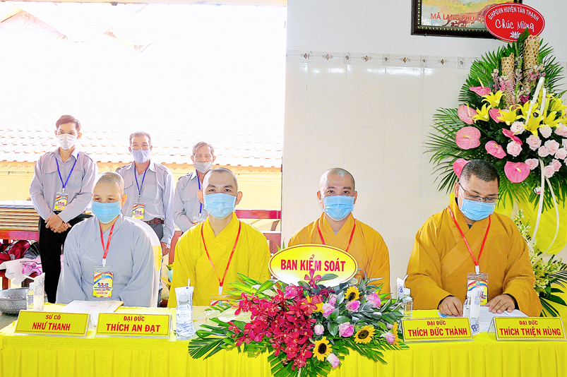 Hòa thượng Thích Minh Thiện tác pháp yết ma thông qua danh sách đề cử tân Ban Trị sự. Gồm 18 vị, trong đó có 12 vị ban thường trực. Phụ trách 16 chức việc gồm: Chứng minh: HT. Thích Minh Thiện; TT. Thích Tắc Quảng; NT. Thích nữ Tuệ Đăng (Chứng minh Ni giới huyện); ĐĐ. Thích An Nhựt được suy cử giữ chức vụ Trưởng Ban Trị sự, Trưởng Ban Tăng sự; ĐĐ. Thích An Điền – Phó Trưởng Ban, Trưởng Ban Kiểm Soát Trưởng Ban Từ Thiện xã Hội; SC. Thích Nữ Như Thanh – Phó Trưởng Ban, Trưởng Ban Hướng dẫn Phật tử; ĐĐ. Thích Quảng Phước – Chánh Thư ký; ĐĐ. Thích An Phúc – Phó Chánh Thư ký; ĐĐ. Thích Thiện Hùng – Phó Chánh Thư Ký, Trưởng Ban Pháp chế; ĐĐ. Thích Tánh Nguyện – Trưởng Ban Giáo dục Phật giáo; ĐĐ. Thích Nguyên Vũ – Trưởng Ban Văn hóa; ĐĐ. Thích Minh Trí – Trưởng Ban Thông tin – Truyền thông; NS. Thích nữ Như Hương – Trưởng Ban Hoằng pháp, Trưởng Phân ban Ni giới; SC. Thích nữ Chơn Bảo – Trưởng Ban Kinh tế Tài chánh; SC. Thích nữ Hiệp Liên – Thủ quỹ; các ủy viên: ĐĐ. Thích An Bình; ĐĐ. Thích Đức Thành; ĐĐ. Thích Thiện Nhàn; ĐĐ. Thích Huệ Tài; SC. Thích nữ Hiệp Liên; SC.Thích nữ Như Liên.