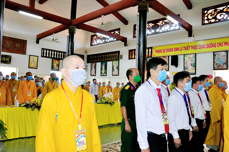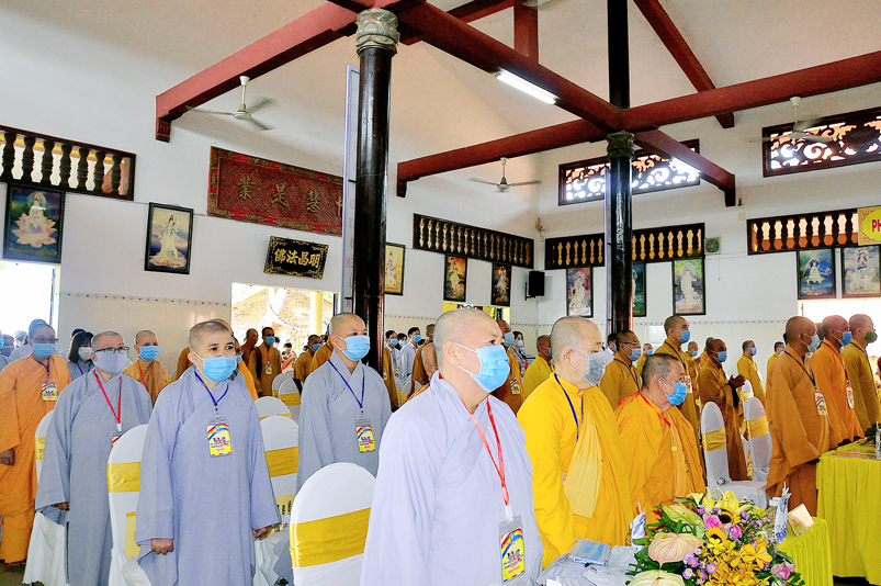 Sau nghi thức truyền thống của Phật giáo Niệm Phật cầu gia bị, nghi thức chào Quốc kỳ, Đạo kỳ. Đại đức Thích Thiện Hùng – Thư ký Đại hội thông qua số lượng đại biểu về tham dự Đại hội với số lượng 98 đại biểu về tham dự.