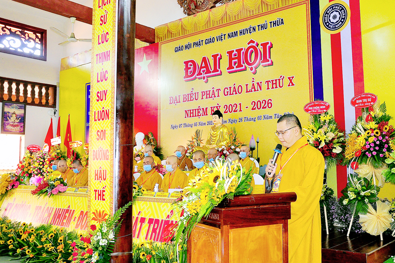 Đại đức Hóa Minh nhấn mạnh, Đại hội đại biểu Phật giáo huyện Thủ Thừa lần X nhiệm kỳ 2021-2026, diễn ra trong không khí trang nghiêm, trọng thể trong tinh thần Đoàn kết- Hòa hợp đã khẳng định sự phát triển vững mạnh theo phương châm phụng sự: “Đạo pháp- Dân tộc- Chủ nghĩa xã hội”.