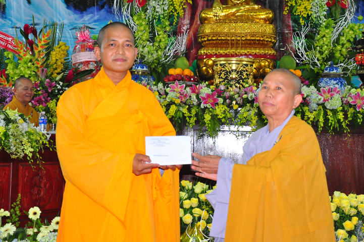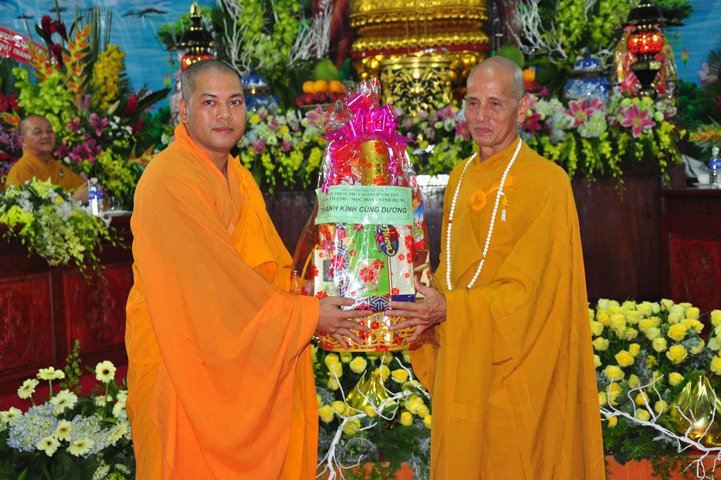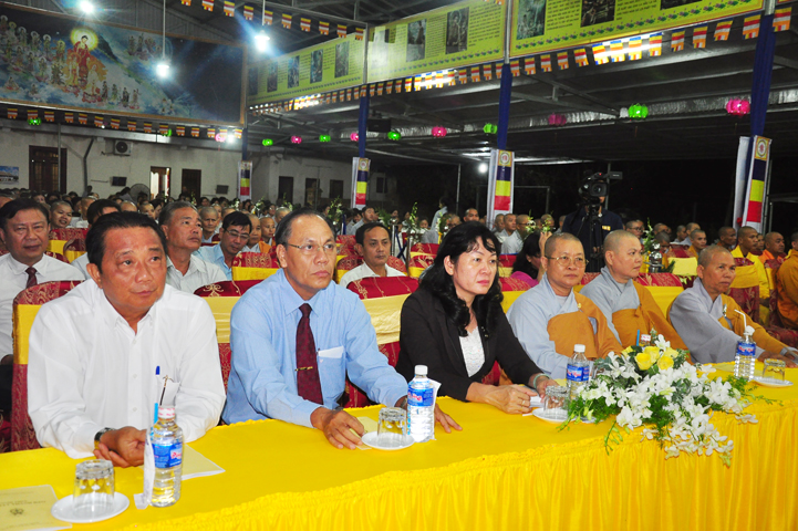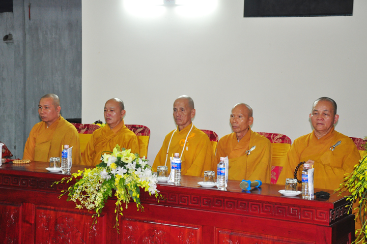 Tham dự và chứng minh buổi lễ: HT Thích Phước Toàn – UV ban Văn hoá TW GHPGVN; HT Thích Minh Thiện – UV HĐTS, Phó ban Hoằng pháp TW kiêm Trưởng đoàn Giảng sư đoàn ban Hoằng pháp TW, Trưởng ban BTS GHPGVN tỉnh Long An, HT Thích Huệ Hồng – Phó trưởng ban BTS GHPGVN tỉnh Long An; TT Thích Quảng Tâm – Phó trưởng ban BTS kiêm trưởng ban KTTC GHPGVN tỉnh Long An; HT Thích Quảng Ý – Trưởng ban BTS GHPGVN liên huyện Tân Thạnh – Kiến Tường – Vĩnh Hưng; HT Thích Thiện Phúc – Trưởng ban BTS GHPGVN liên huyện Đức Hoà – Đức Huệ, trưởng ban tổ chức đại lễ; Đ Đ Thích Lệ Trí – UV HĐTS, Chánh thư ký BTS kiêm trưởng ban Hoằng pháp GHPGVN tỉnh Long An; ĐĐ Thích Quảng Lâm – Phó thư ký kiêm Chánh văn phòng ban KTTC TW GHPGVN; ĐĐ Thích An Trung – Trưởng ban BTS GHPGVN huyện Bến Lức cùng chư tôn đức trong Thường trực BTS GHPGVN tỉnh Long An, BTS GHPGVN liên huyện Đức Hoà – Đức Huệ và các BTS lân cận, chư tôn đức Tăng Ni trụ trì các tự viện và Tăng ni sinh khoá VI trường TCPHLA.