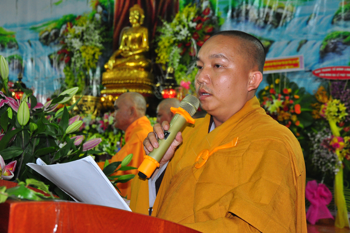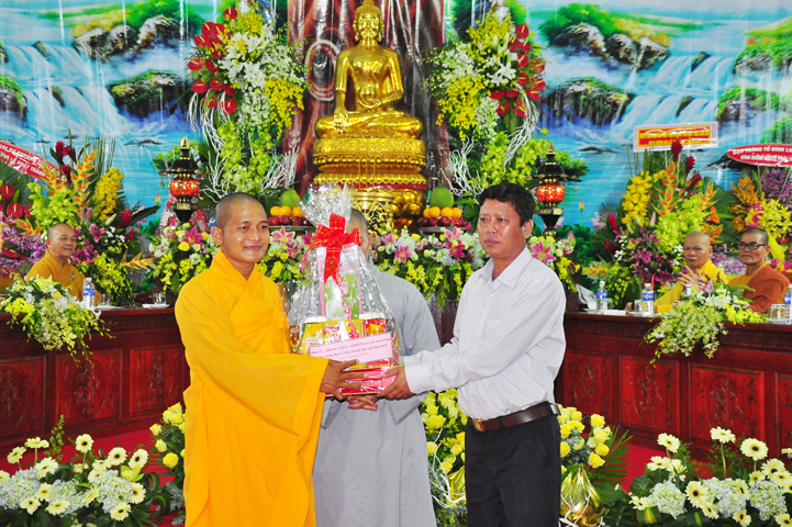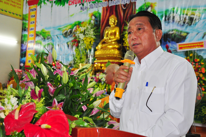 Ông đã nêu cao ý nghĩa cao đẹp của sự thành đạo của đức Phật, bởi vì đó là sự chiến thắng vẻ vang đối với bản thân đức Phật mà còn là sự khai sáng tuyệt vời cho hết thảy nhân loại. Ông đề nghị tiếp tục phát huy kết quả đạt được bằng cách là Tăng Ni, Phật tử huyện nhà luôn phát huy tinh thần đoàn kết, gắn bó trong khối đại đoàn kết dân tộc, đồng hành cùng dân tộc để xây dựng và bảo vệ tổ quốc, phát triển công nghiệp hoá, hiện đại hoá đất nước. Ông đã ghi nhận và biểu dương sự đóng góp của của BTS GHPGVN liên huyện, cùng Tăng Ni, Phật tử huyện.