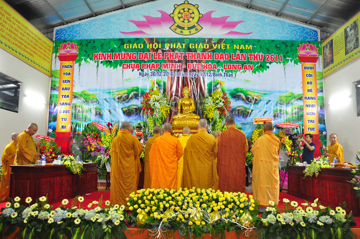 Ngày 02/ 12/ Bính Thân (30-12-2016), Lễ Phật thành đạo lần thứ 2611, năm 2016 được BTS GHPGVN liên huyện Đức Hoà – Đức Huệ kết hợp với Tổ đình Pháp Minh được long trọng tổ chức.