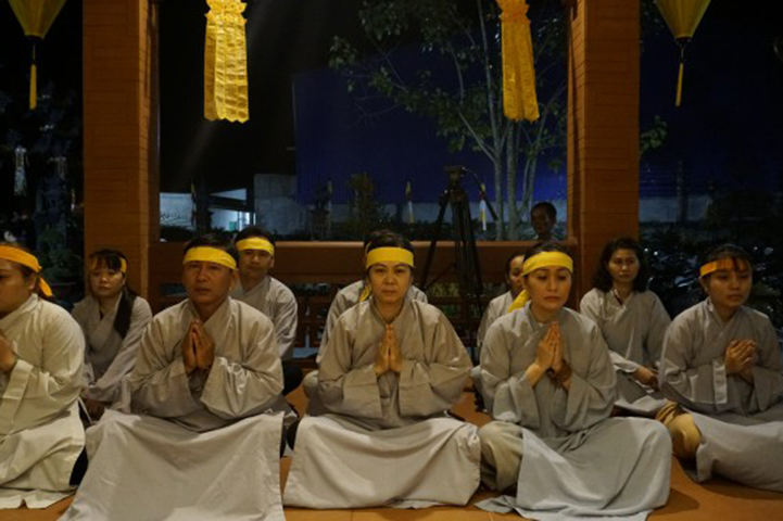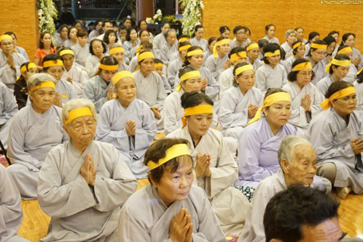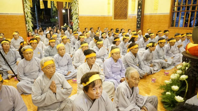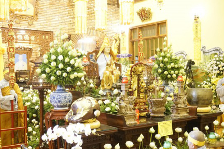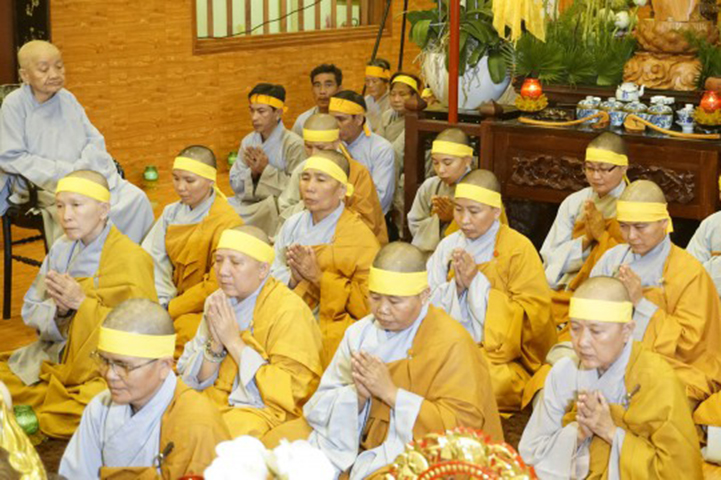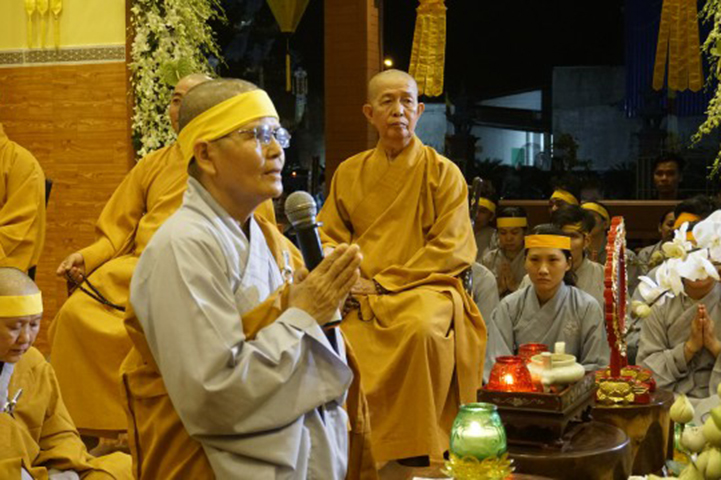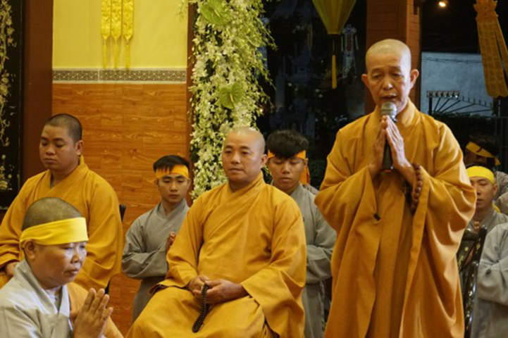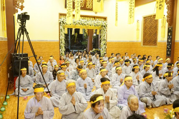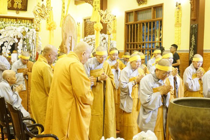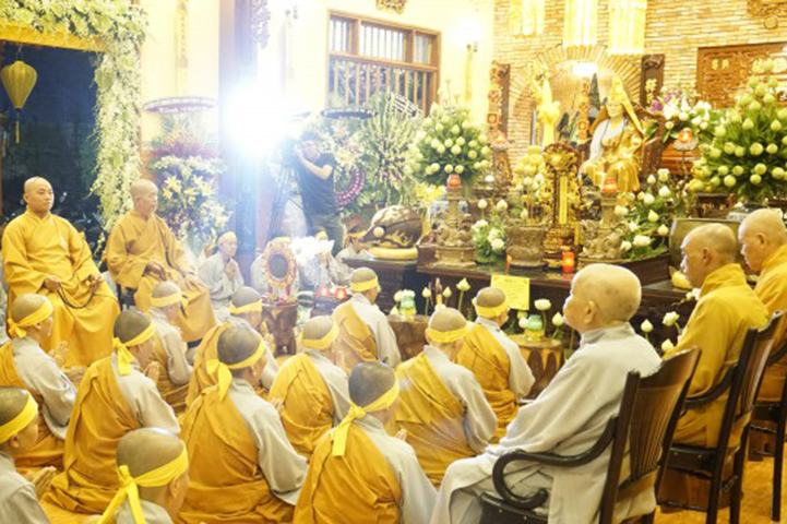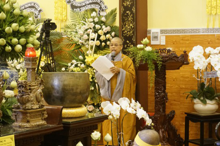 Trong sự chứng minh của chư Tôn đức, môn nhân pháp quyến tại đạo tràng lần lượt kính cẩn đối trước Giác linh đài Ân Sư kính dâng lời Hoài niệm.