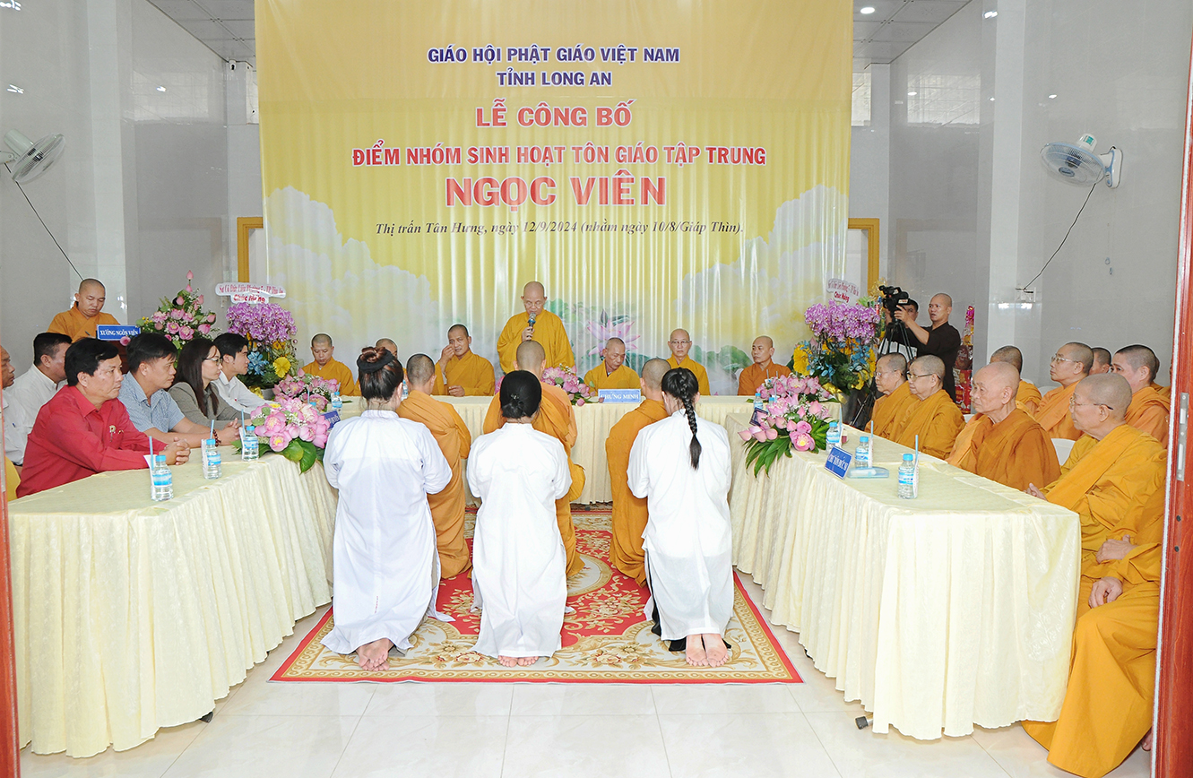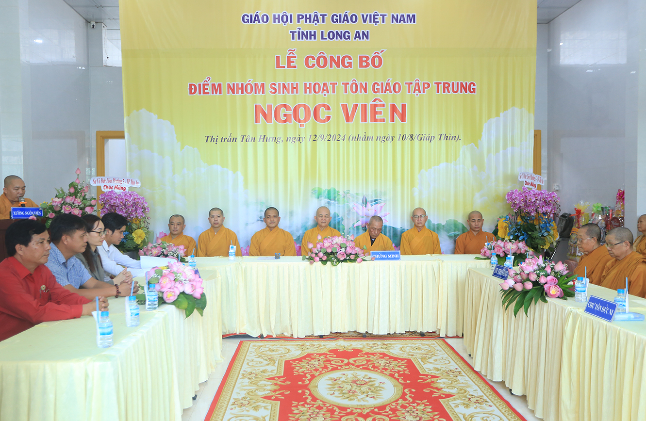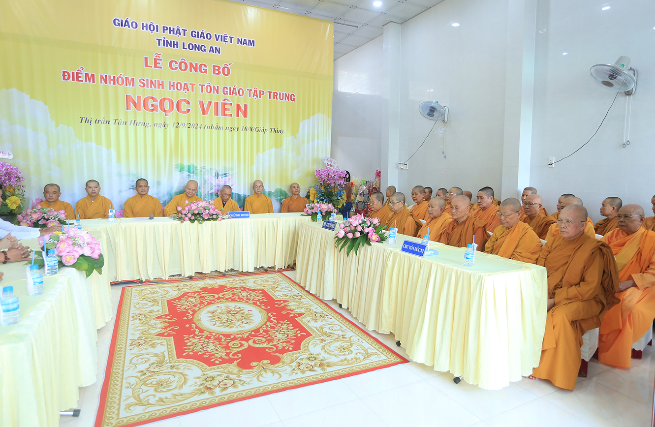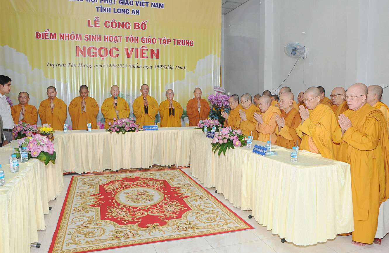 Sáng ngày 12/9/2024 (nhằm ngày 10/8/Giáp Thìn), Ban Trị sự GHPGVN tỉnh Long An phối hợp BTS GHPGVN huyện Tân Hưng và lãnh đạo chính quyền các cấp long trọng tổ chức Lễ công bố điểm nhóm sinh hoạt tôn giáo tập trung Ngọc Viên, toạ lạc tại Thị trấn Tân Hưng, huyện Tân Hưng, tỉnh Long An.