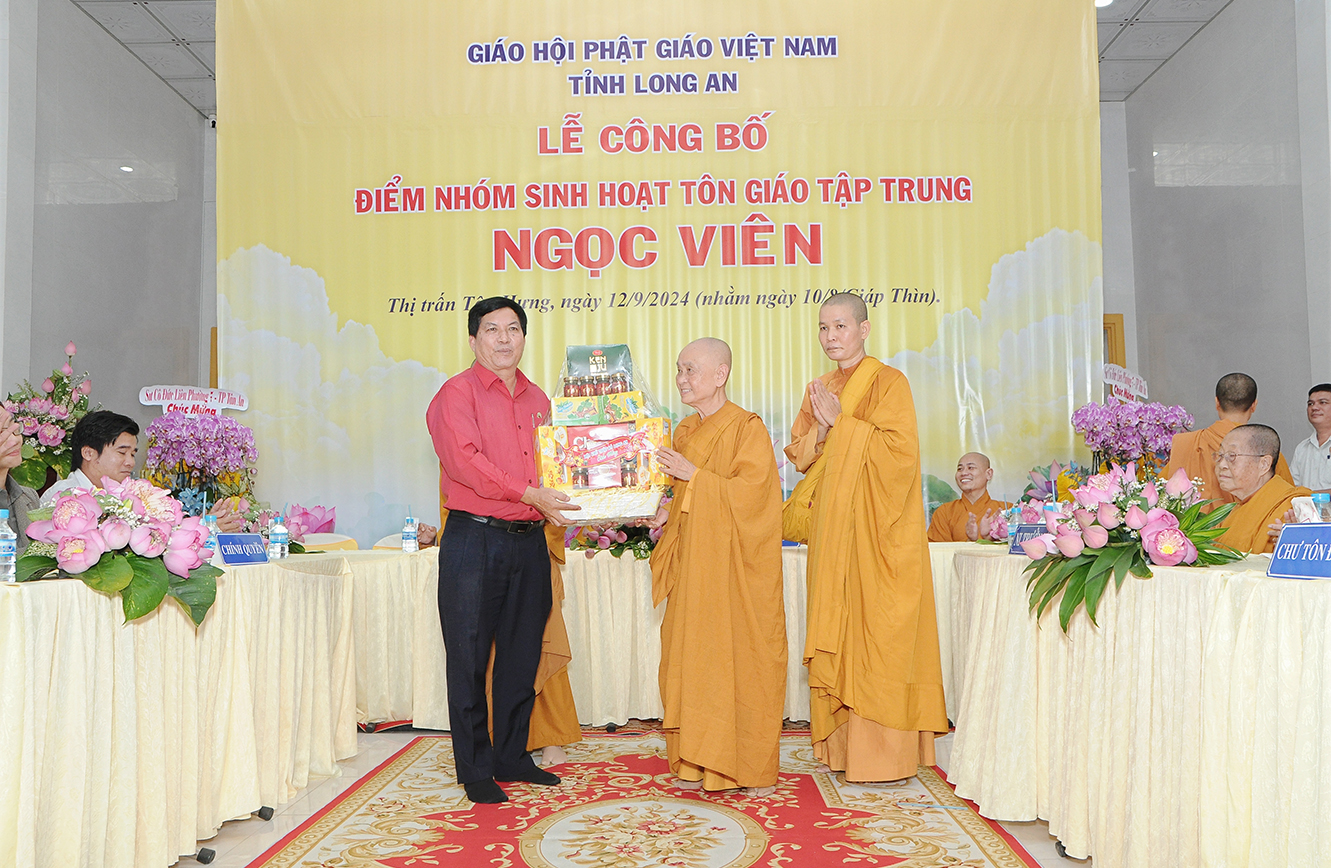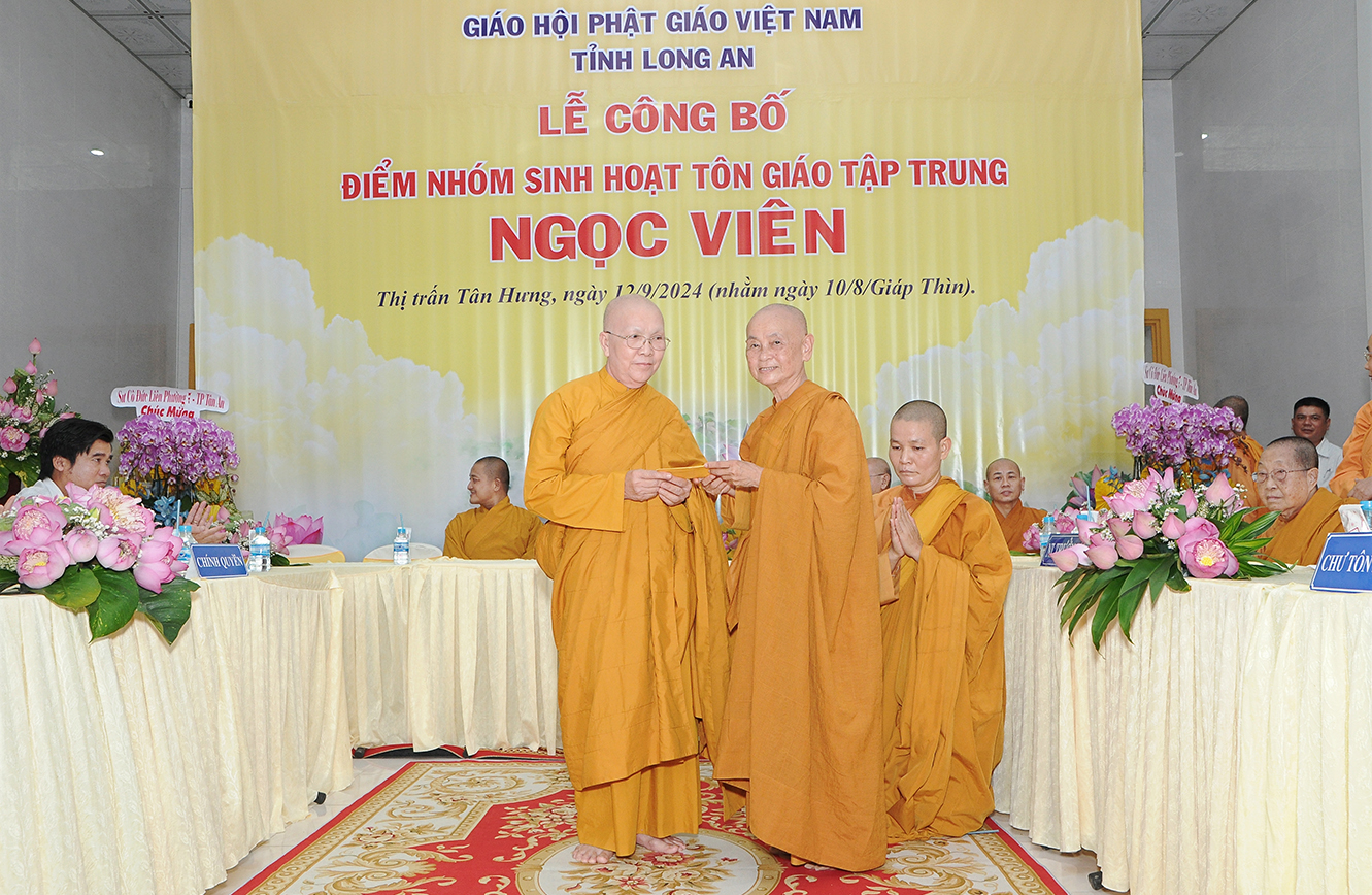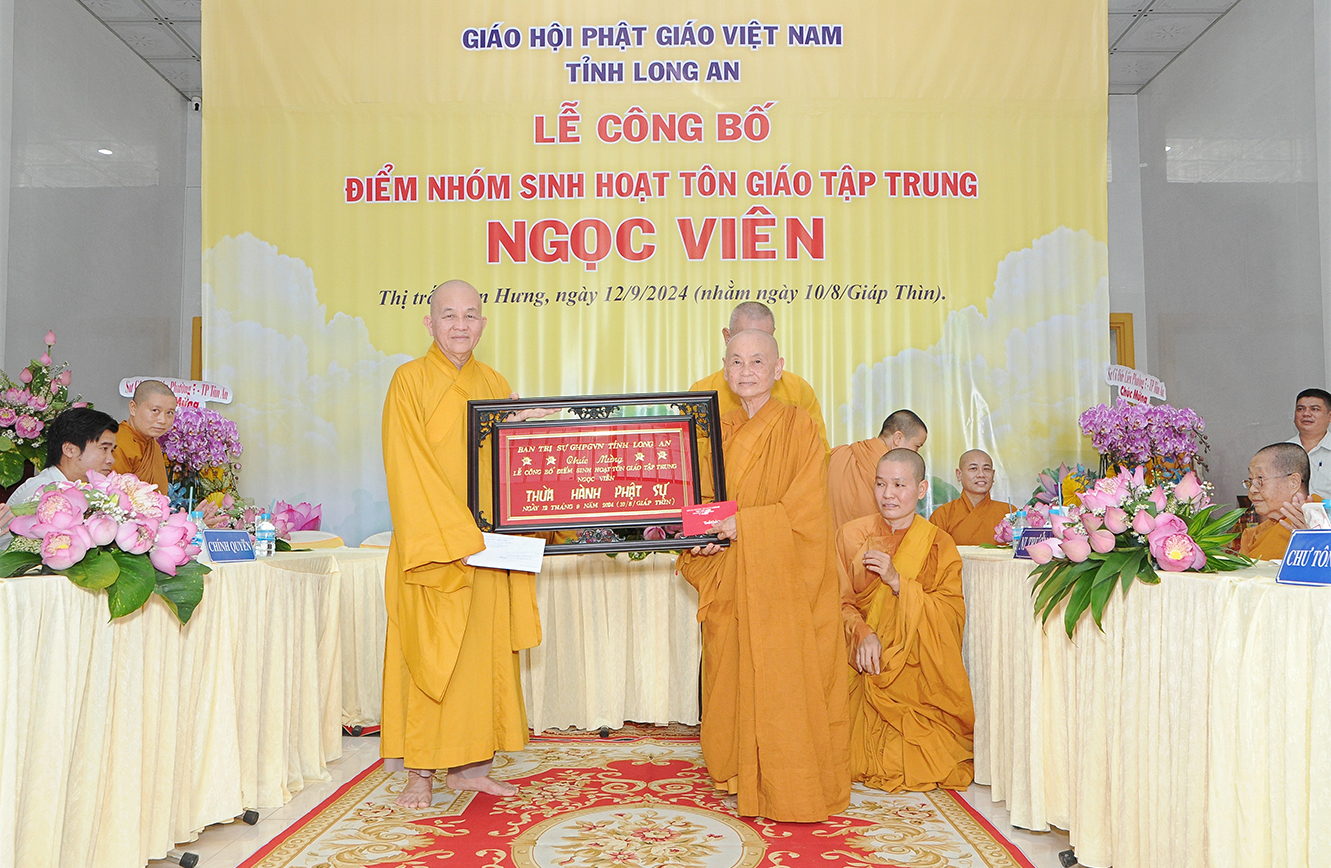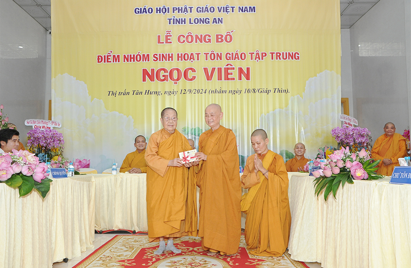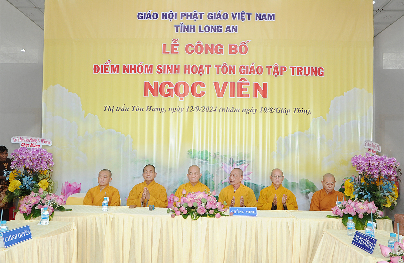 Sáng ngày 12/9/2024 (nhằm ngày 10/8/Giáp Thìn), Ban Trị sự GHPGVN tỉnh Long An phối hợp BTS GHPGVN huyện Tân Hưng và lãnh đạo chính quyền các cấp long trọng tổ chức Lễ công bố điểm nhóm sinh hoạt tôn giáo tập trung Ngọc Viên, toạ lạc tại Thị trấn Tân Hưng, huyện Tân Hưng, tỉnh Long An.