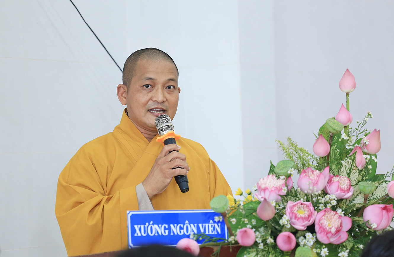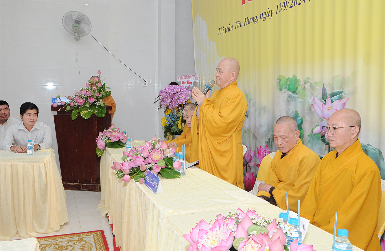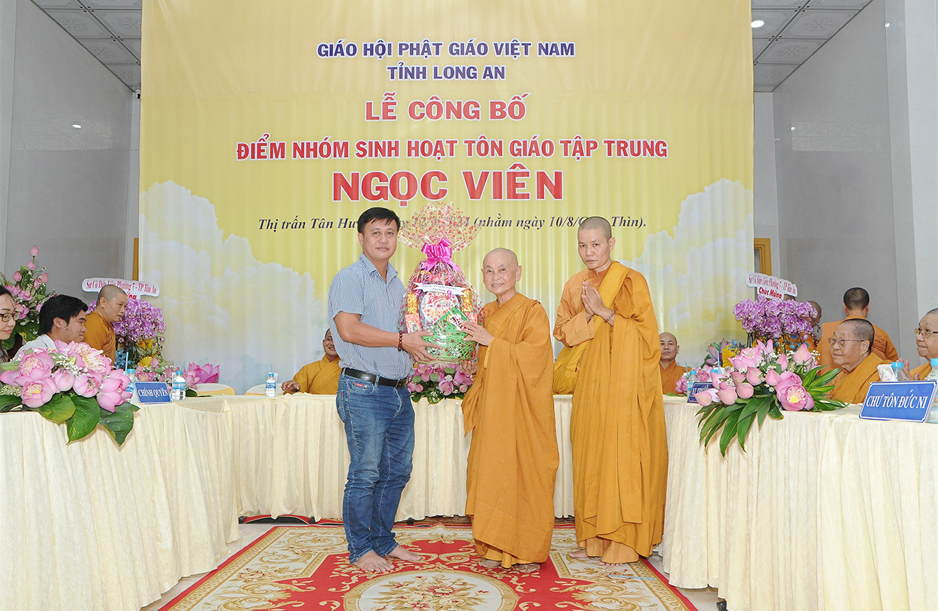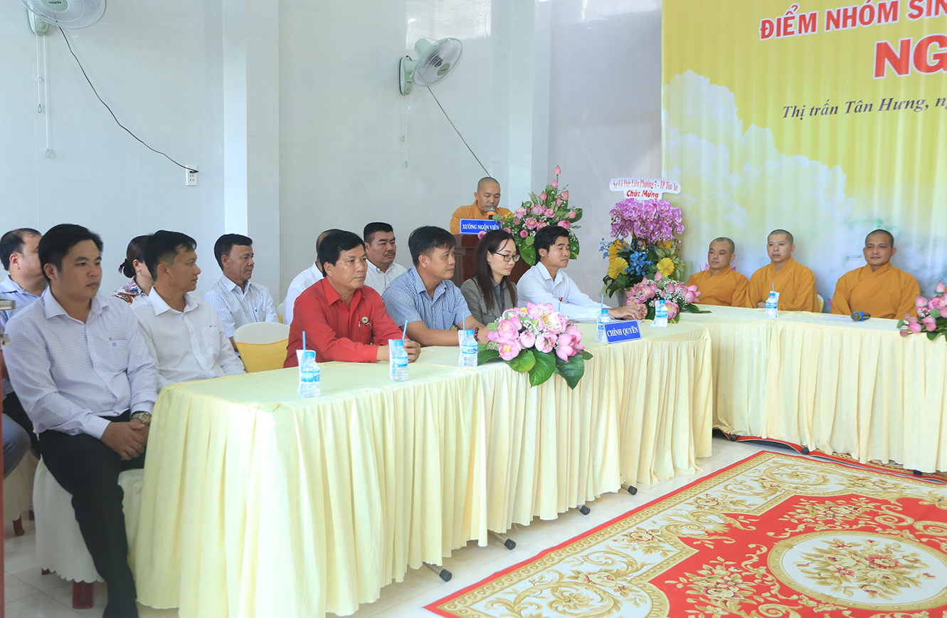 Đại diện chính quyền địa phương, ông Nguyễn Minh Chửng – Quyền CT UBND Thị trấn Tân Hưng có lời phát biểu. Ông mong muốn Đạo tràng Ngọc Viên thực hiện nghiêm túc các quy định của nhà nước để đảm bảo an ninh trật tự xã hội trong quá trình sinh hoạt. Ông hy vọng Sư cô đại diện và Phật tử tại đạo tràng góp phần cùng địa phương trong công tác an sinh xã hội, chăm lo cho người có hoàn cảnh khó khăn.