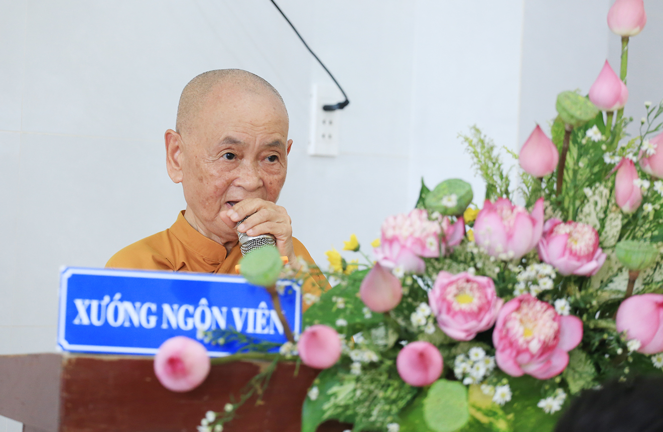 Tại buổi lễ, Hòa thượng Thích Minh Thiện đã đãi lao Chư tôn Hòa thượng chứng minh ban lời đạo từ. Hòa thượng Hòa thượng nhắc đôi điều có liên quan về Luật Tín ngưỡng Tôn giáo, Hiến chương GHPGVN. Đặc biệt, Hòa thượng nhắc nhở BTS GHPGVN huyện Tân Hưng tạo điều kiện để Ni giới tại Đạo tràng Ngọc Viên được sinh hoạt các khóa lễ biệt truyền được Hiến chương Giáo hội đã quy định. Hòa thượng cũng bày tỏ mong muốn rằng người đại diện điểm nhóm sinh hoạt tôn giáo và Phật tử tại đạo tràng Ngọc Viên sẽ nỗ lực cùng Phật giáo địa phương để phát triển đạo tràng, đồng thời phối hợp với chính quyền để duy trì an ninh trật tự, hướng dẫn tín đồ sống theo lời Phật dạy và tuân thủ pháp luật. Hòa thượng cũng gửi lời cảm ơn đến chính quyền địa phương vì đã tạo điều kiện thuận lợi để Phật sự đạt được thành tựu. Sau cùng, Hòa thượng có những lời chúc tốt đẹp và kết thúc lời đạo từ.