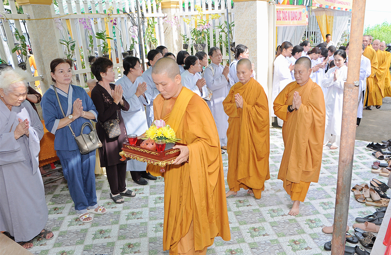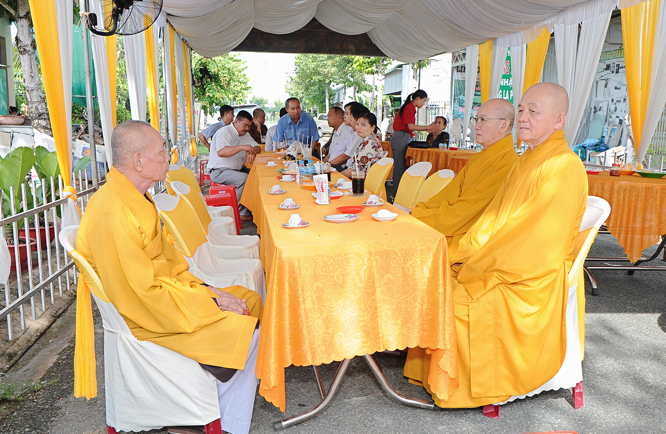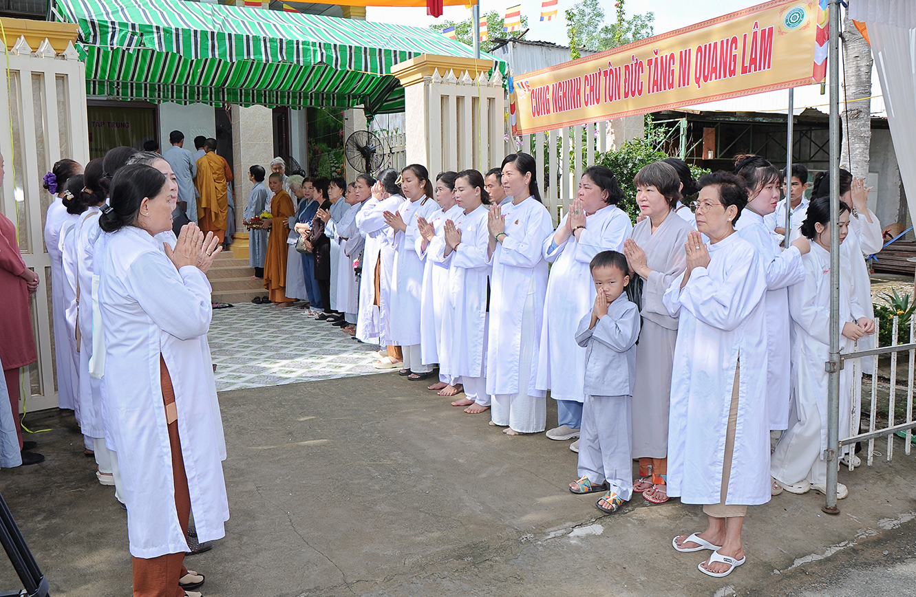 Buỗi lễ cung nghinh sự quang lâm chứng minh của: Trưởng lão HT. Thích Thiện Huệ – Thành viên HĐCM TƯ, Chứng minh BTS GHPGVN tỉnh Long An; HT. Thích Minh Thiện – UV HĐTS, Phó Trưởng Ban Hoằng pháp TƯ, Trưởng BTS GHPGVN tỉnh Long An; TT. Thích Quảng Tâm – UV HĐTS, Phó Trưởng BTS GHPGVN tỉnh; ĐĐ. Thích Lệ Duyên – Phó Trưởng Ban kiêm Chánh Thư ký BTS GHPGVN tỉnh Long An, Trưởng BTS GHPGVN huyện Đức Hoà; ĐĐ. Thích Thiện Danh – Phó Thư ký kiêm Chánh Văn phòng BTS GHPGVN tỉnh Long An; Chư tôn đức Ban Thường trực BTS GHPGVN tỉnh Long An, huyện Tân Hưng; Chư tôn đức Tăng Ni trụ trì các tự viện; Chư tôn đức Ni trong hệ phái Khất sĩ đồng về tham dự.