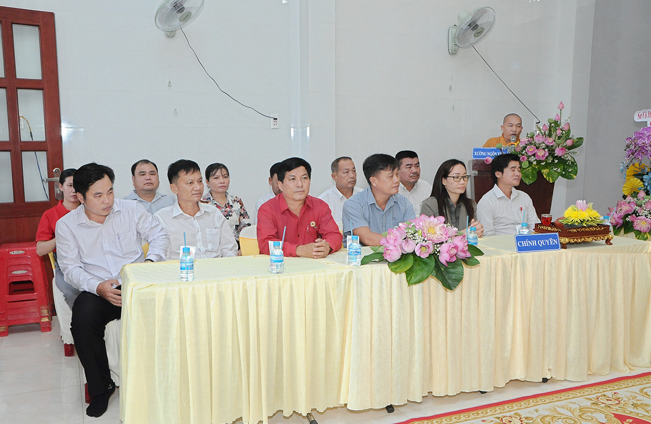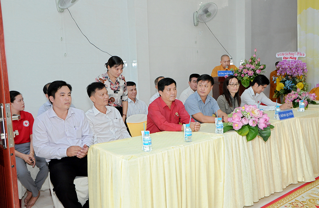 Về phía lãnh đạo chính quyền có ông Huỳnh Kim Tùng – Phó CT Hội Chữ Thập đỏ tỉnh; ông Lâm Chí Thanh – Phó Phòng Công an Nội địa tỉnh Long An; bà Nguyễn Thị Thuý Ngọc – Phó Trưởng Ban tôn giáo Sở Nội vụ tỉnh Long An; cùng lãnh đạo các cấp chính quyền sở tại tham dự.