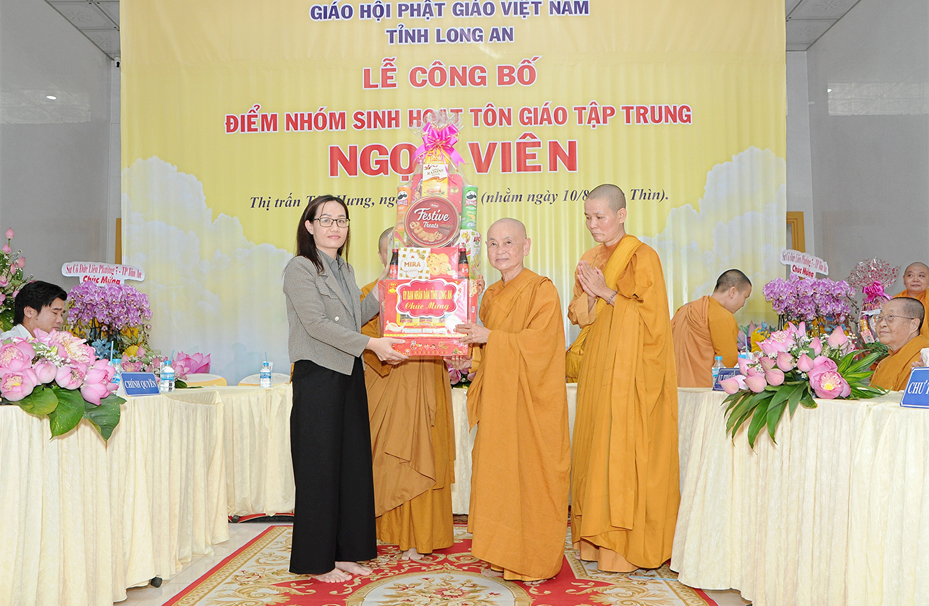 Điểm nhóm sinh hoạt tôn giáo tập trung Ngọc Viên thuộc tổ chức tôn giáo Ban Trị sự GHPGVN tỉnh Long An. Số lượng đăng ký tham gia sinh hoạt là 96 người. Thời hạn đăng ký sinh hoạt là 36 tháng kể từ ngày ký giấy chứng nhận.