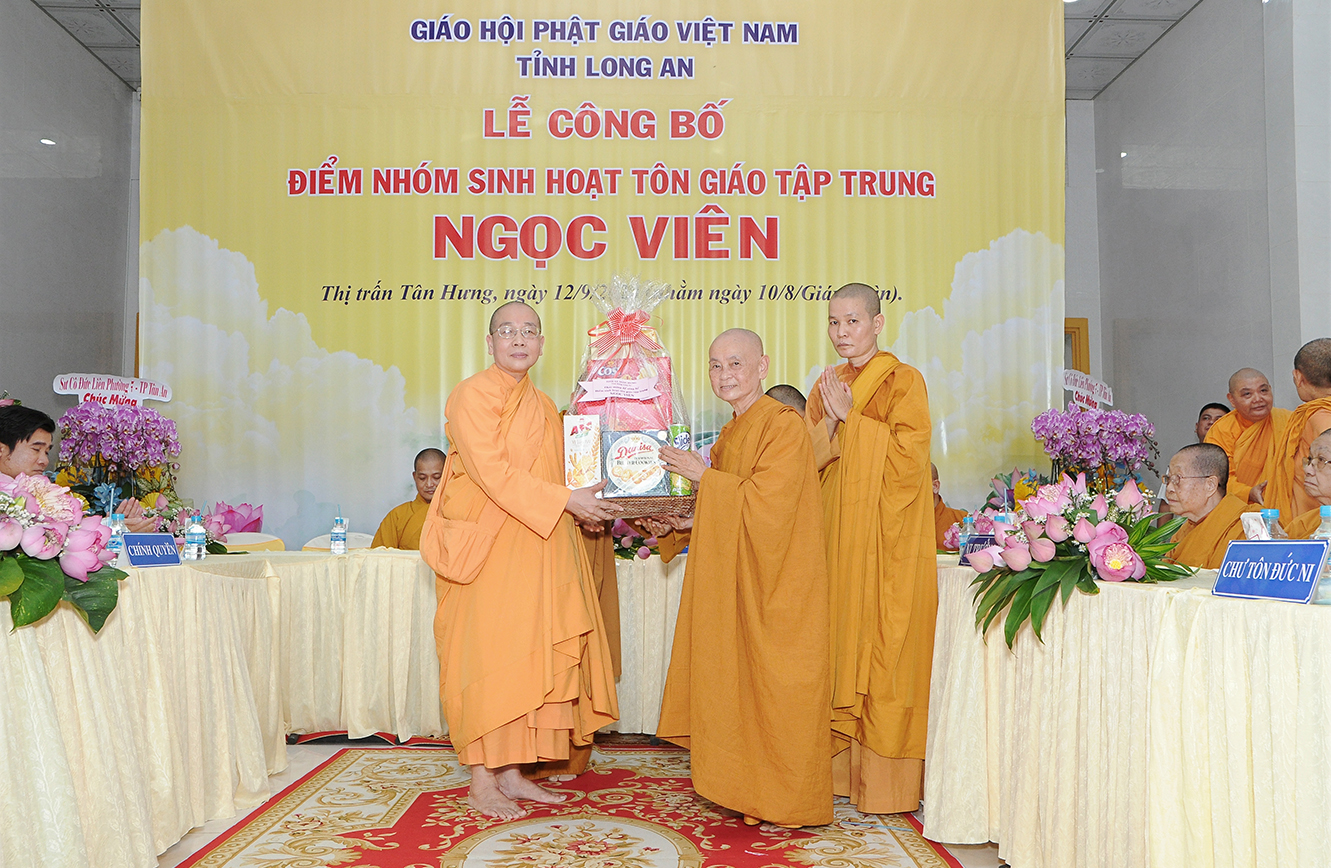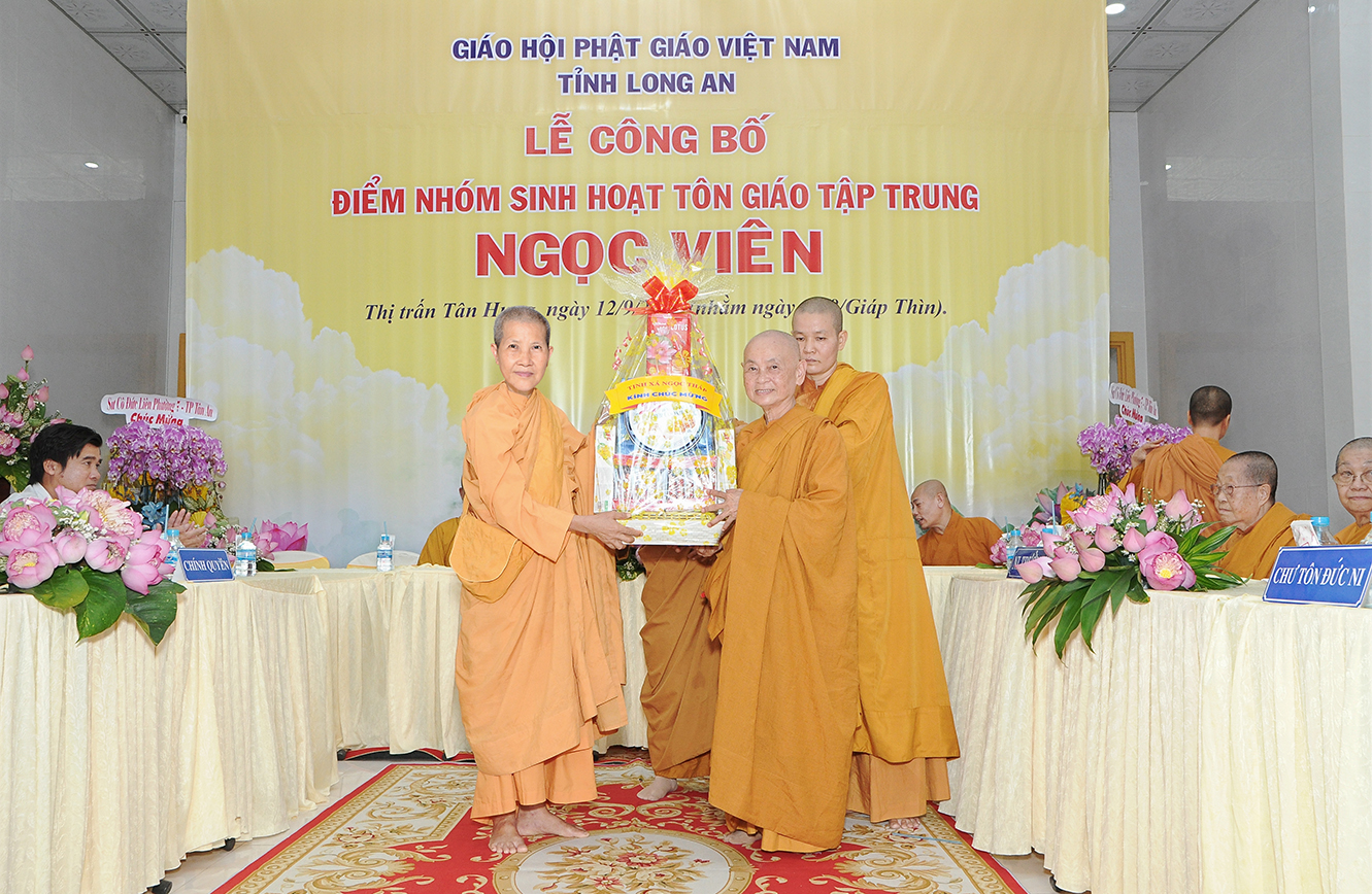 Đại đức Thích Lệ Duyên – Phó ban kiêm Chánh Thư ký Ban Trị sự GHPGVN tỉnh Long An, Trưởng ban Trị sự GHPGVN huyện Đức Hòa thông qua giấy chứng nhận đăng ký sinh hoạt tôn giáo tập trung Ngọc Viên theo quyết định số 698/GCN-UBND do Quyền Chủ tịch UBND Thị trấn Tân Hưng – ông Nguyễn Minh Chuẩn ấn ký ngày 16/08/2024, do SC. Thích nữ Liên Phương (thế danh Nguyễn Thị Bé Chín) sinh năm 1980, hộ khẩu thường trú: số 242/7 Nguyễn Thông, P3, TP Tân An, tỉnh Long An.