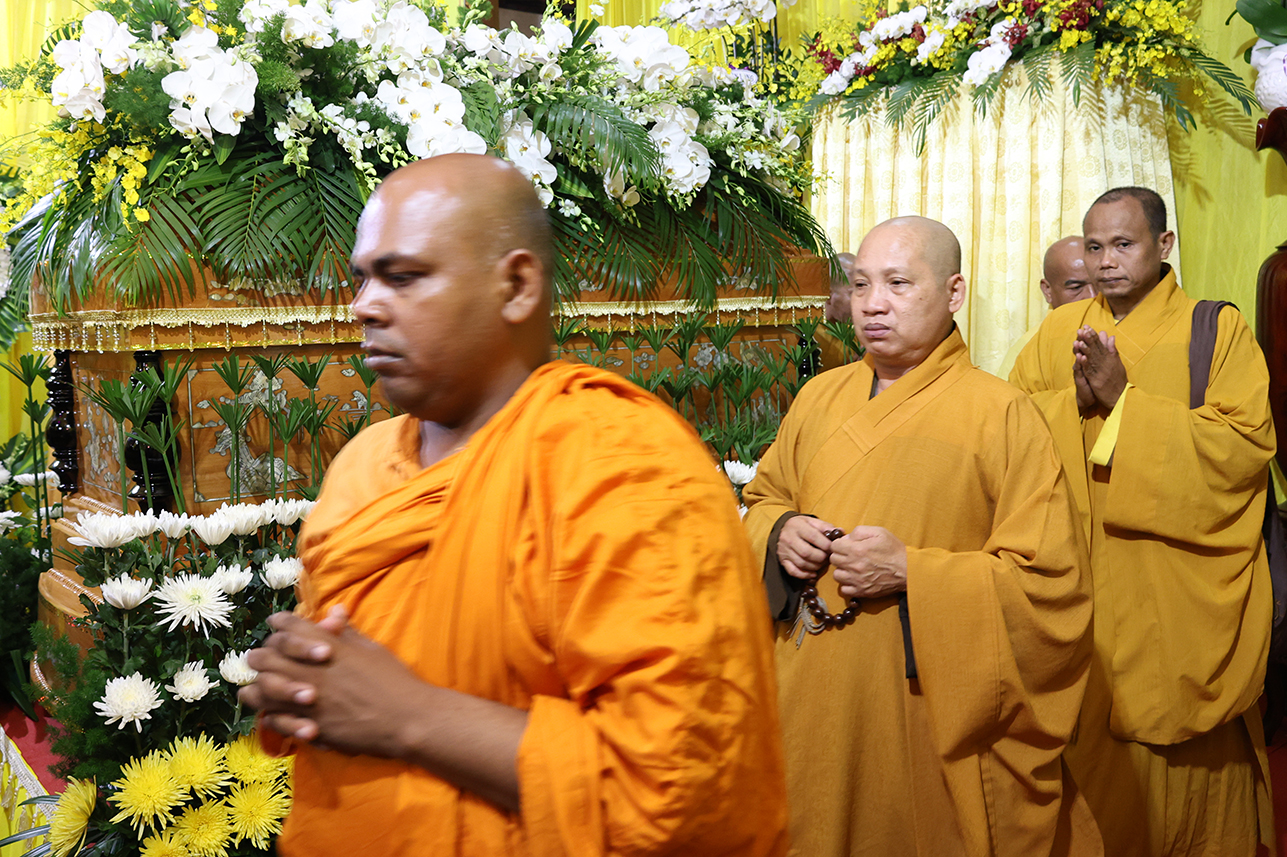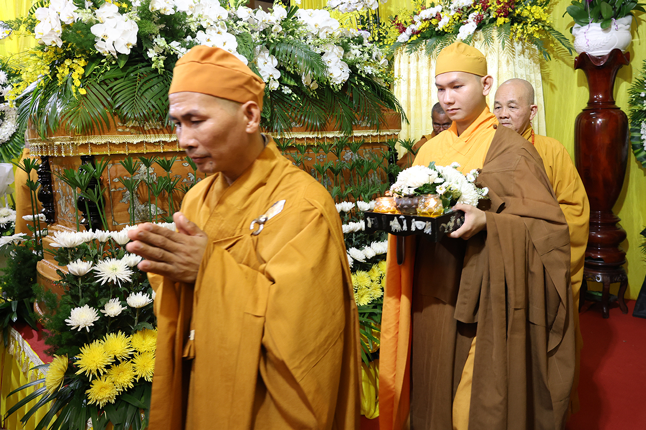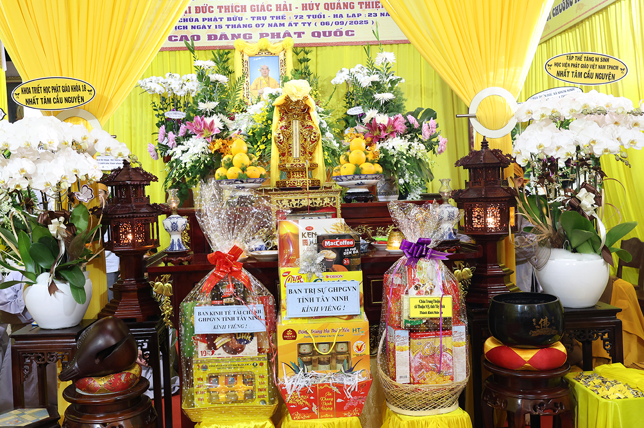 Đoàn do HT. Thích Minh Thiện – UV HĐTS, Phó Ban Hoằng pháp TƯ, Chứng minh, cố vấn BTS GHPGVN tỉnh Tây Ninh làm Trưởng phái đoàn; TT. Thích Quảng Tâm – UV HĐTS, Phó Ban Từ thiện xã hội TƯ, Trưởng BTS GHPGVN tỉnh; TT. Thích Minh Thọ – UV HĐTS, Phó BTS kiêm Trưởng Ban Pháp chế GHPGVN tỉnh; TT. Thích Lệ Trí – UV HĐTS, Phó BTS kiêm Trưởng Ban Giáo dục Phật giáo GHPGVN tỉnh; TT. Thích Đức Hoàng – Phó BTS GHPGVN tỉnh; Chư Tôn đức Ban Thường trực BTS GHPGVN tỉnh Tây Ninh đồng quang lâm lễ viếng.