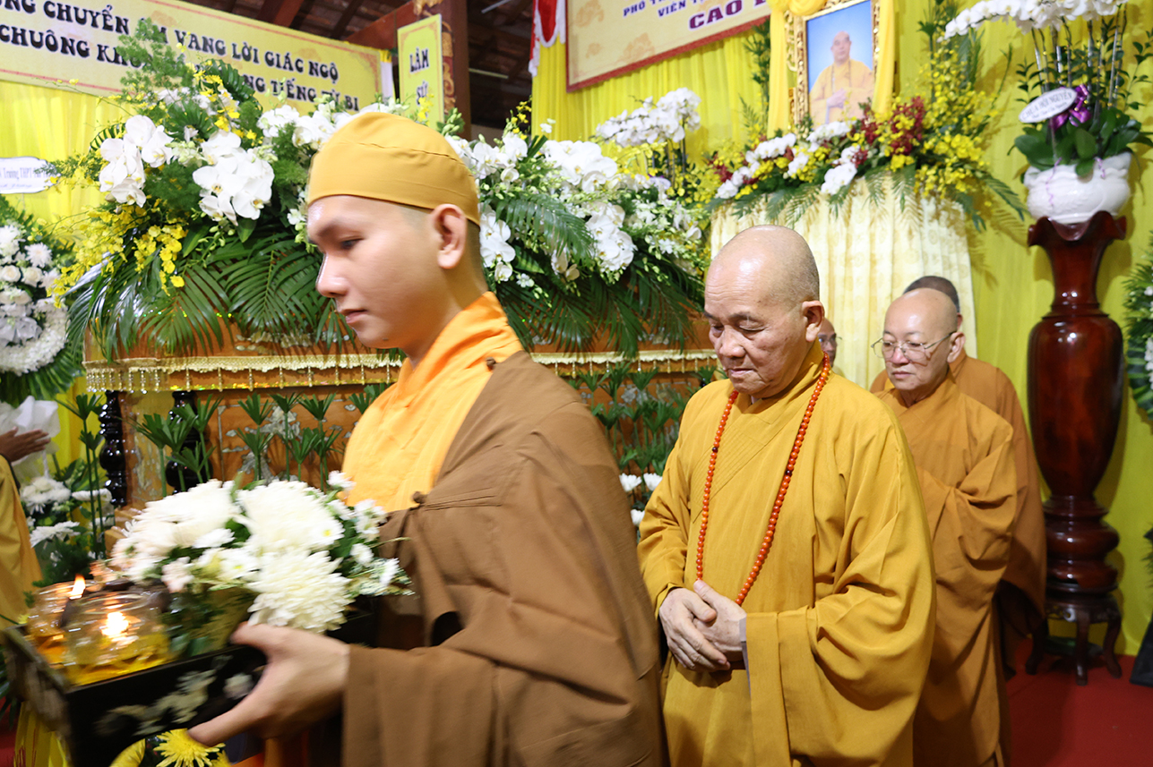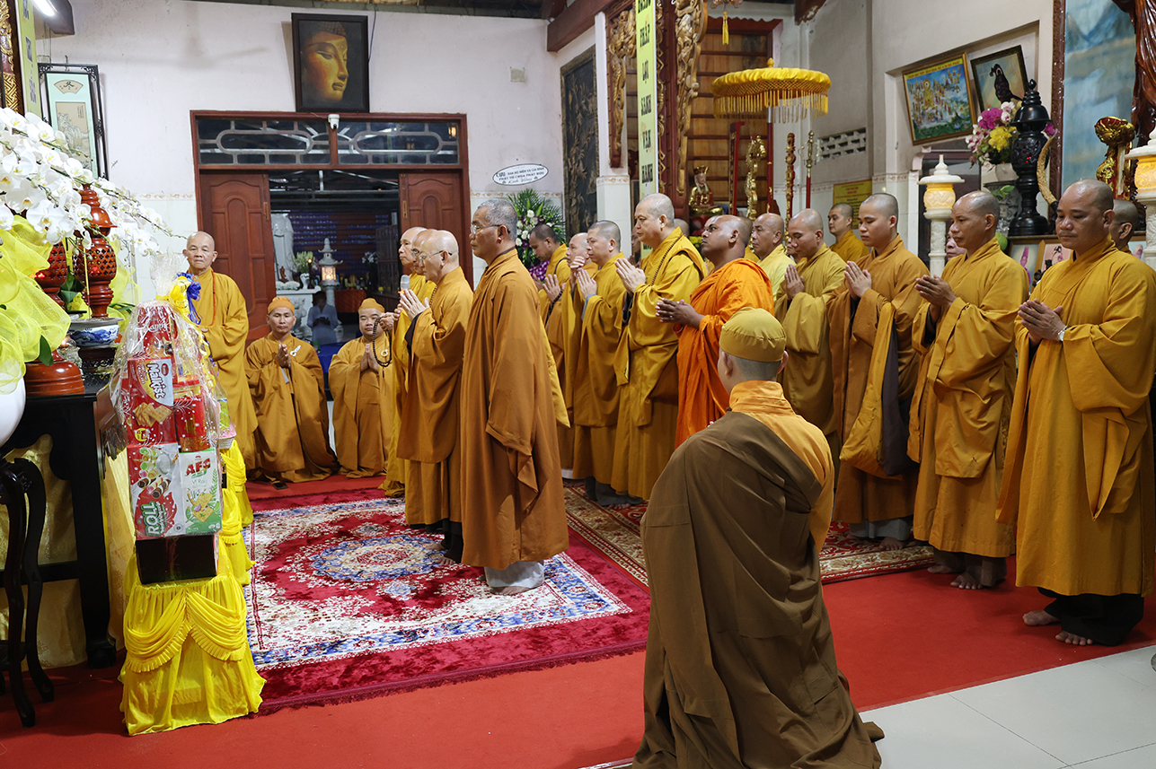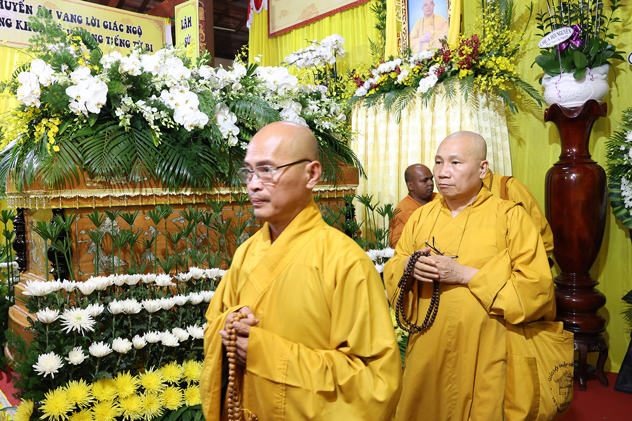 Đoàn do HT. Thích Minh Thiện – UV HĐTS, Phó Ban Hoằng pháp TƯ, Chứng minh, cố vấn BTS GHPGVN tỉnh Tây Ninh làm Trưởng phái đoàn; TT. Thích Quảng Tâm – UV HĐTS, Phó Ban Từ thiện xã hội TƯ, Trưởng BTS GHPGVN tỉnh; TT. Thích Minh Thọ – UV HĐTS, Phó BTS kiêm Trưởng Ban Pháp chế GHPGVN tỉnh; TT. Thích Lệ Trí – UV HĐTS, Phó BTS kiêm Trưởng Ban Giáo dục Phật giáo GHPGVN tỉnh; TT. Thích Đức Hoàng – Phó BTS GHPGVN tỉnh; Chư Tôn đức Ban Thường trực BTS GHPGVN tỉnh Tây Ninh đồng quang lâm lễ viếng.