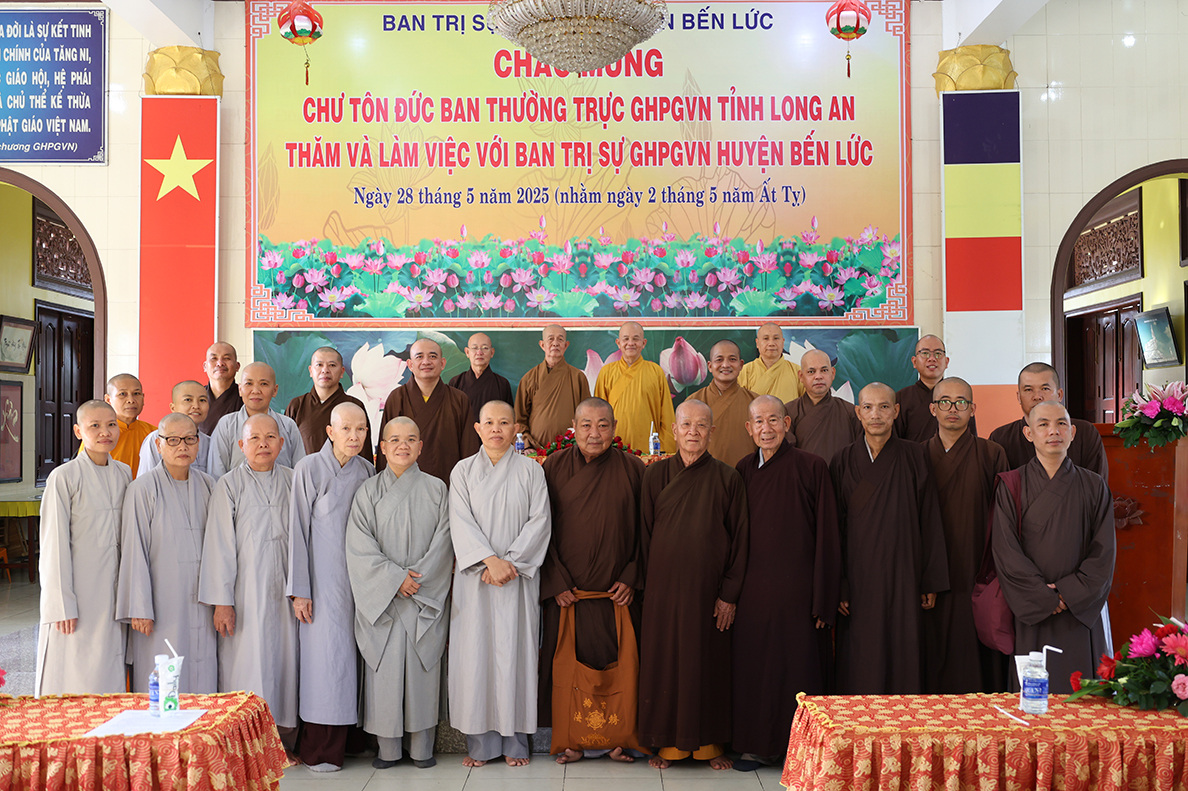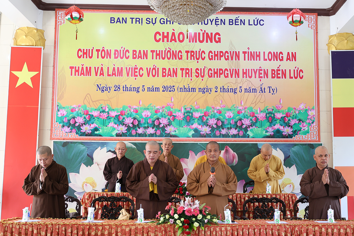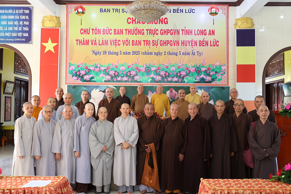 Chiều ngày 28/5/2025 (nhằm ngày 02/5/Ất Tỵ), đoàn công tác Ban Thường trực BTS GHPGVN tỉnh Long An do HT. Thích Minh Thiện – UV HĐTS, Phó ban Hoằng pháp TƯ, Trưởng BTS GHPGVN tỉnh đã có chuyến thăm và làm việc với BTS GHPGVN huyện Bến Lức tại Văn phòng BTS GHPGVN huyện – chùa Phước Bảo, xã Thạnh Đức, huyện Bến Lức, tỉnh Long An.