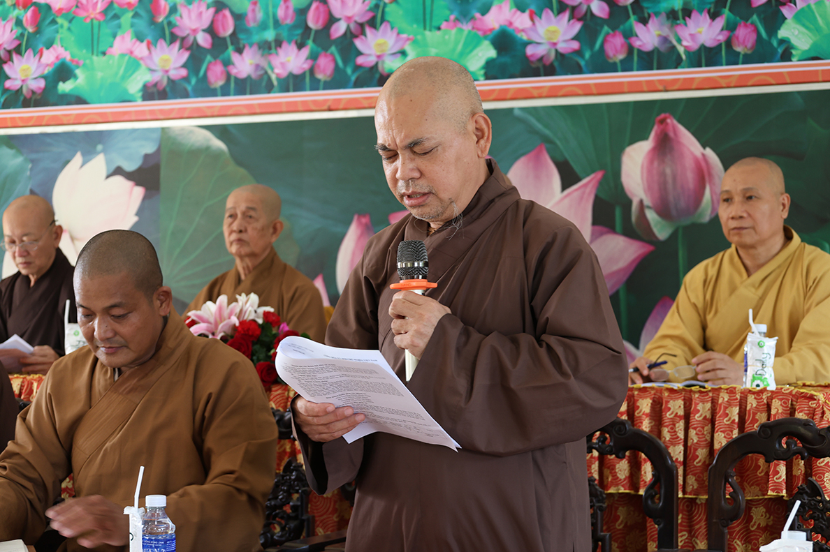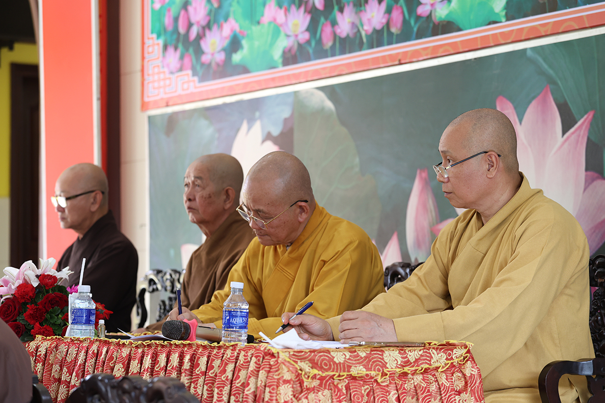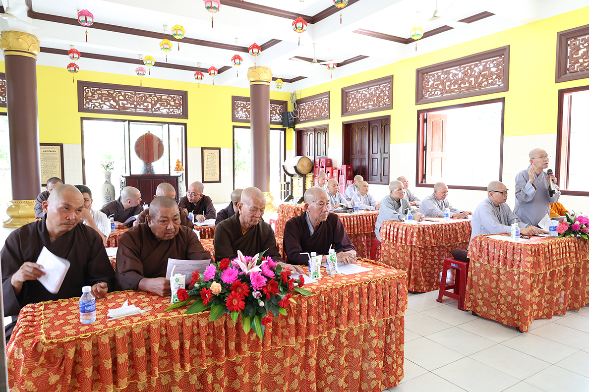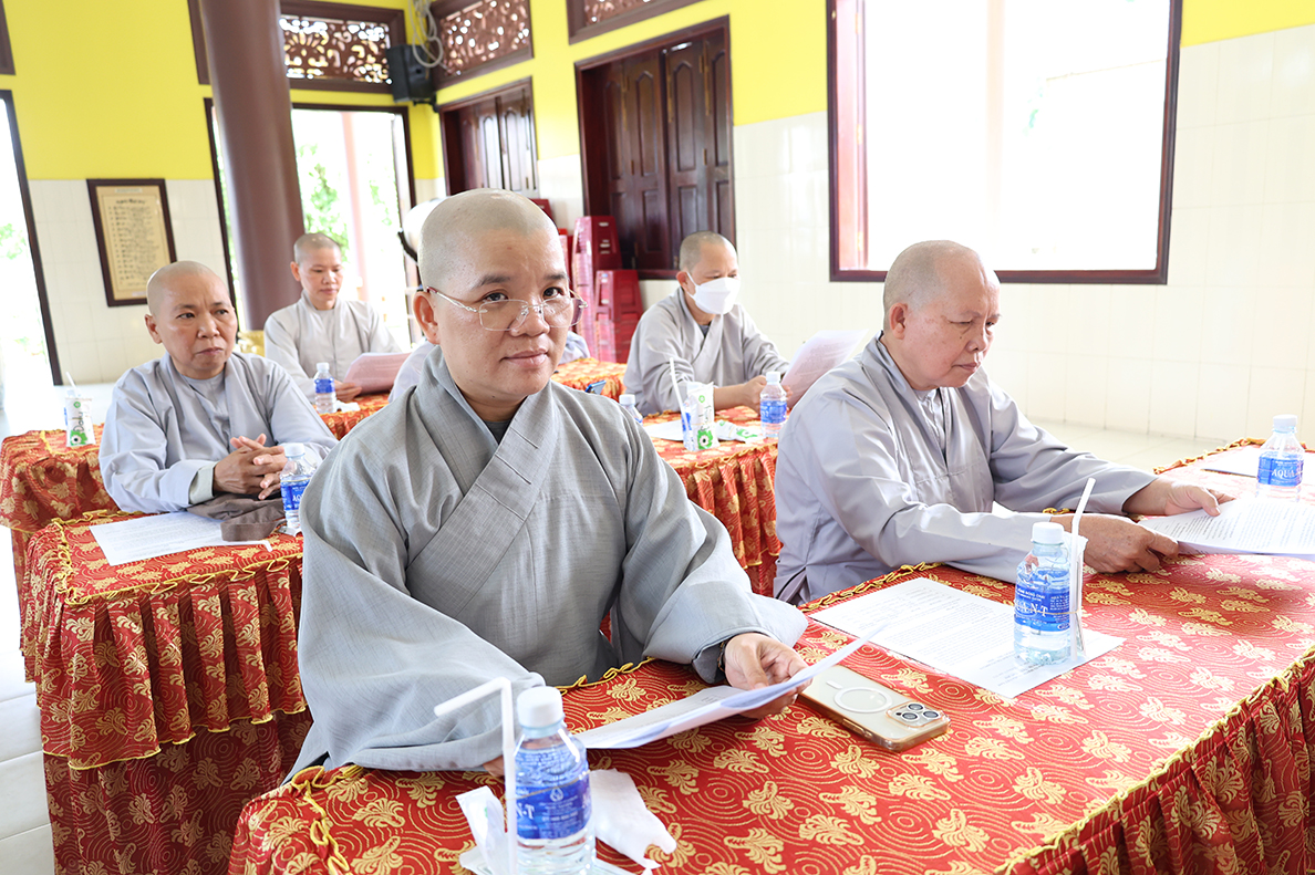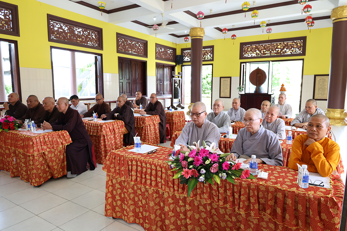 HT. Thích Minh Thiện – Trưởng BTS GHPGVN tỉnh Long An có lời đạo từ tại phiên làm việc. Hòa thượng nhấn mạnh trong giai đoạn hiện nay, việc quản lý và điều hành các tự viện cần ngày càng đi vào nề nếp, quy củ và hiệu quả hơn, từ đó từng bước hướng đến mô hình hành chính Phật giáo mới, phù hợp với sự thay đổi của các cấp hành chính trong xã hội. Bên cạnh đó, Hòa thượng cũng đặc biệt lưu tâm đến vấn đề hành chính điện tử, đề nghị Chư Tôn đức cần chủ động tiếp cận, ứng dụng công nghệ thông tin trong công tác quản lý, lưu trữ, xử lý thủ tục hành chính nhằm nâng cao hiệu suất công việc và đáp ứng yêu cầu thời đại. Sau cùng, Hòa thượng mong muốn Chư Tôn đức tiếp tục phát huy tinh thần đoàn kết, hoàn thành tốt các Phật sự còn lại trong nhiệm kỳ, tạo tiền đề thuận lợi cho định hướng phát triển Phật giáo thời đại mới.