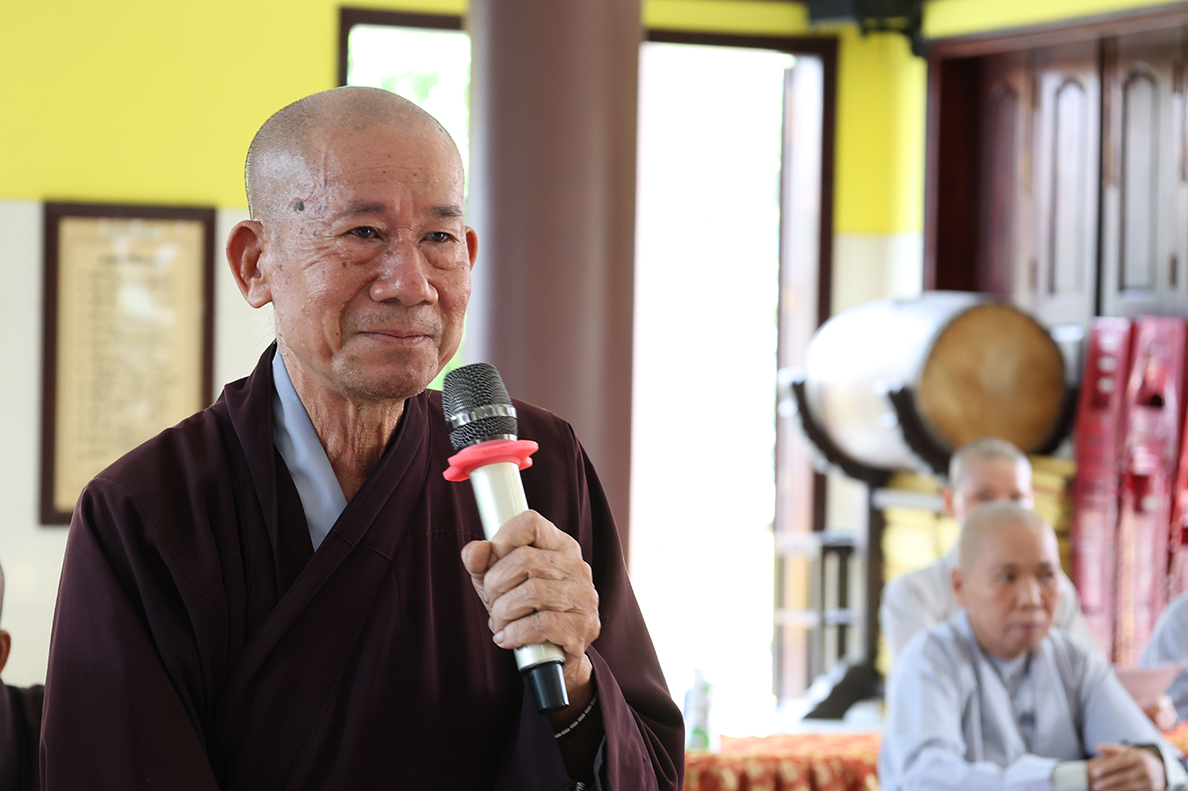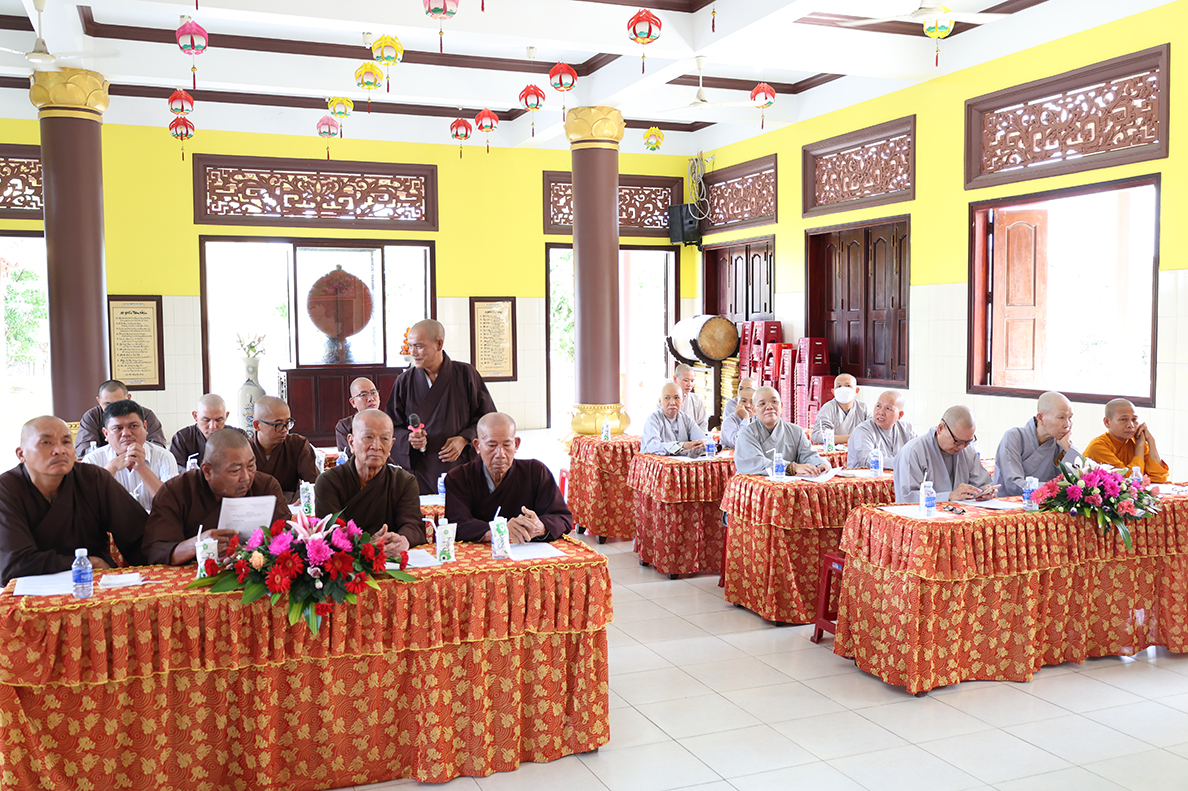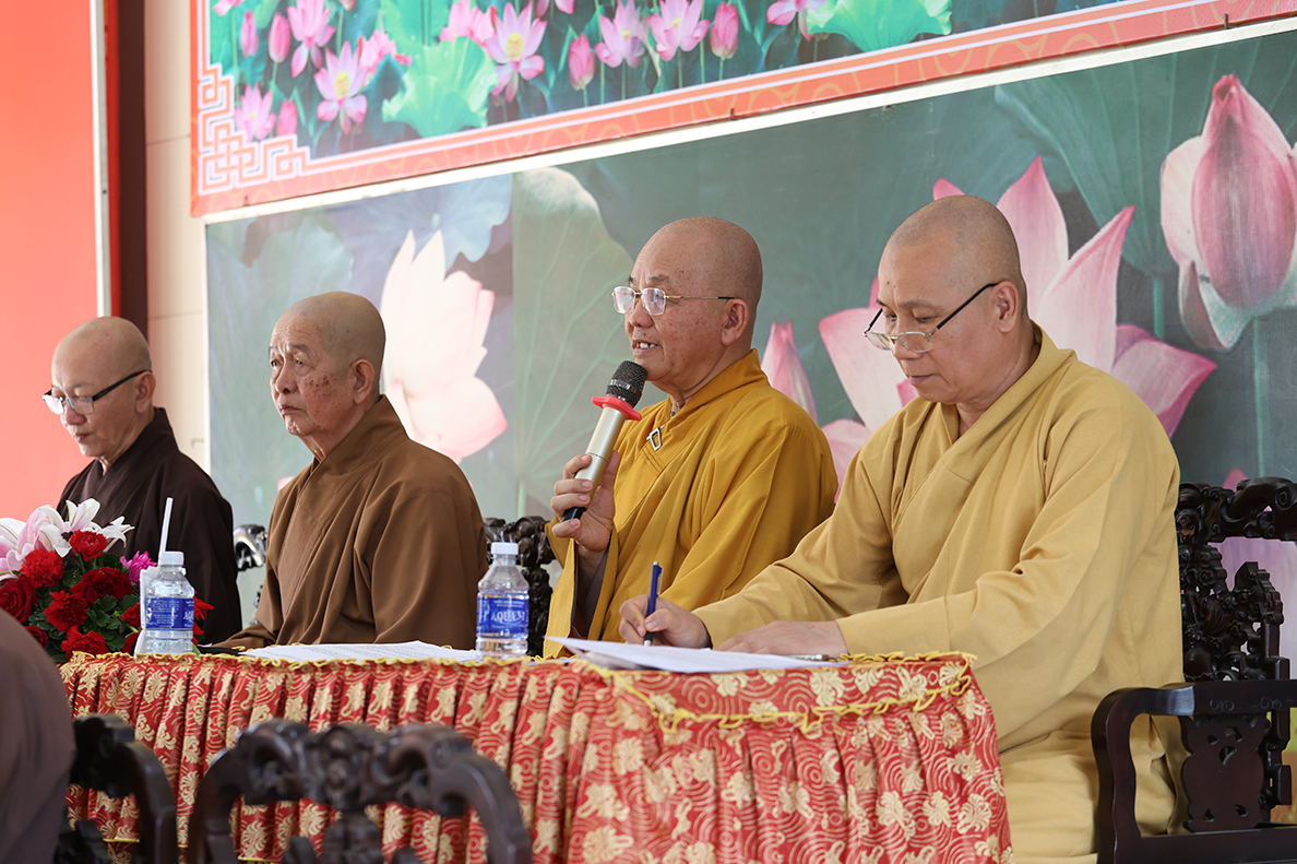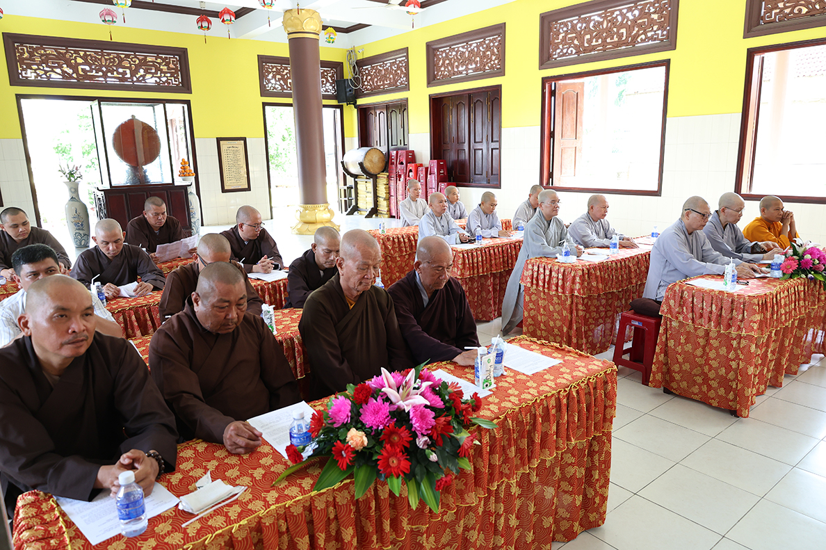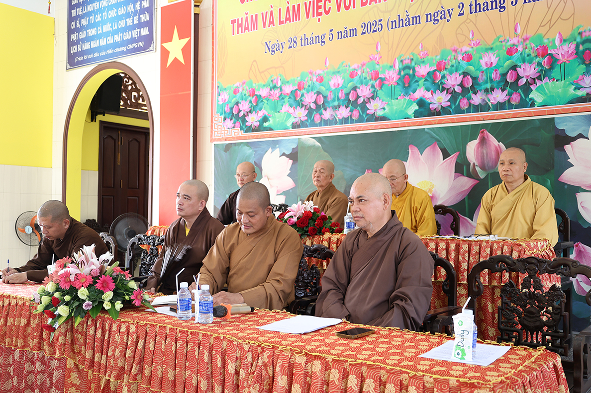 HT. Thích Minh Thiện – Trưởng BTS GHPGVN tỉnh Long An có lời đạo từ tại phiên làm việc. Hòa thượng nhấn mạnh trong giai đoạn hiện nay, việc quản lý và điều hành các tự viện cần ngày càng đi vào nề nếp, quy củ và hiệu quả hơn, từ đó từng bước hướng đến mô hình hành chính Phật giáo mới, phù hợp với sự thay đổi của các cấp hành chính trong xã hội. Bên cạnh đó, Hòa thượng cũng đặc biệt lưu tâm đến vấn đề hành chính điện tử, đề nghị Chư Tôn đức cần chủ động tiếp cận, ứng dụng công nghệ thông tin trong công tác quản lý, lưu trữ, xử lý thủ tục hành chính nhằm nâng cao hiệu suất công việc và đáp ứng yêu cầu thời đại. Sau cùng, Hòa thượng mong muốn Chư Tôn đức tiếp tục phát huy tinh thần đoàn kết, hoàn thành tốt các Phật sự còn lại trong nhiệm kỳ, tạo tiền đề thuận lợi cho định hướng phát triển Phật giáo thời đại mới.
