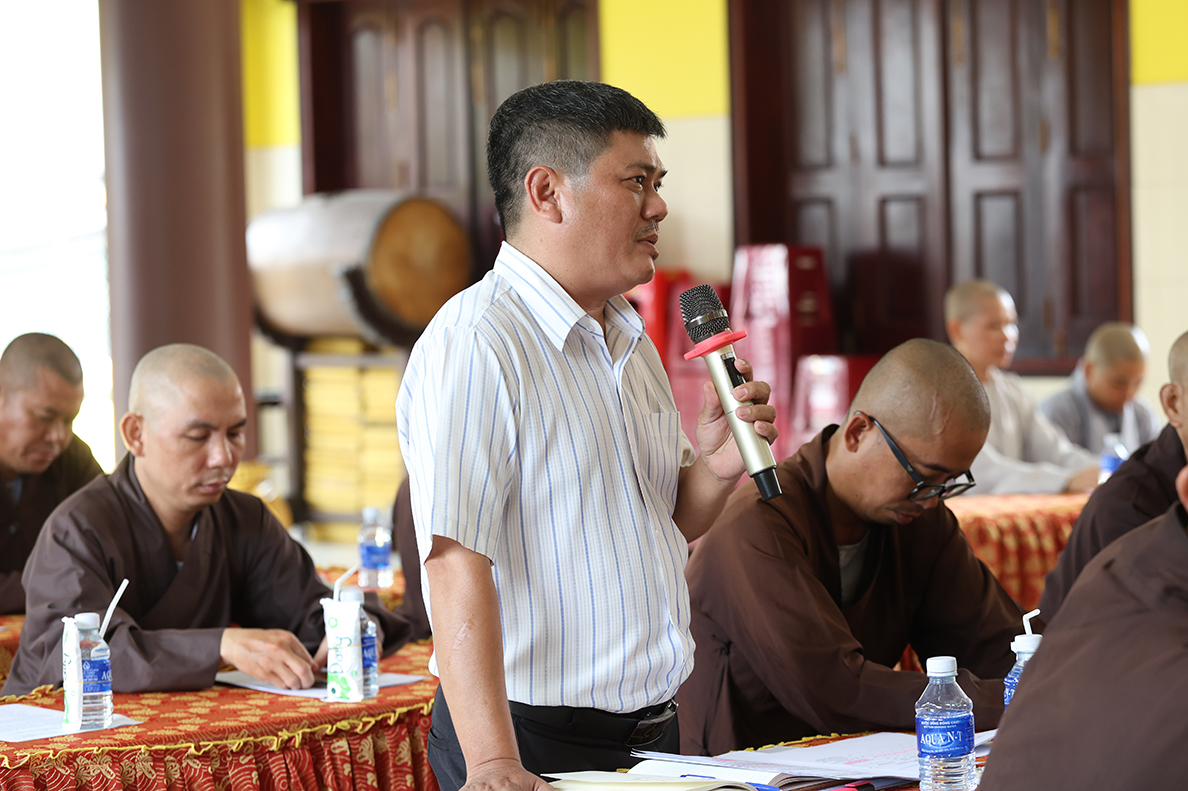 Tiếp đó, TT. Thích Quảng Tâm – Phó Trưởng Ban Thường trực BTS GHPGVN tỉnh đã khái quát lại tình hình Phật sự, đúc kết các ý kiến phát biểu, giải trình và có lời phát biểu chỉ đạo, định hướng một số Phật sự trọng tâm của tỉnh nhà trong thời gian tới.