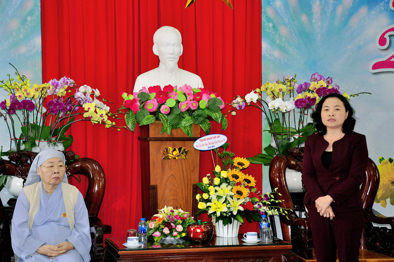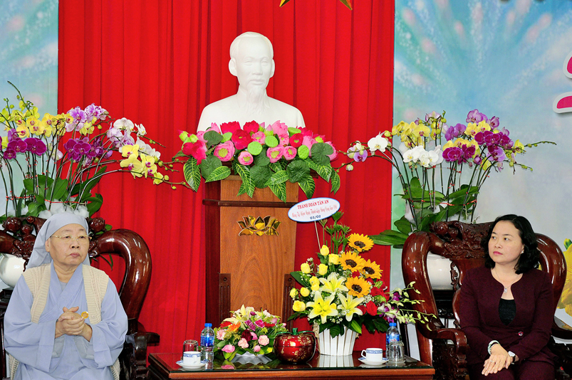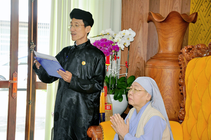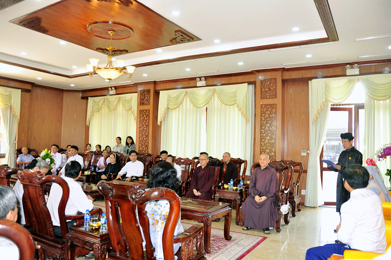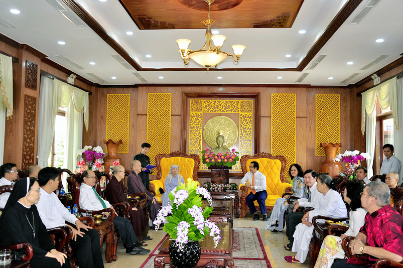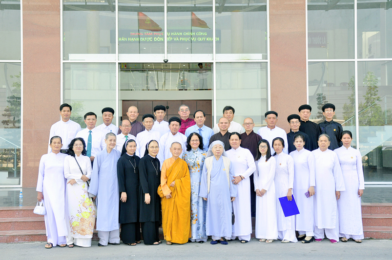 Đoàn Phật giáo gồm 5 thành viên do HT. Thích Minh Thiện : Ủy viên Hội Đồng Trị Sự trung ương, Phó Ban Hoằng pháp trung ương GHPGVN, Trưởng Ban trị sự GHPGVN tỉnh Long An(trưởng đoàn Phật giáo); Ủy Ban đoàn kết Công Giáo tỉnh Long An Linh mục Trần Thanh Hùng; Ban đại diện Hội Thánh Tin Lành do Muc sư Ngô Văn Kiếm; Ban đại diện Hội thánh Cao Đài Tây Ninh giáo sư Thượng Đảnh Thanh; Ban đại diện Hội Thánh Cao Đài Tiên Thiên Giáo sư Thượng Phường Thanh; Ban đại diện Hội Thánh Cao Đài Chơn Lý, do Đầu Sư Huỳnh Thị Phúc đại diện; Ban Đại Diện Phật Giáo Hòa Hảo bà Huỳnh Thị Kim Chi đại diện; Ban trị sự Tịnh Độ Cư Sĩ Phó giảng sư Diệu Giác Hội trưởng Ban trị sư Phật hội Việt Nam; Đại diện Minh Lý đạo- Tam Tông Miếu; Dòng Mến Thánh Giá Tân An; Đại diện cộng đồng Người Hoa Tp. Tân An.