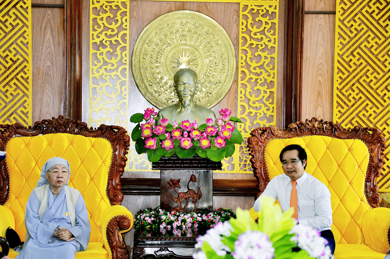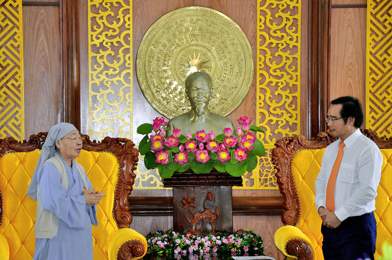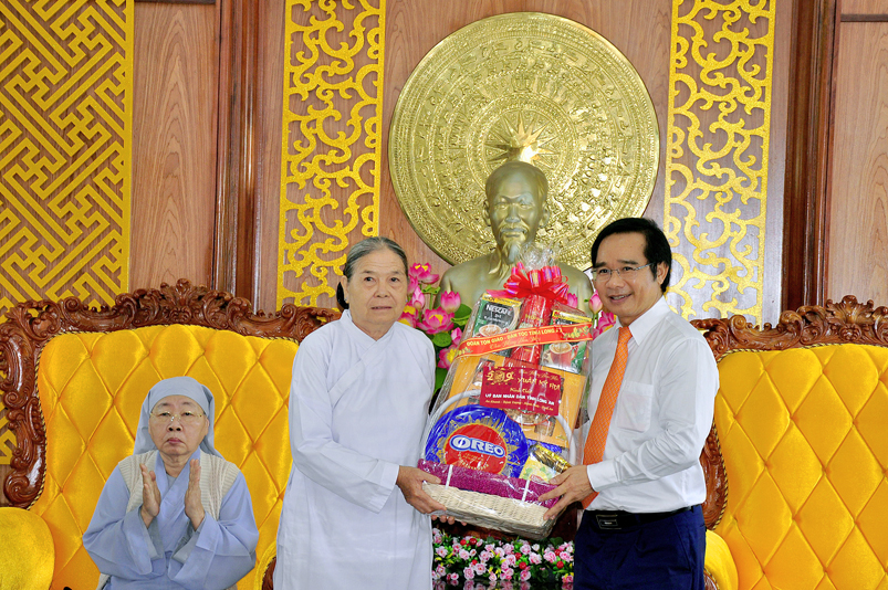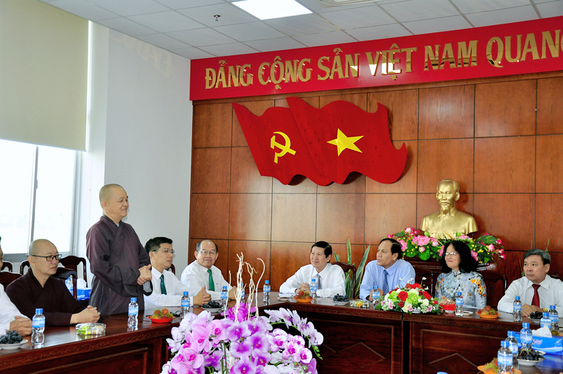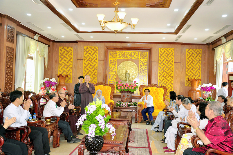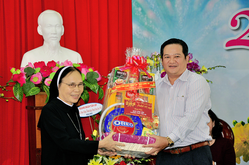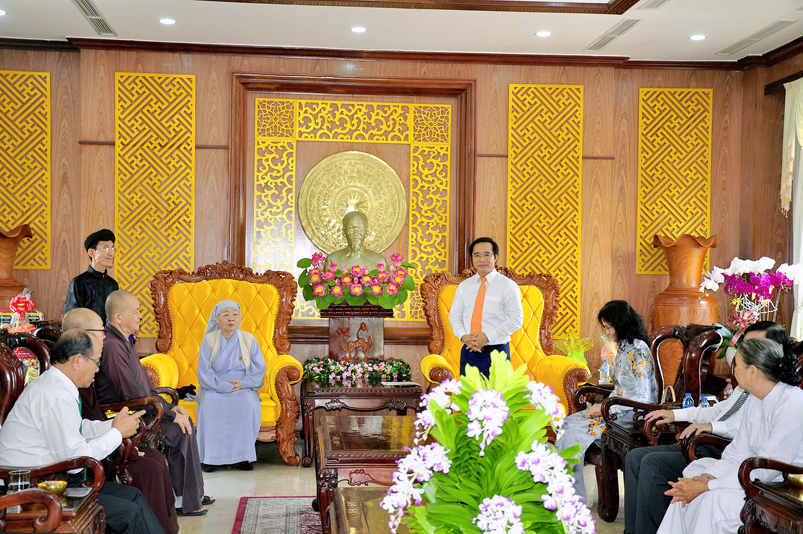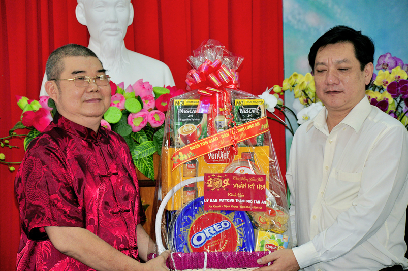 Đón tiếp đoàn có Ông Nguyễn Văn Được – Thường vụ tỉnh Uỷ, Phó Chủ tịch UBND tỉnh Long An; Bà Nguyễn Thị Ngọc Hạnh- Thường vụ Tỉnh Uỷ, Trưởng ban Dân vận MTTQ tỉnh Long An; Ông Đỗ Thanh Hùng- Phó Chủ tịch UBMTTQ Việt Nam tỉnh Long An; Ông Nguyễn Văn Mưng- Phó Ban Tôn giáo tỉnh Long An.Bà Nguyễn Thị Tố Trinh- Phó Bí thư Tp. Tân An.