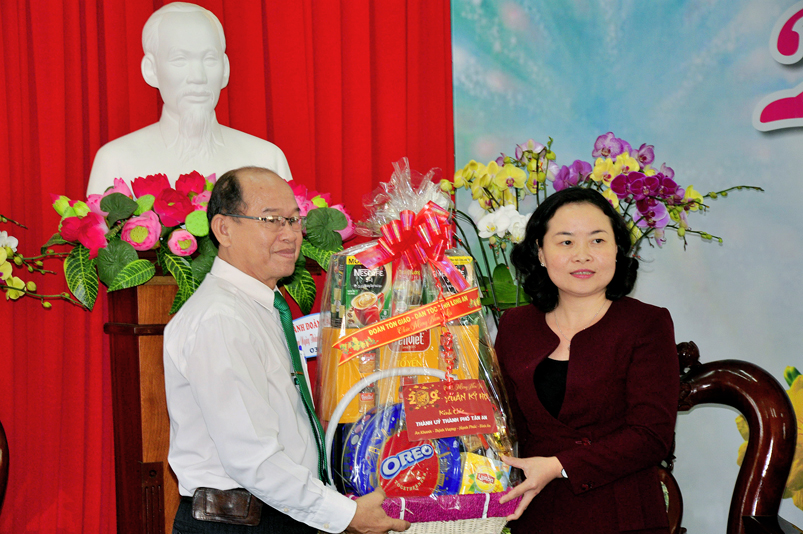 Quý vị lãnh đạo các tôn giáo trong phái đoàn bày tỏ sự vui mừng, trước những kết quả trong năm 2018. Nhân dịp Tết Nguyên đán, đoàn chúc các quý lãnh đạo tỉnh Tp. Tân An đón một năm mới hạnh phúc, an lành, tiếp tục lãnh đạo, chỉ đạo cán bộ, đảng viên và nhân dân trong tỉnh thực hiện thắng lợi các nhiệm vụ phát triển KT-XH năm 2019 và những năm tiếp theo./.