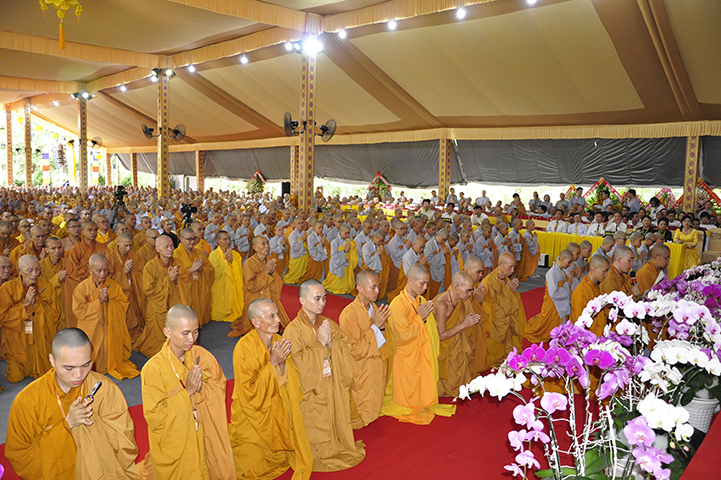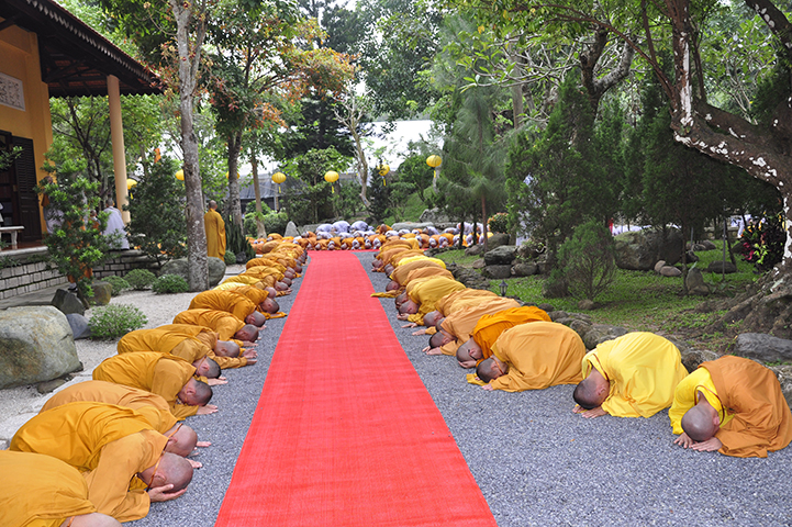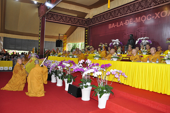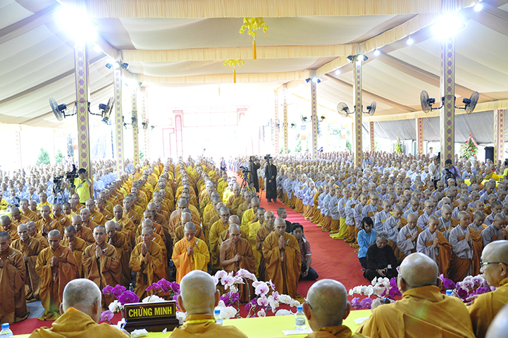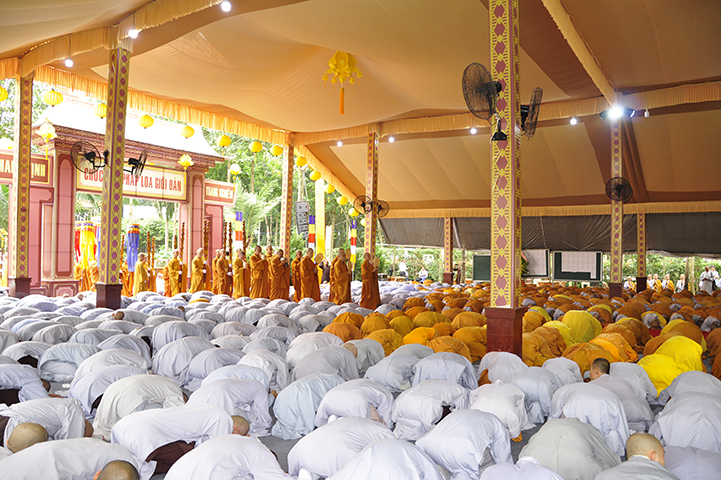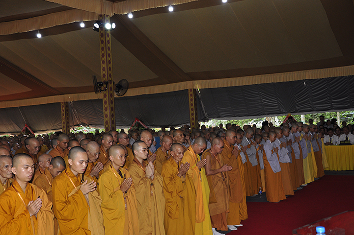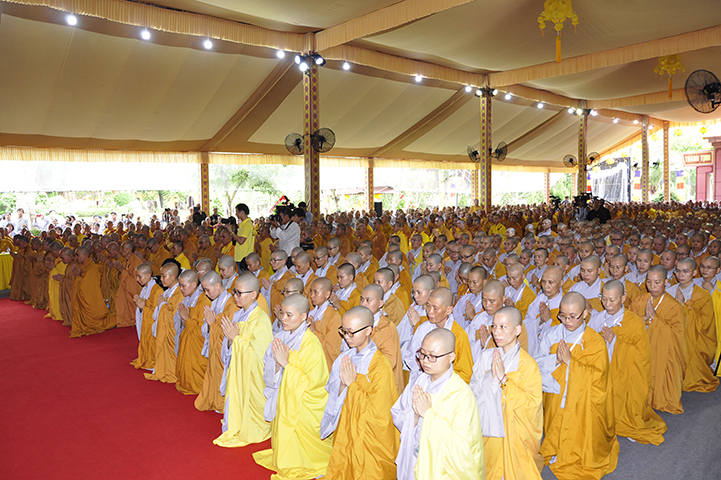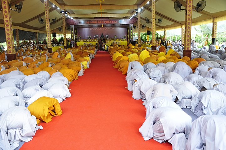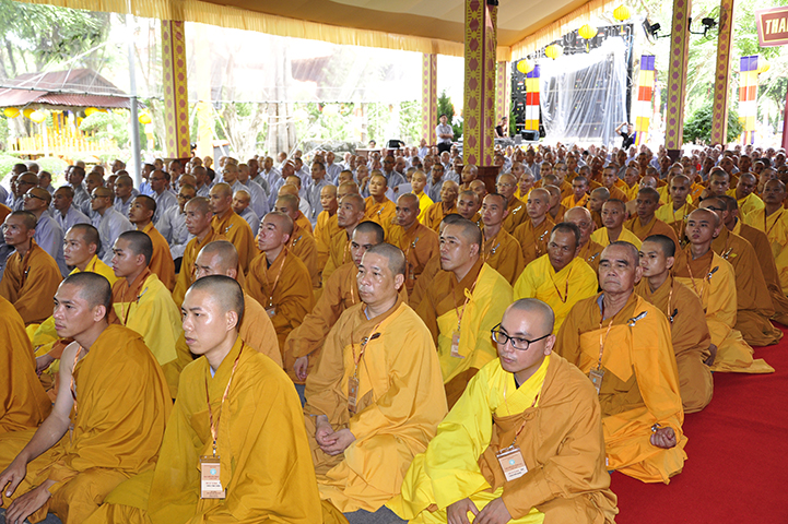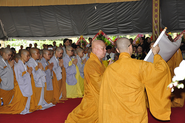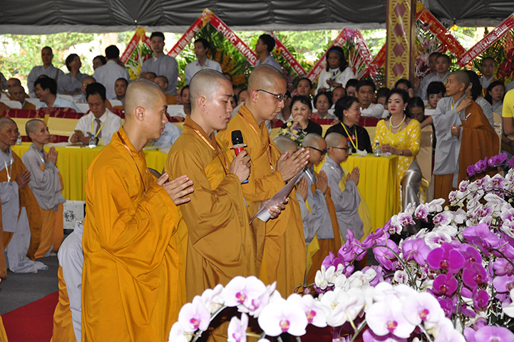 Đại diện cho 2.636 giới tử cầu giới, giới tử Tâm Thiện Đạo đối trước chư tôn đức đầu thành đảnh lễ thỉnh an và bày tỏ tấm lòng tri ân sâu sắc đến với chư tôn đức Đại Tăng và phát nguyện: “Chúng con xin phát nguyện, sau khi lãnh thọ giới pháp, từ chư tôn đức Giới sư truyền trao, mỗi Tăng Ni giới tử chúng con sẽ nghiêm trì các giới đã thọ, tinh cần trong tu học, thành tựu giới thể, không vi phạm các học giới, không để các dục vọng trói buộc, quyết tâm đoạn trừ những ác pháp, thành tựu các thiện pháp để trưởng dưỡng đạo tâm. Đồng thời chúng con luôn xem giới luật là thước đo Tăng phong, phẩm hạnh và đạo lực trên lộ trình tiến tu giải thoát, làm lợi mình lợi người, hoàn thành trách nhiệm, bổn phận của người tu sĩ đối với Giáo hội và người công dân đối với đất nước”.
