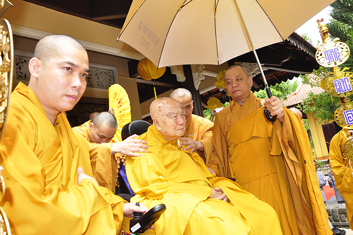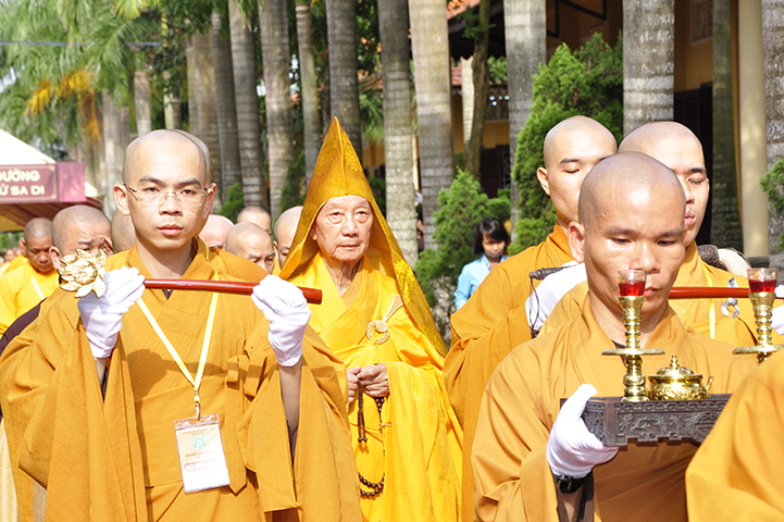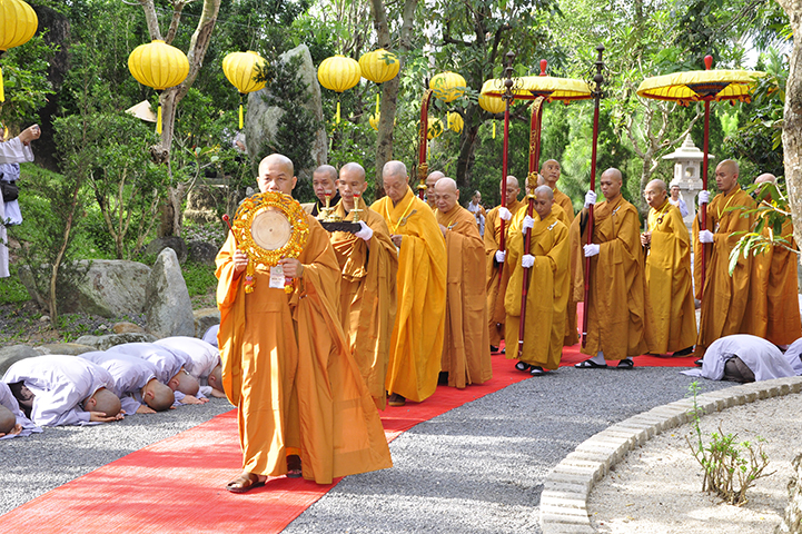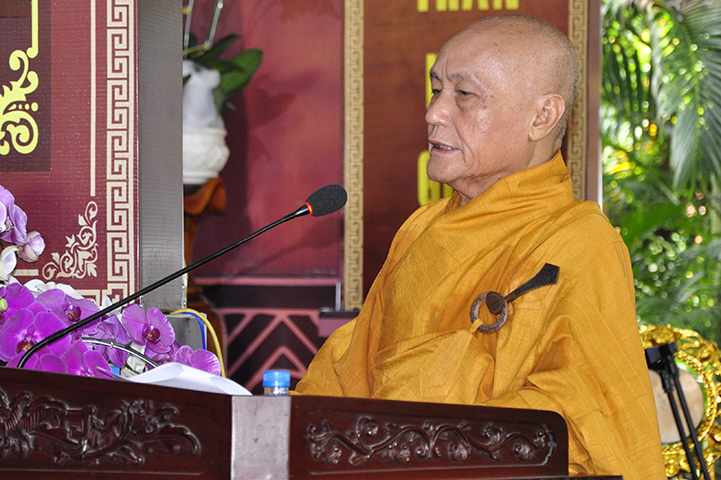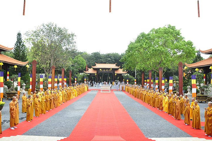 Thay mặt cho chư tôn đức chứng minh, Hòa thượng Phó Pháp chủ HT.Thích Trí Quảng đã ban đạo từ cho buổi lễ. Hòa thượng đã hồi tưởng lại những năm tháng khó khăn của Phật giáo miền Nam: Tổ Khánh Hòa là người có công lao lớn cho việc xây chùa, mở trường đào tạo Tăng Ni. Một trong những người học trò xuất sắc của Tổ Khánh Hòa là cố HT.Thích Thiện Hoa, người có công trong đào tạo Tăng tài, tiếp Tăng độ chúng. Một trong những người học trò ưu tú của cố Hòa thượng Viện trưởng Viện Hóa đạo Thích Thiện Hoa là HT.Thích Thanh Từ, Tông chủ của thiền phái Trúc Lâm hiện nay, đây chính là một điều đặc biệt.