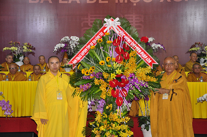 Nhiều lẵng hoa và quà, được gởi đến chúc mừng BTS GHPGVN tỉnh và thiền phái Trúc Lâm, nhân ngày khai mạc Đại giới đàn Pháp Loa hôm nay.