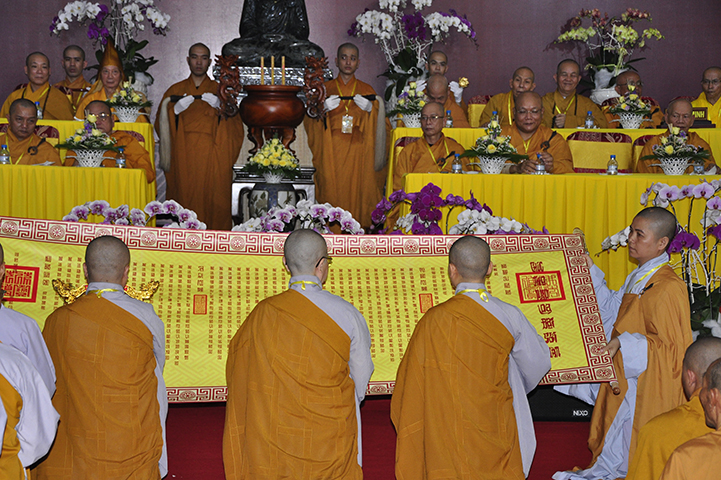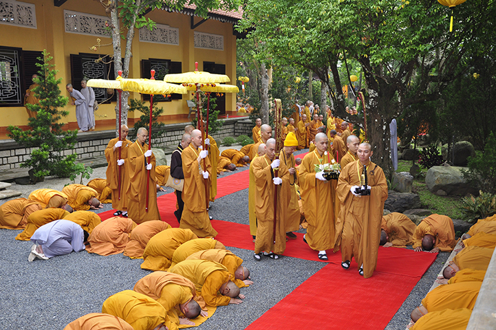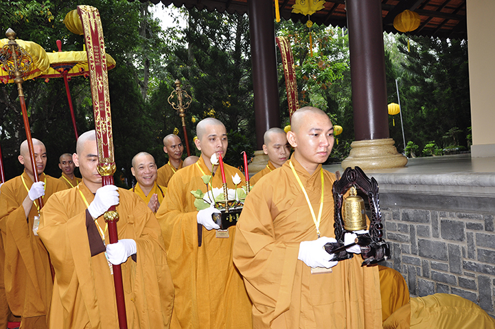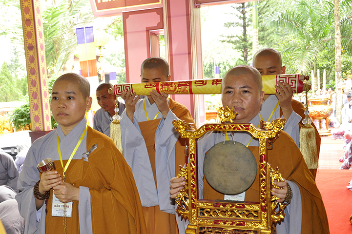 NS.Thích nữ Như Dung đối trước Đại Tăng cung an chức sự, cung thỉnh Hội đồng Thập sư Ni. Đàn Tỳ-kheo-ni cung thỉnh NT.Thích nữ Như Châu đương vi Đường đầu Hòa thượng Ni; đàn Thức-xoa-ma-na cung thỉnh NT.Thích nữ Huệ Giác đương vị Đường đầu Hòa thượng Ni; đàn Sa-di-ni cung thỉnh NT.Thích nữ Huệ Hương đương vi Đường đầu Hòa thượng Ni.