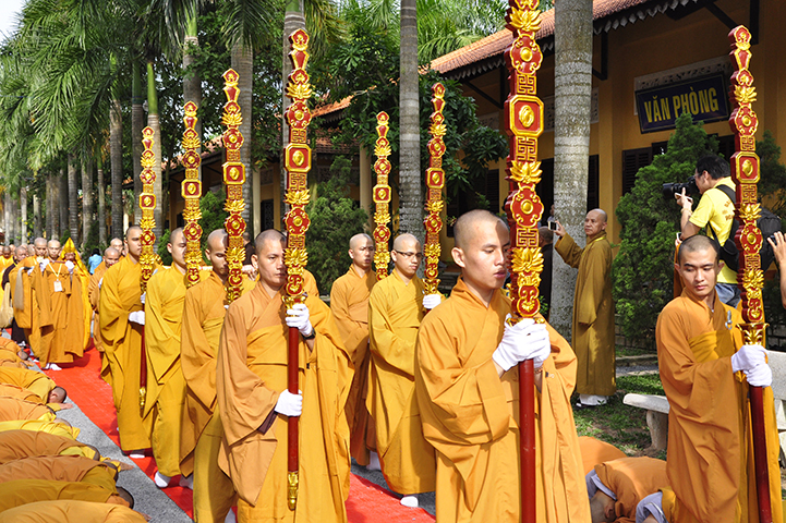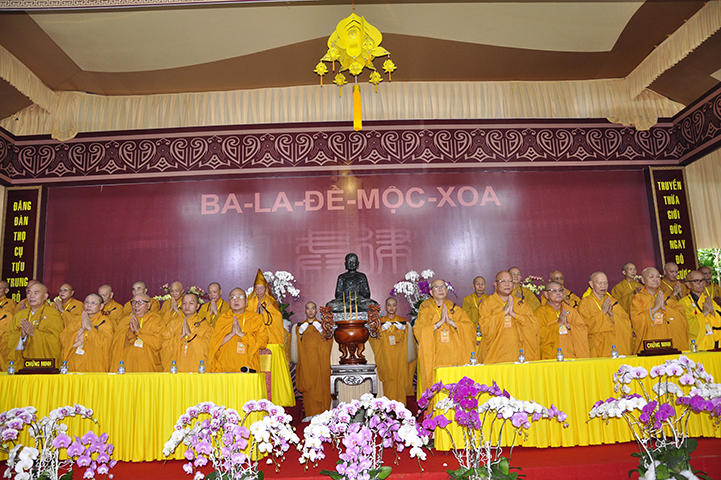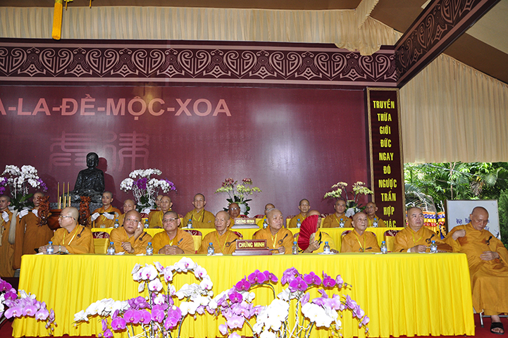 ại lễ khai mạc, TT.Thích Lệ Trang cung an chức sự cung thỉnh phương danh Hội đồng Thập sư Tăng. Theo đó, HT.Thích Nhật Quang được cung thỉnh đương vi Đường đầu Hòa thượng đàn Tỳ-kheo; HT.Thích Minh Thông Tuyên Luật sư, Yết-ma A-xà-lê; HT.Thích Giác Quang, Giáo thọ A-xà-lê; HT.Thích Liêm Chính được cung thỉnh đương vi Đường đầu Hòa thượng đàn Sa-di.