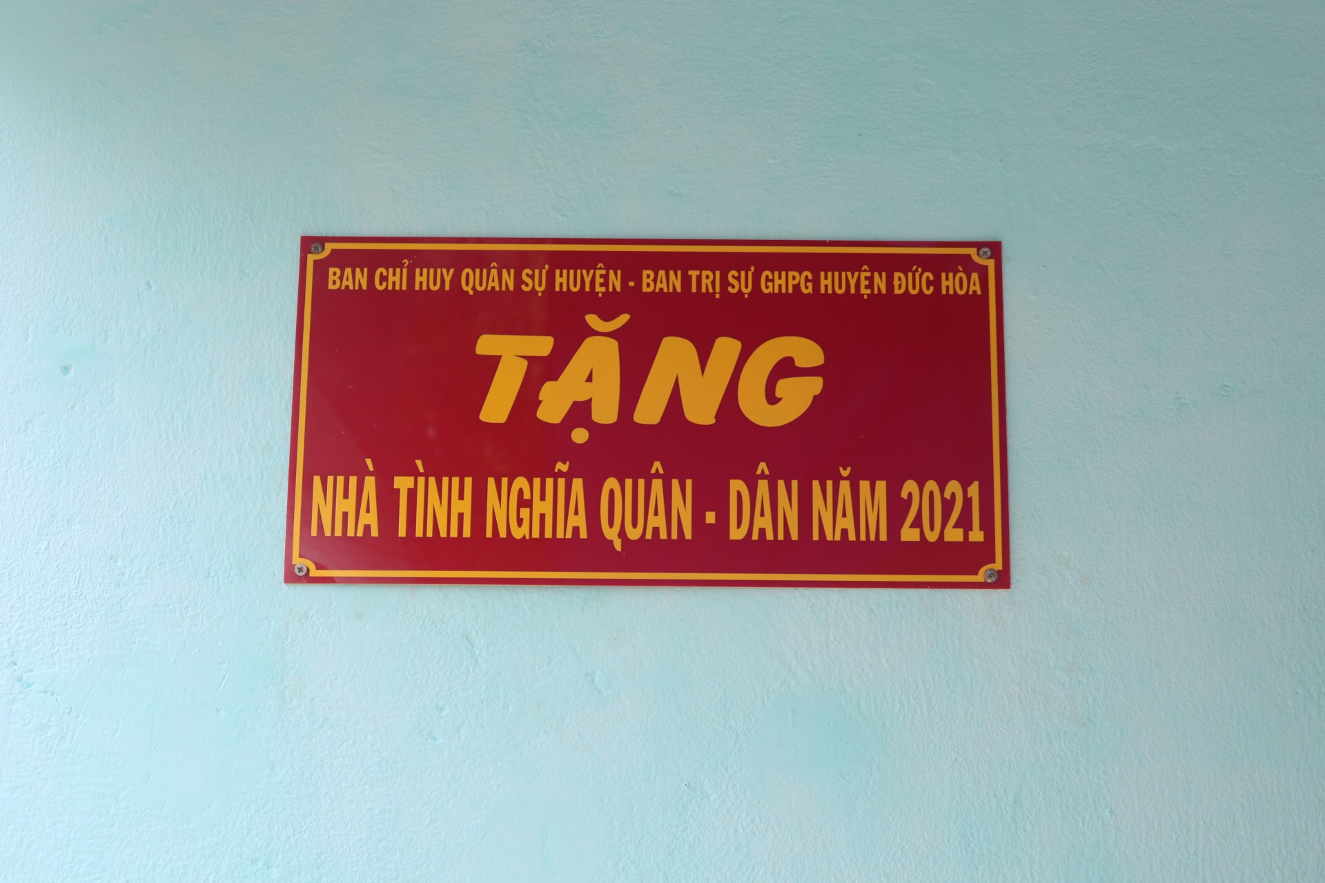 Căn nhà Tình Nghĩa Quân Dân năm 2021 tại ấp 1B, xã Hựu Thạnh do BTS GHPGVN huyện Đức Hòa vận động Chư Tôn Đức Tăng Ni ủng hộ với kinh phí là 80 triệu đồng trong hơn một tháng xây dựng đến nay đã được hoàn thiện.