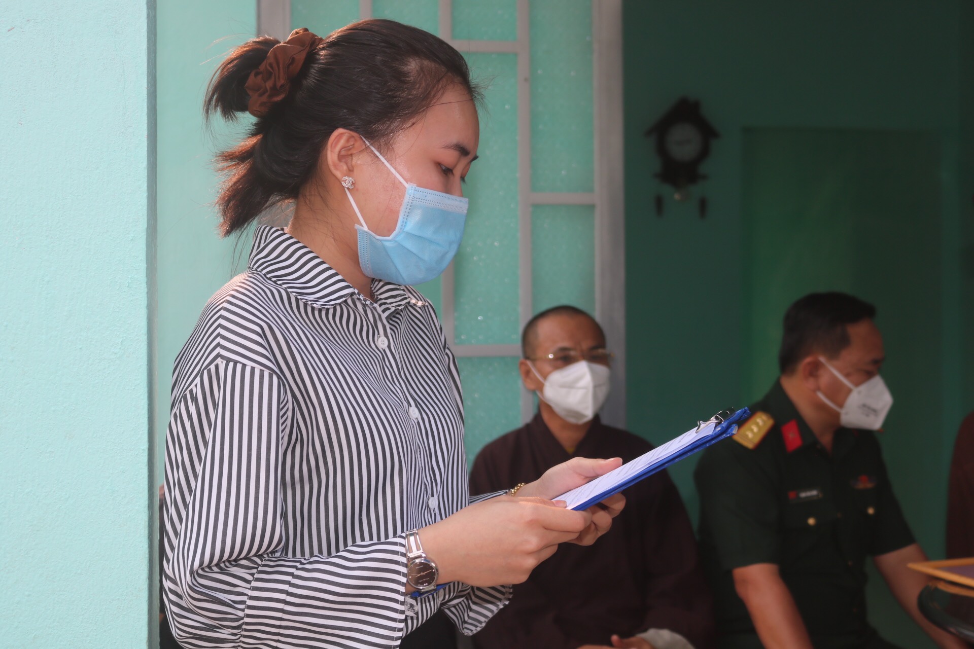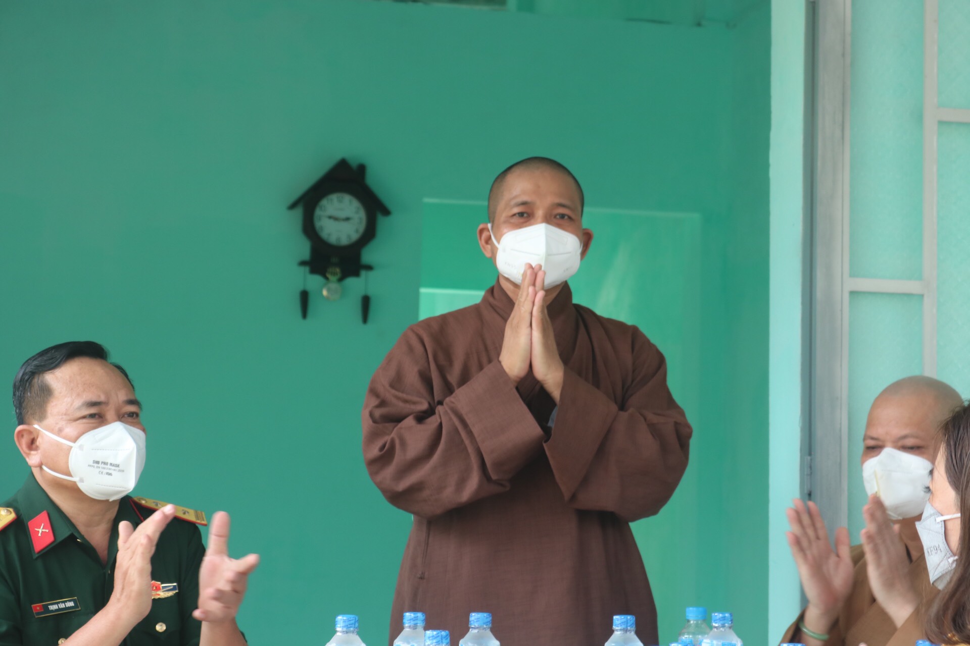 Đại đức Thích Lệ Duyên – Chánh Thư ký BTS GHPGVN tỉnh Long An, Trưởng Ban Trị sự GHPGVN huyện Đức Hòa đã đại diện Chư tôn đức trong Thường trực BTS huyện phát biểu chúc mừng và ghi nhận công đức của chư Tăng Ni đã đóng góp hỗ trợ căn nhà Tình thương được thành tựu tốt đẹp.
