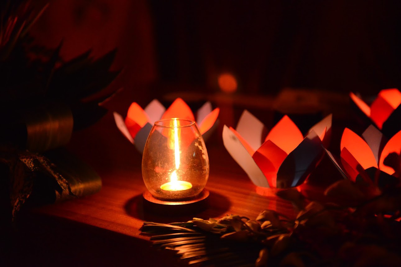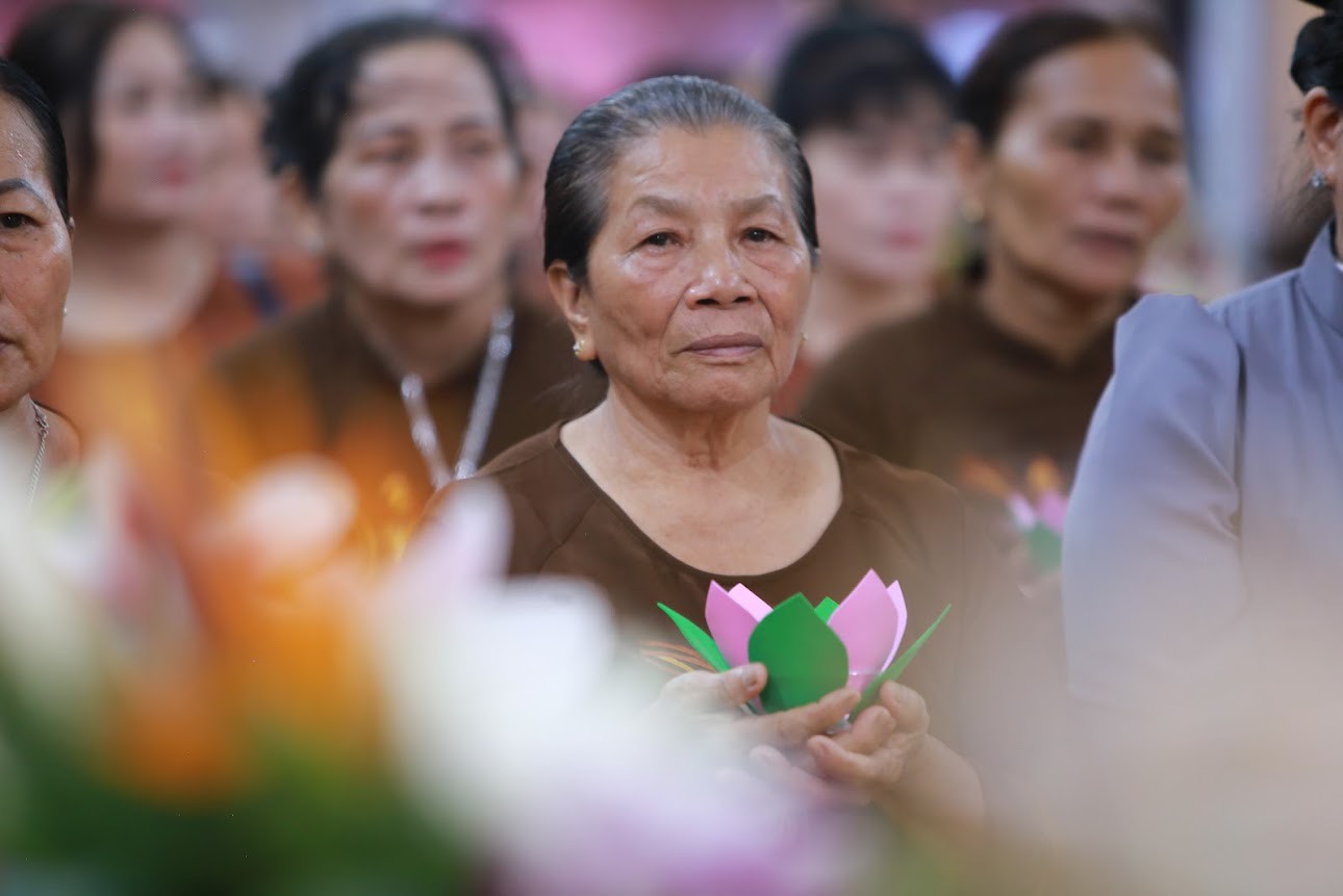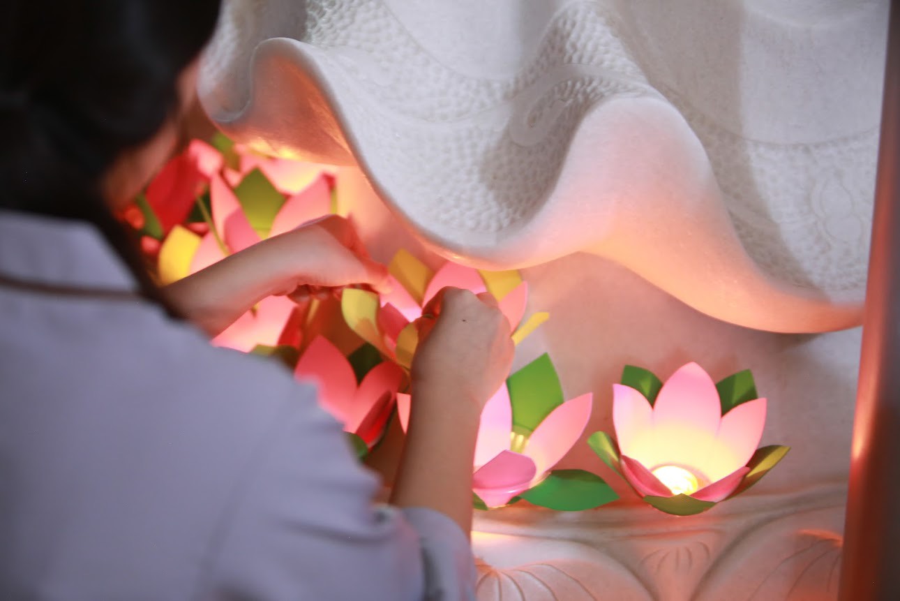 Nối tiếp buổi lễ là phần cài hoa hồng tưởng nhớ tứ ân và thắp đèn hoa đăng. Theo đó, đối với bậc xuất gia, quý Ngài là những người đã hy sinh cả cuộc đời mình cho đạo pháp, là những người lìa bỏ thế tục, thượng cầu giải thoát, hạ hóa chúng sinh, mong cầu giác ngộ, giải thoát, nên quý Ngài sẽ cài lên ngực áo của mình một bông hoa hồng màu vàng tượng trưng cho sự giải thoát, giác ngộ đó; những ai may mắn khi còn cả cha và mẹ trên đời sẽ được cài trên ngực áo của mình một bông hoa hồng màu đỏ, hoa hồng màu hồng dành cho những ai mất mẹ hoặc mất cha và bông hoa hồng màu trắng dành cho những ai kém may mắn hơn khi không còn có cha và mẹ hiện hữu trên cuộc đời này.