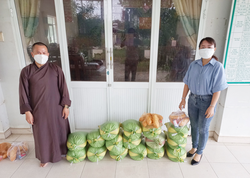 Thay mặt đoàn, Đại đức Thích Trí Huệ đã gởi lời thăm hỏi, động viên đến quý đồng bào bị cách ly và trao 50 phần quà, gồm 10 kg gạo, đường, bột nêm, bột ngọt và 300 ổ bánh mì. Trước đó, ngày 20/7/2021, Đại đức đã hỗ trợ tặng 100 kg gạo, 50 chai nước tương, 20 kg đường, 20 hủ chao và 2.000.000 đồng đến ban chỉ huy quân sự huyện đức hòa. Tổng trị giá cho các chuyến hỗ trợ mùa Covid-19 là 15.000.000 đ (mười lăm triệu đồng).