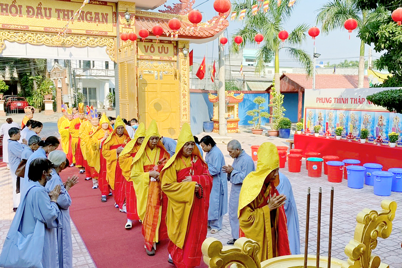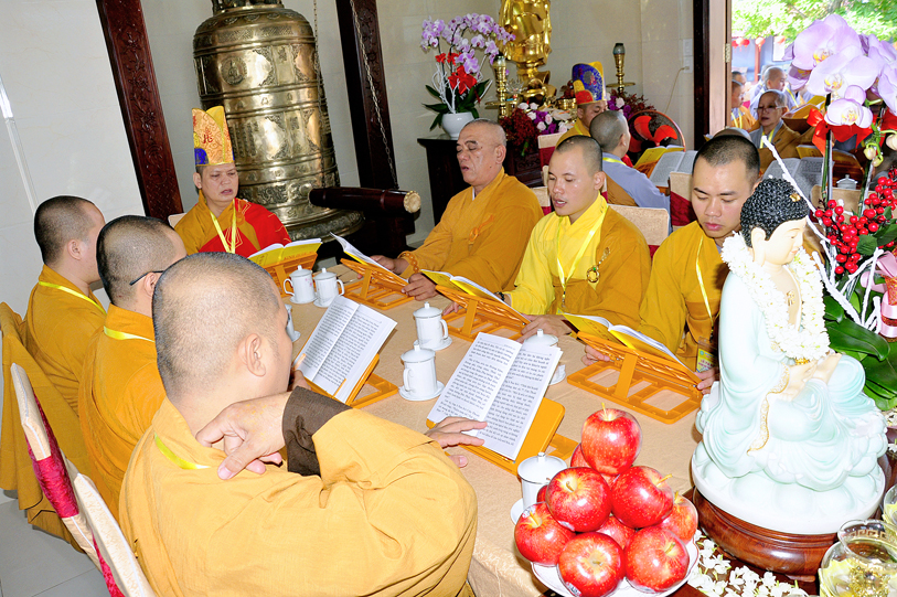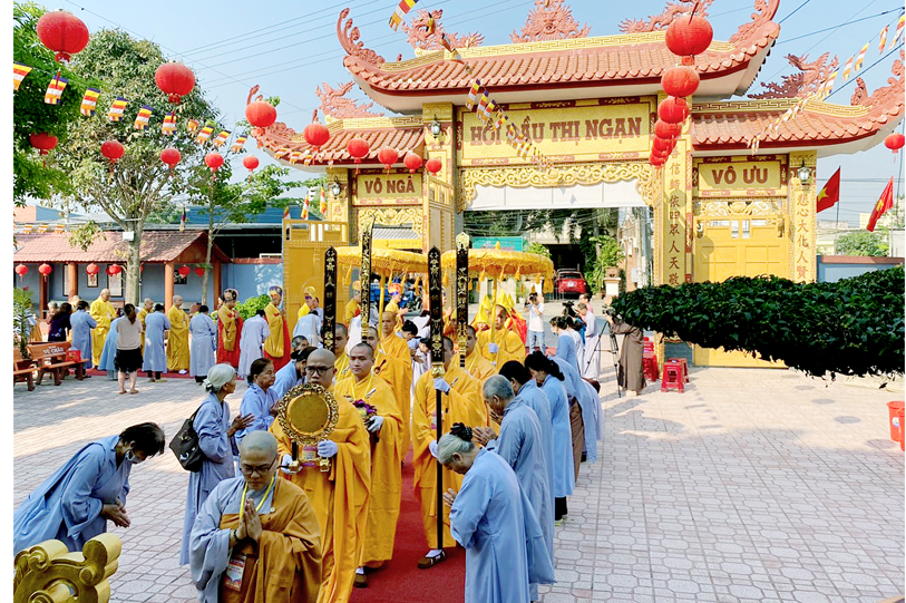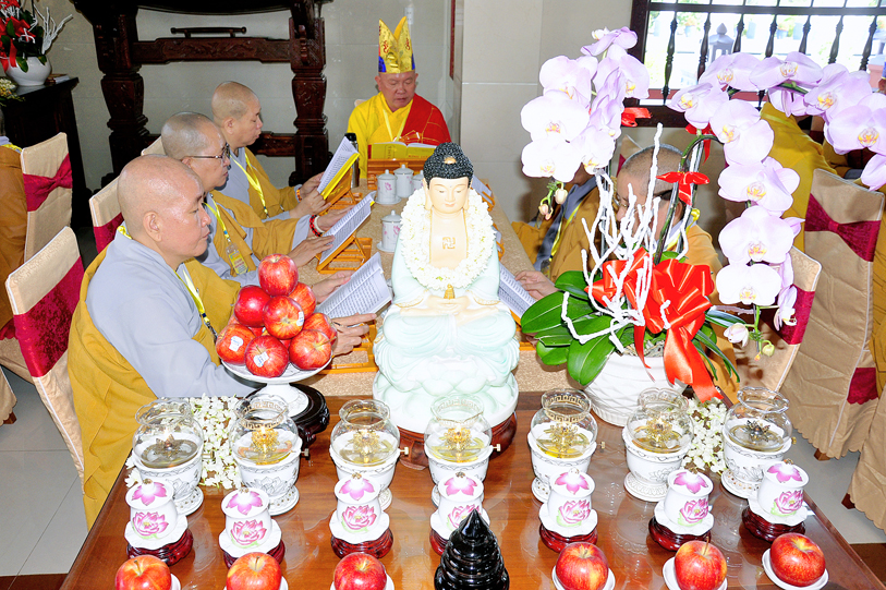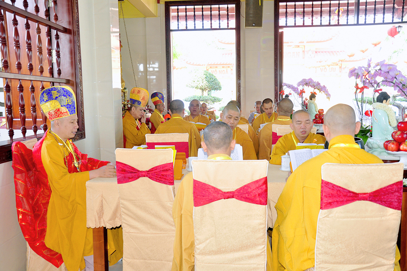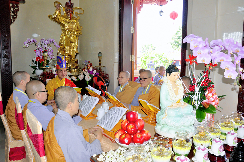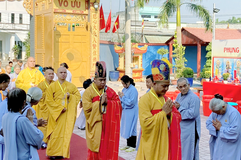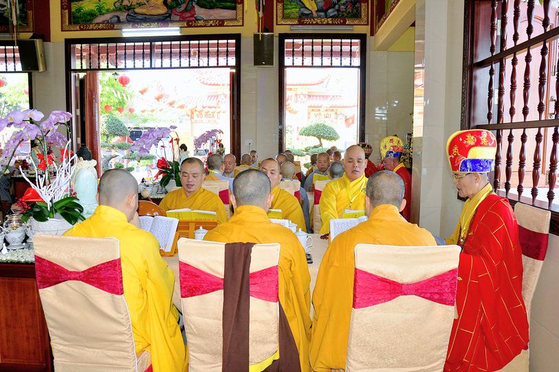 Vào lúc 7g30, chư Tôn đức Giáo phẩm Thường trực Ban Trị sự Phật giáo tỉnh Long An, chư Tôn đức Thường trực Ban Trị sự huyện Đức Hòa, Liên huyện Tân Thạnh- Kiến Tường, huyện Thủ Thừa v.v. đồng quang lâm đạo tràng.