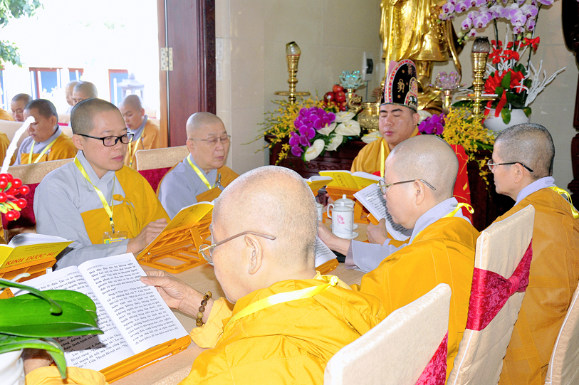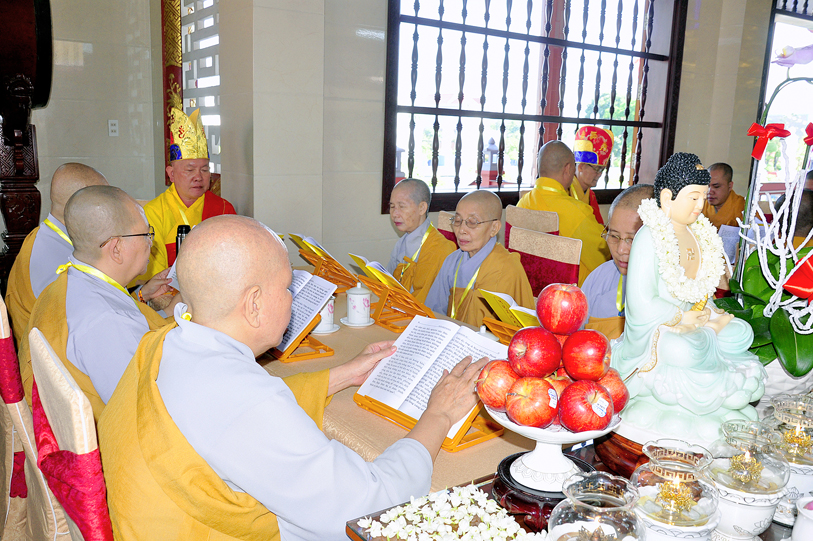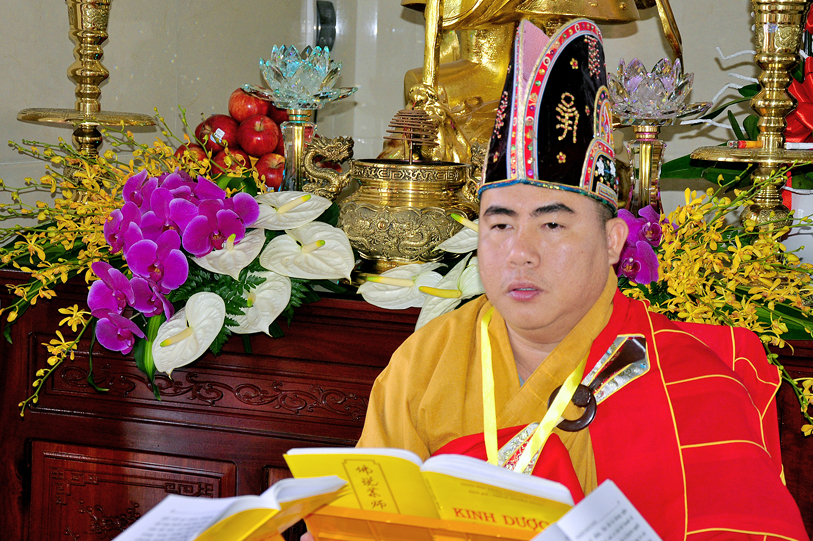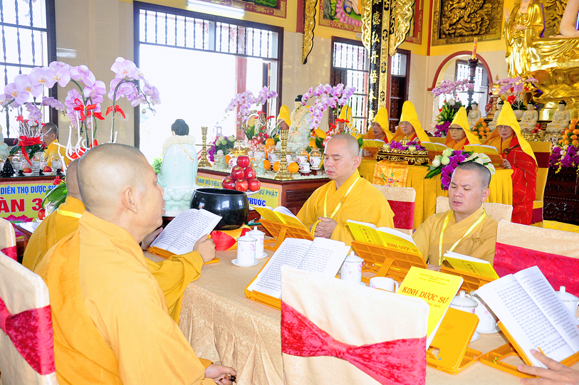 Theo chương trình đã định, Ban nghi lễ tác bạch cung thỉnh chư Tôn đức vào hàng chứng minh, Tọa chủ thất đàn đồng thân lâm đàn tràng phúng tụng kinh Dược Sư, cầu nguyện đất nước thanh bình, chúng sinh khắp nơi đồng được an vui, gió thuận mưa hòa, nhà nhà quy Phật, phát tâm tu thiện.