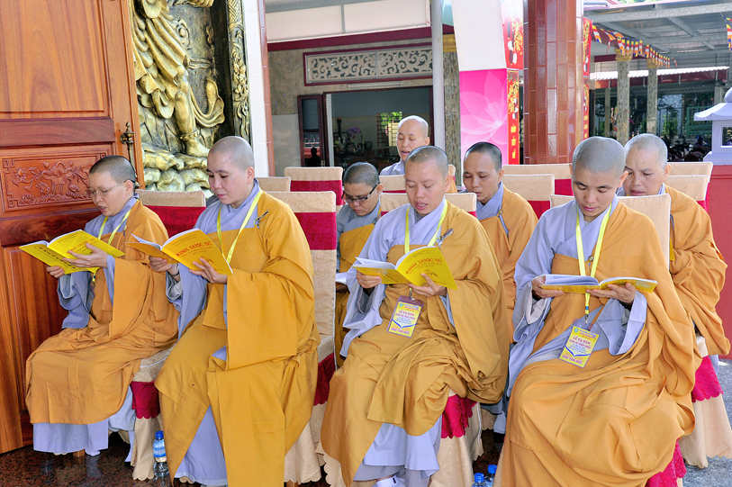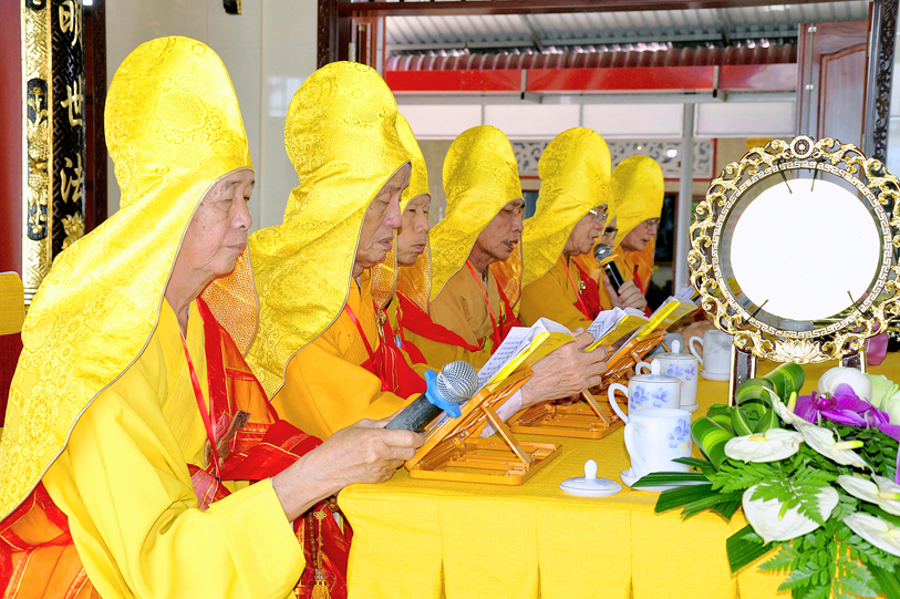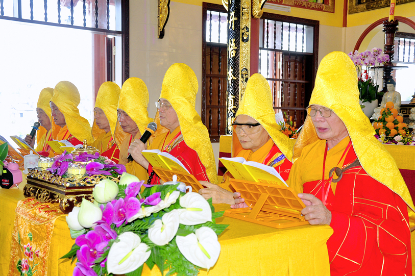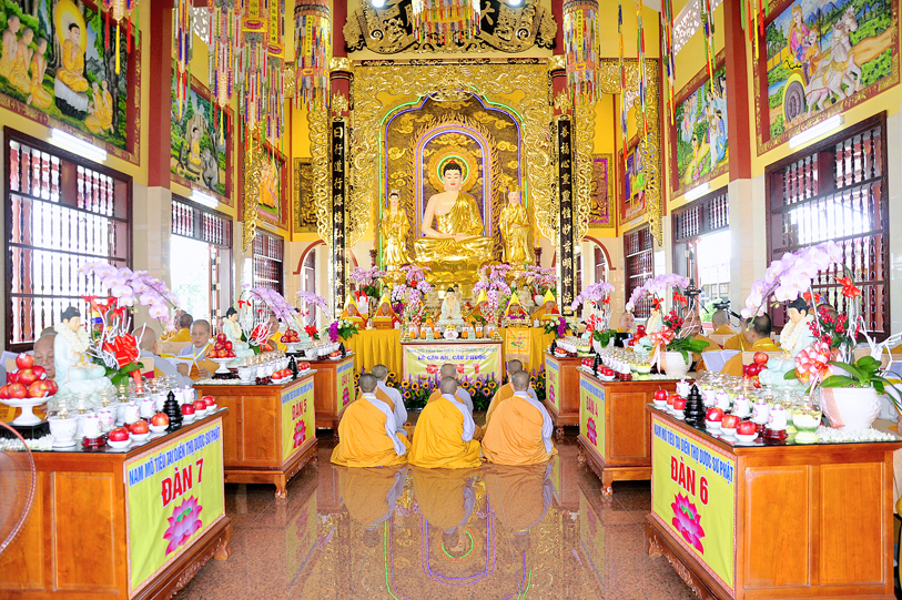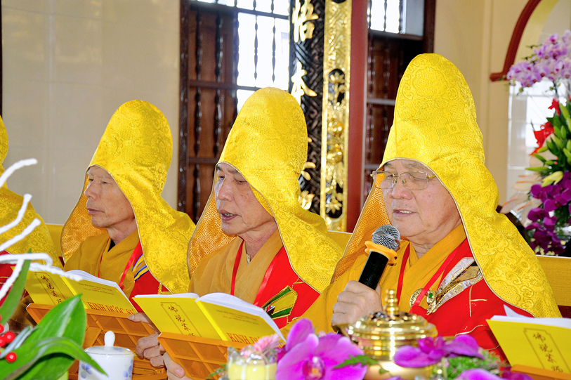 Thành phần chư Tôn đức quang lâm chứng minh đàn tràng: Hòa thượng Thích Thiện Huệ, CMBTS Phật giáo tỉnh Long An, trụ trì chùa Thiên Khánh; HT. Thích Huệ Hồng, CMBTS PG, tỉnh Long An; HT. Thích Minh Thiện, UVHĐTS, Phó trưởng ban Hoằng pháp TW, Trưởng BTSGHPG tỉnh Long An, trụ trì chùa Thiên Châu; HT. Thích Thiện Tài, Phó trưởng ban Trị sự kiêm Trưởng ban Nghi lễ PG tỉnh Long An, Viện chủ chùa Mỹ Phước; HT. Thích Quảng Ý, Trưởng ban Trị sự PG liên huyện Tân Thạnh – Kiến Tường; HT. Thích Thiện Phúc, Trưởng Ban Trị sự PG huyện Đức Hòa, trụ trì Tổ đình Linh Nguyên; HT. Thích Chơn Đạo, Giáo thọ Trường Trung cấp Phật học Long An, cùng chư Tôn đức Tọa chủ Lục đàn đồng câu hội.