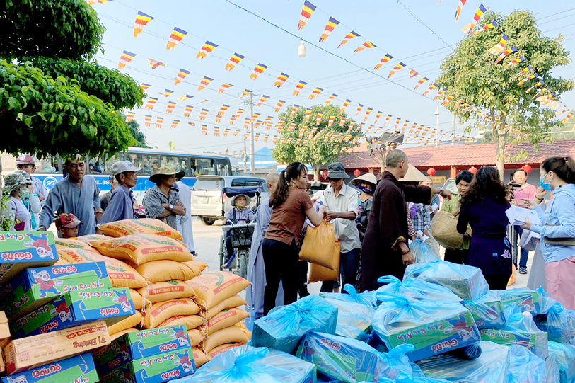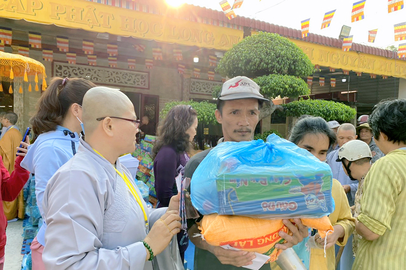 Nhân lễ tạ đàn Dược sư chư tôn đức đã phóng sanh và trao tặng quà đến Hội người khiếm thị và bà con neo đơn tại địa phương, các vùng lân cận.